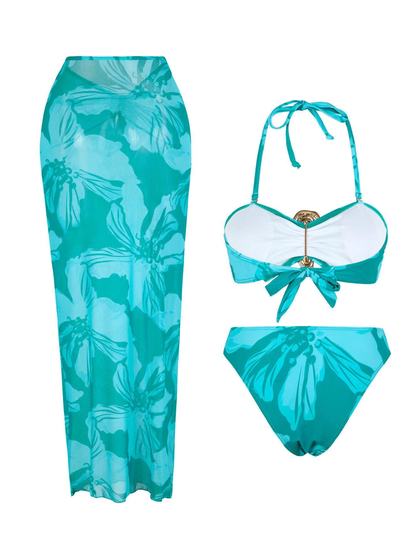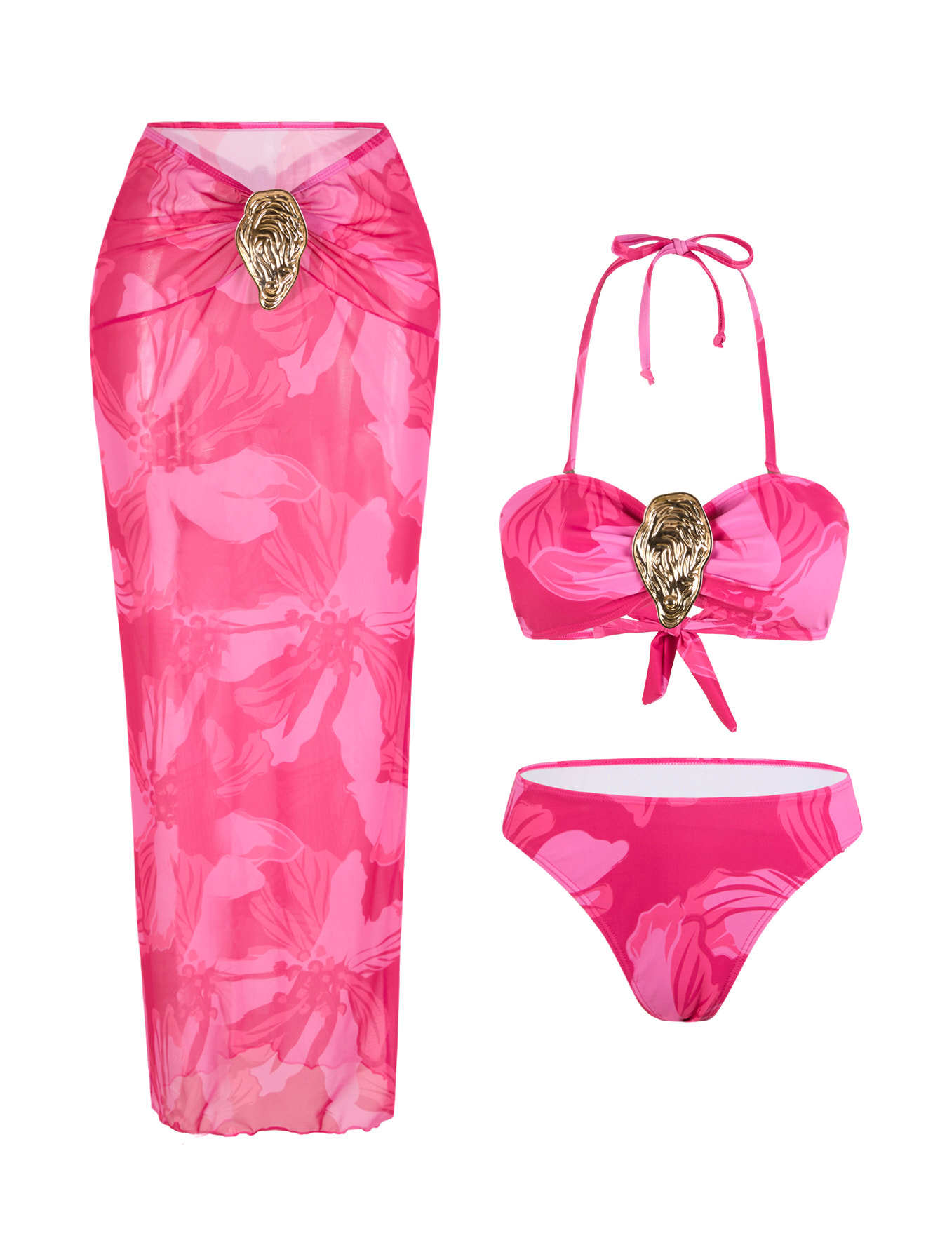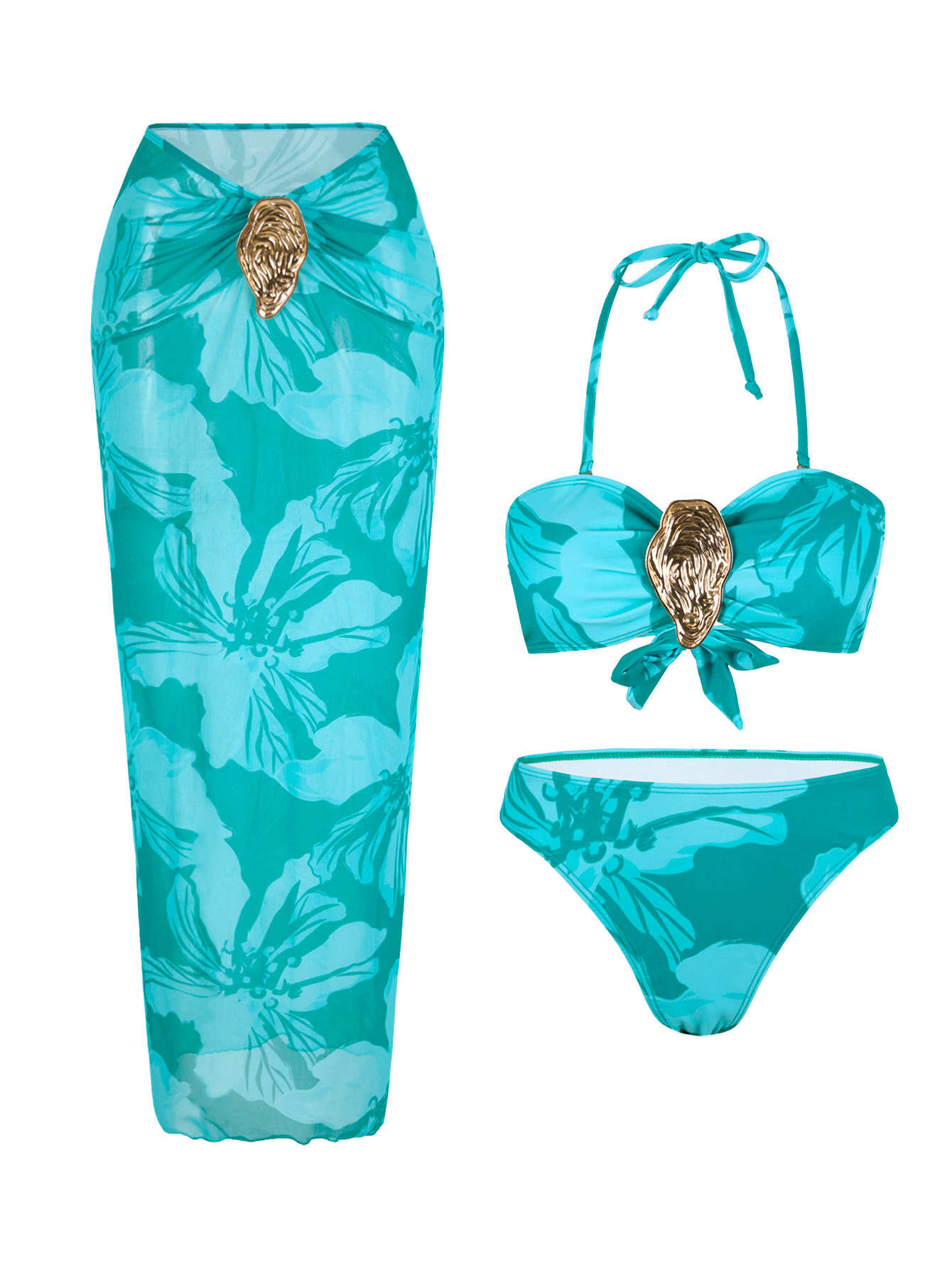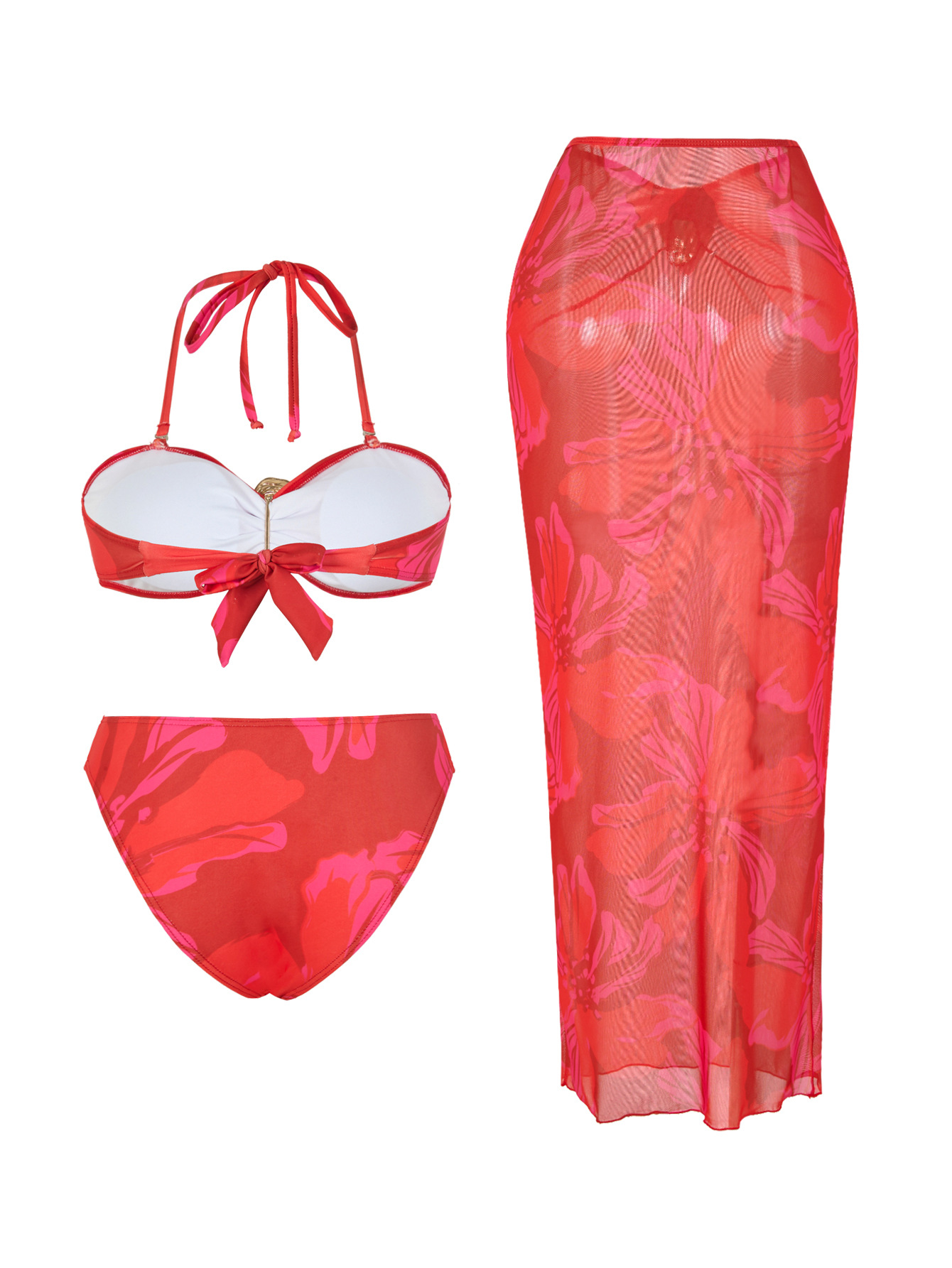 2025 유럽과 미국의 새로운 타이 염색 프린트 스플릿 비키니 수영복 비치 스커트 3 피스 세트 크로스 보더 Lazada 수영복스토어 가기