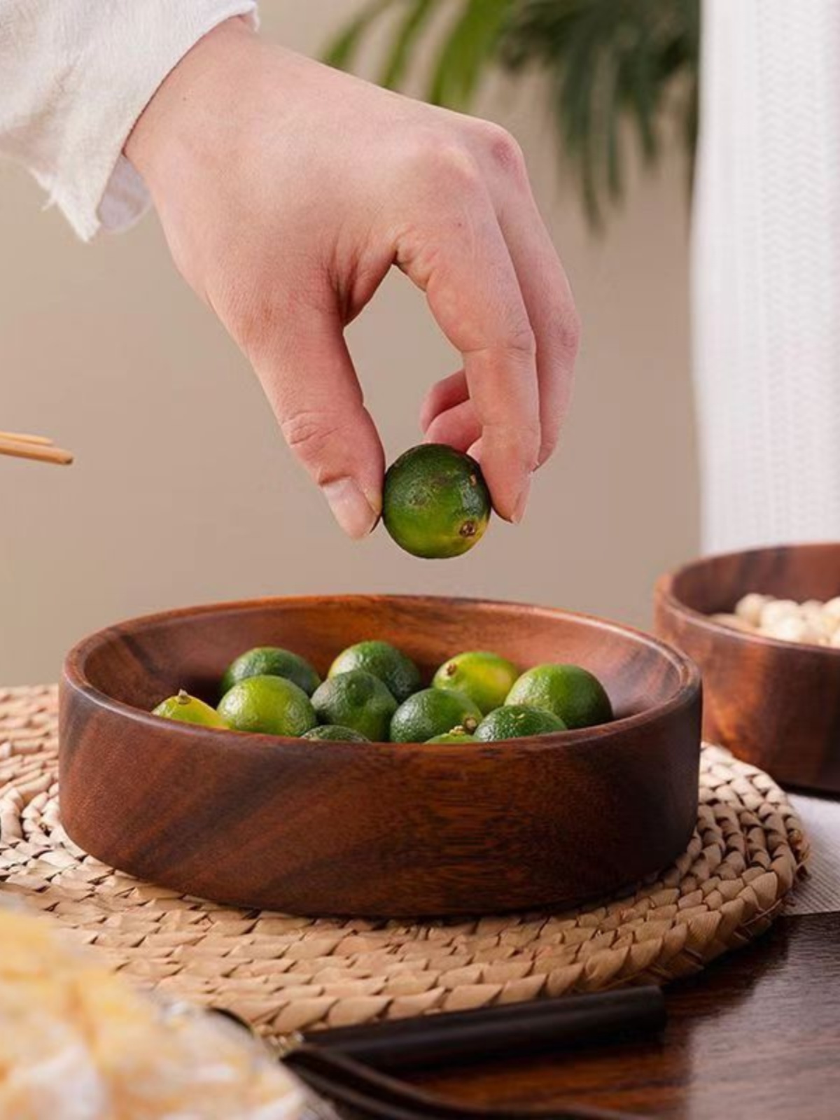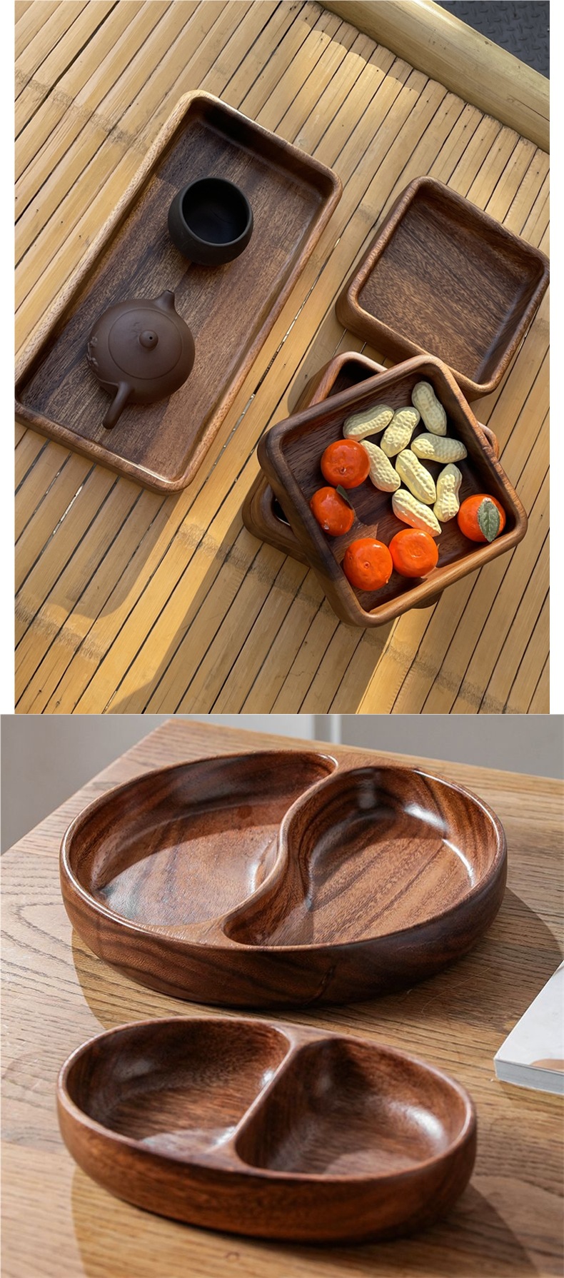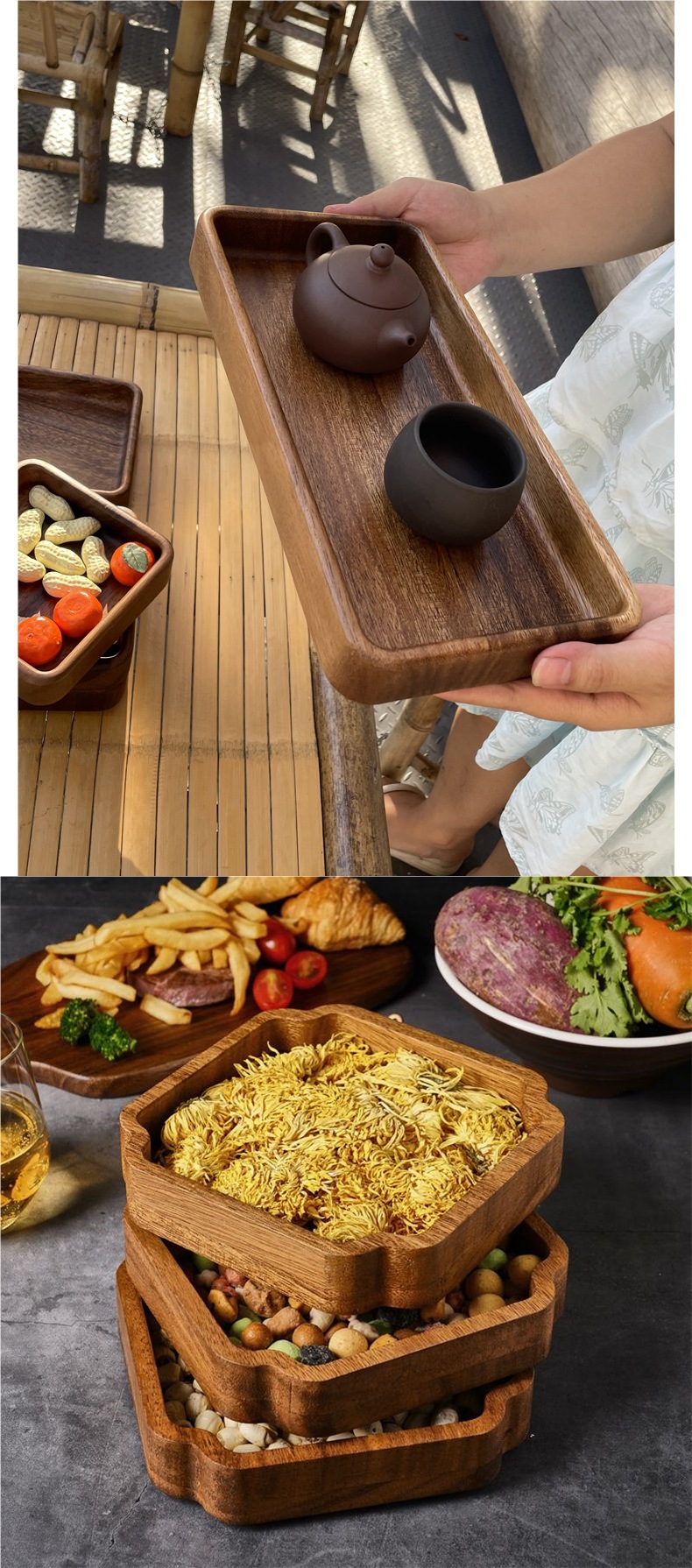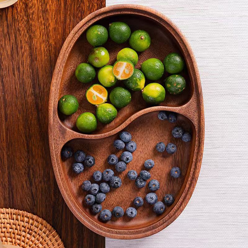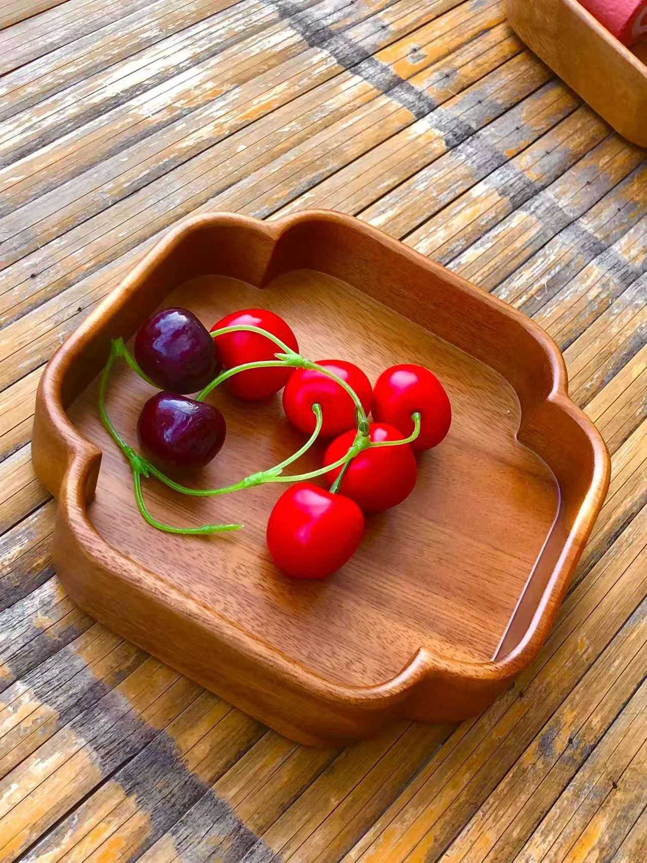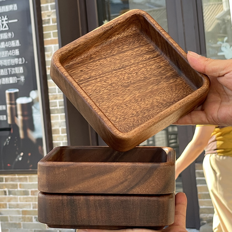 말린 과일 상자 사각형 견과류 상자 호두 나무 스낵 과일 접시 가정용 쌓을 수있는 일본식 원형 보관함 단단한 나무