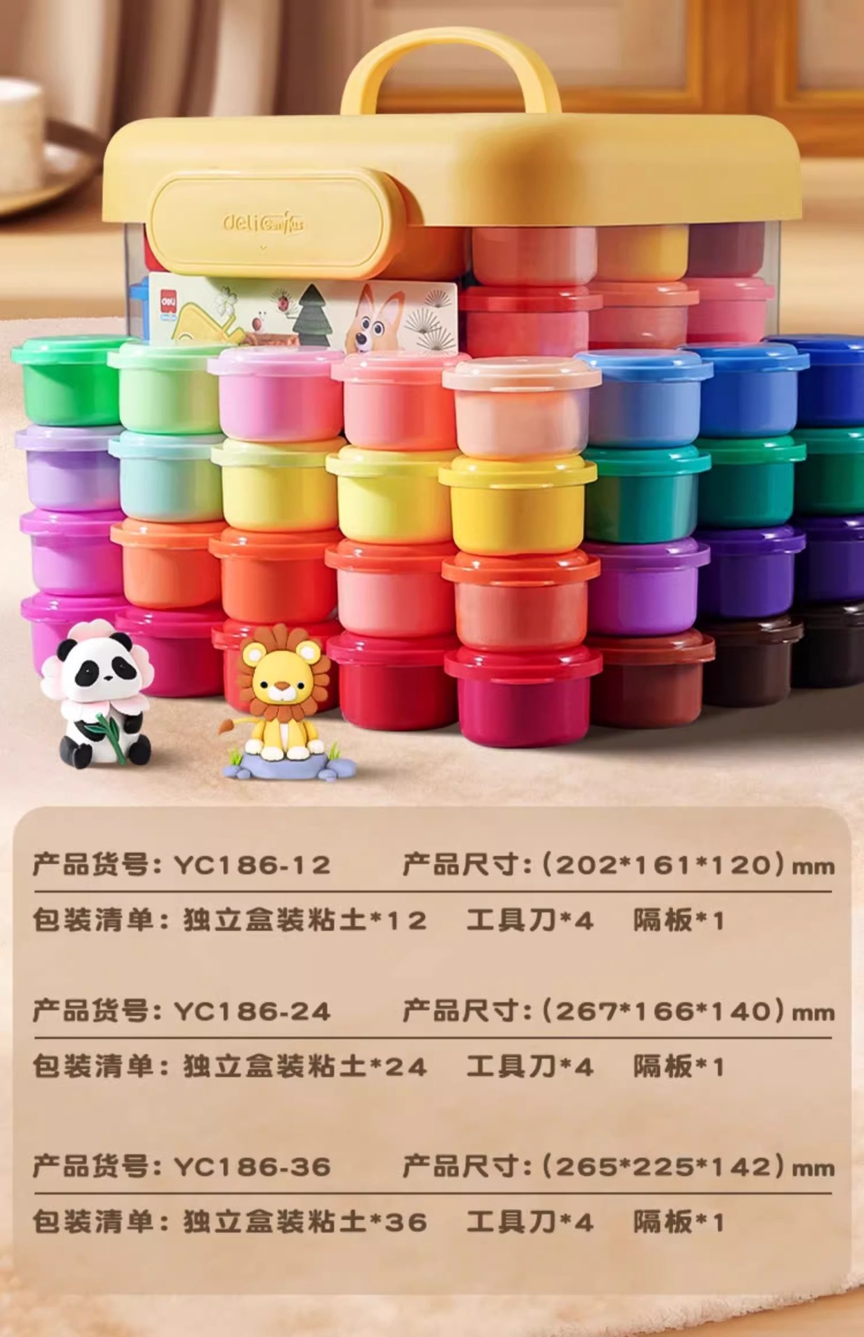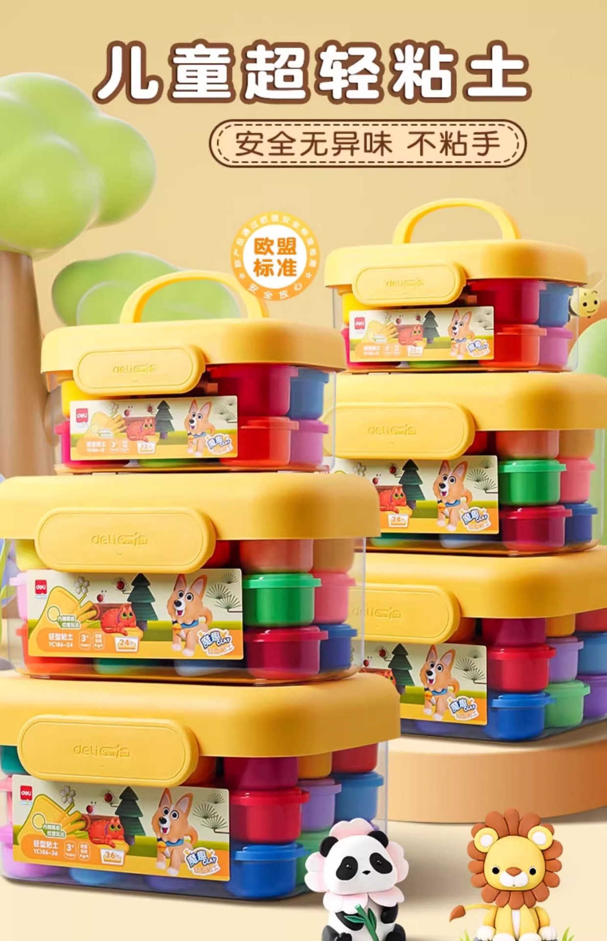 델리 어린이 초경량 점토 무독성 유치원 점토 컬러 점토 수제 장난감 식품 등급 24 색 점토