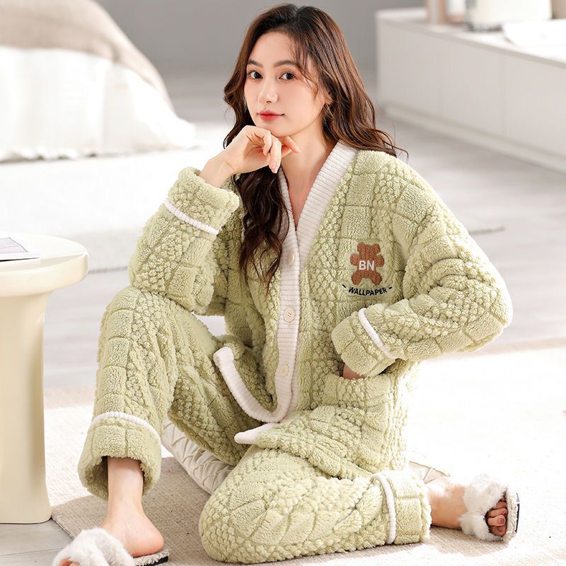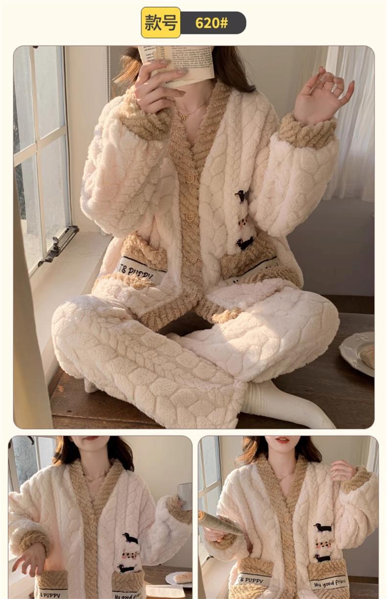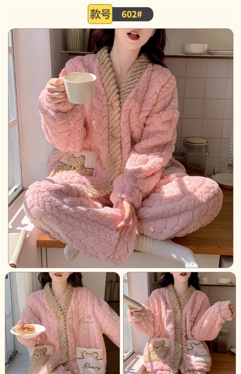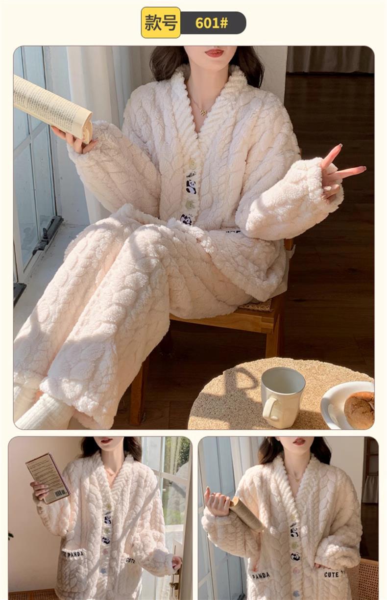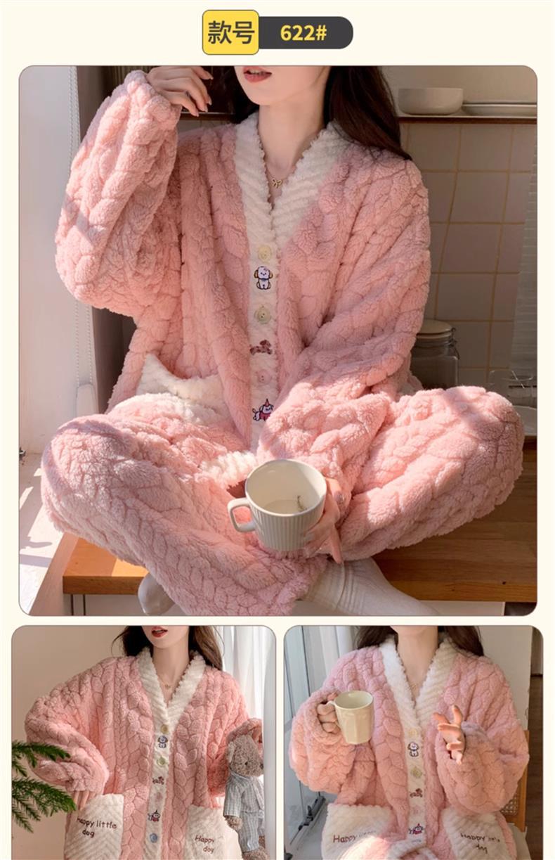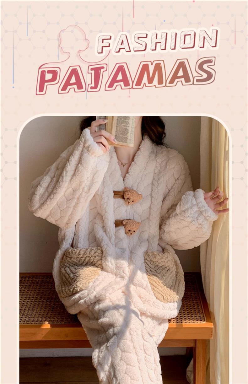 2025 새로운 산호 벨벳 잠옷 여성 가을, 겨울 두꺼운 벨벳 따뜻한 플란넬 우유 같은 겨울 가정 의류스토어 가기