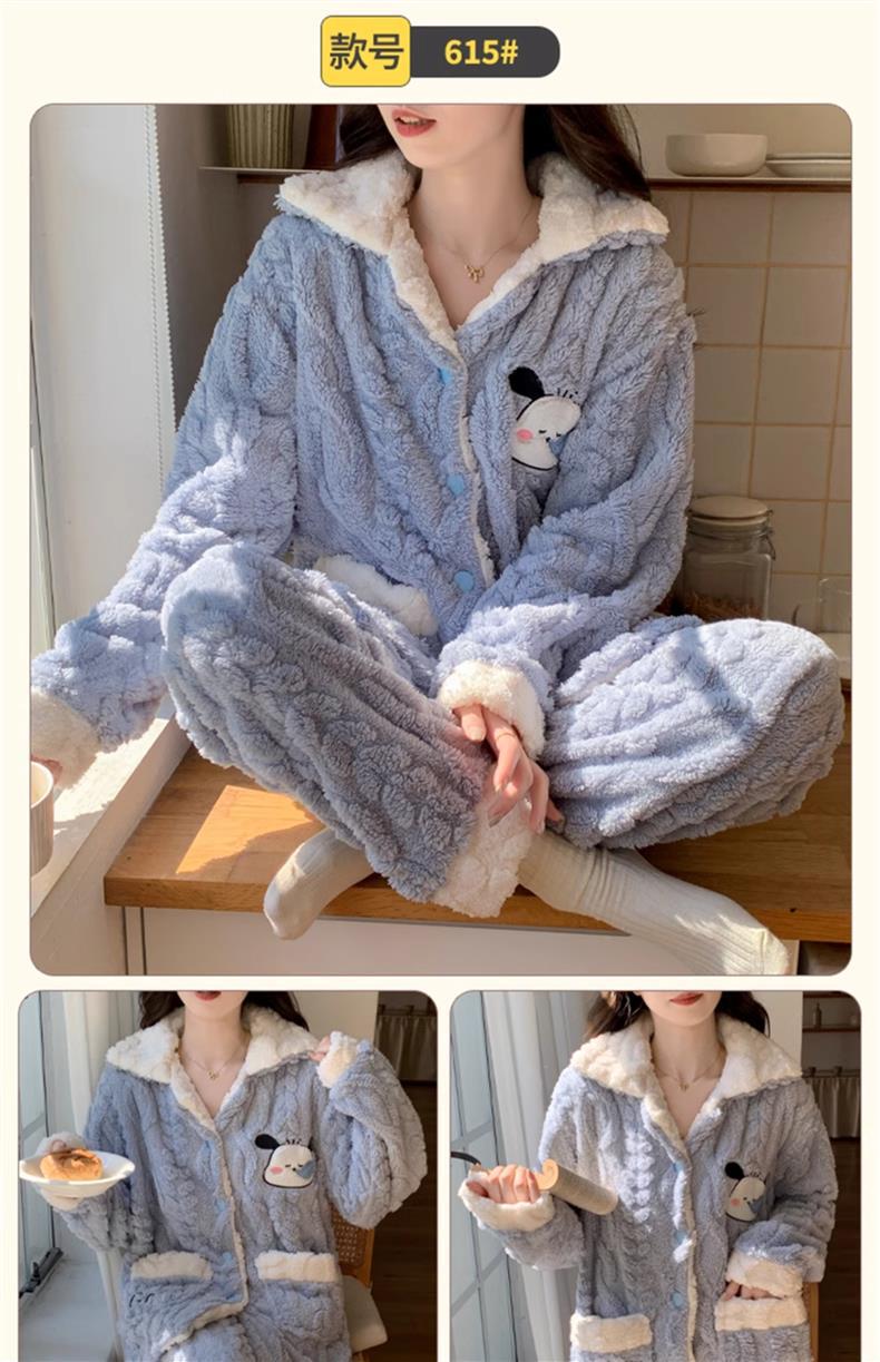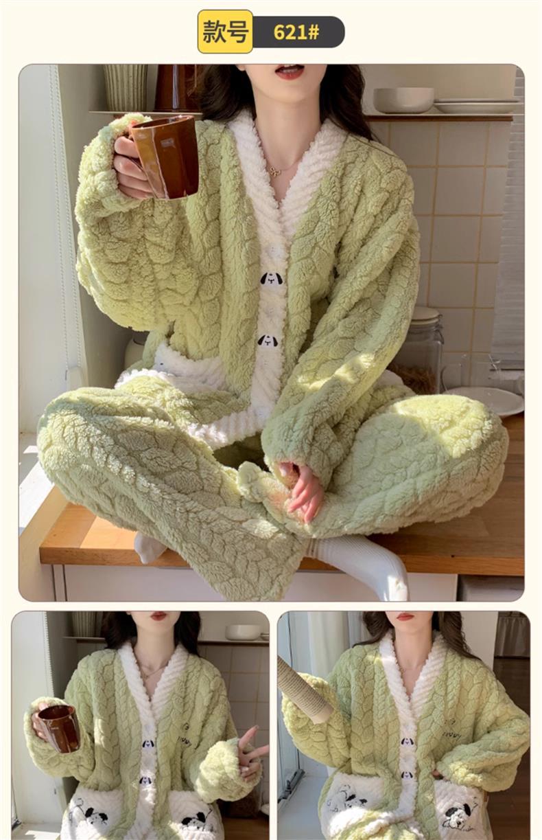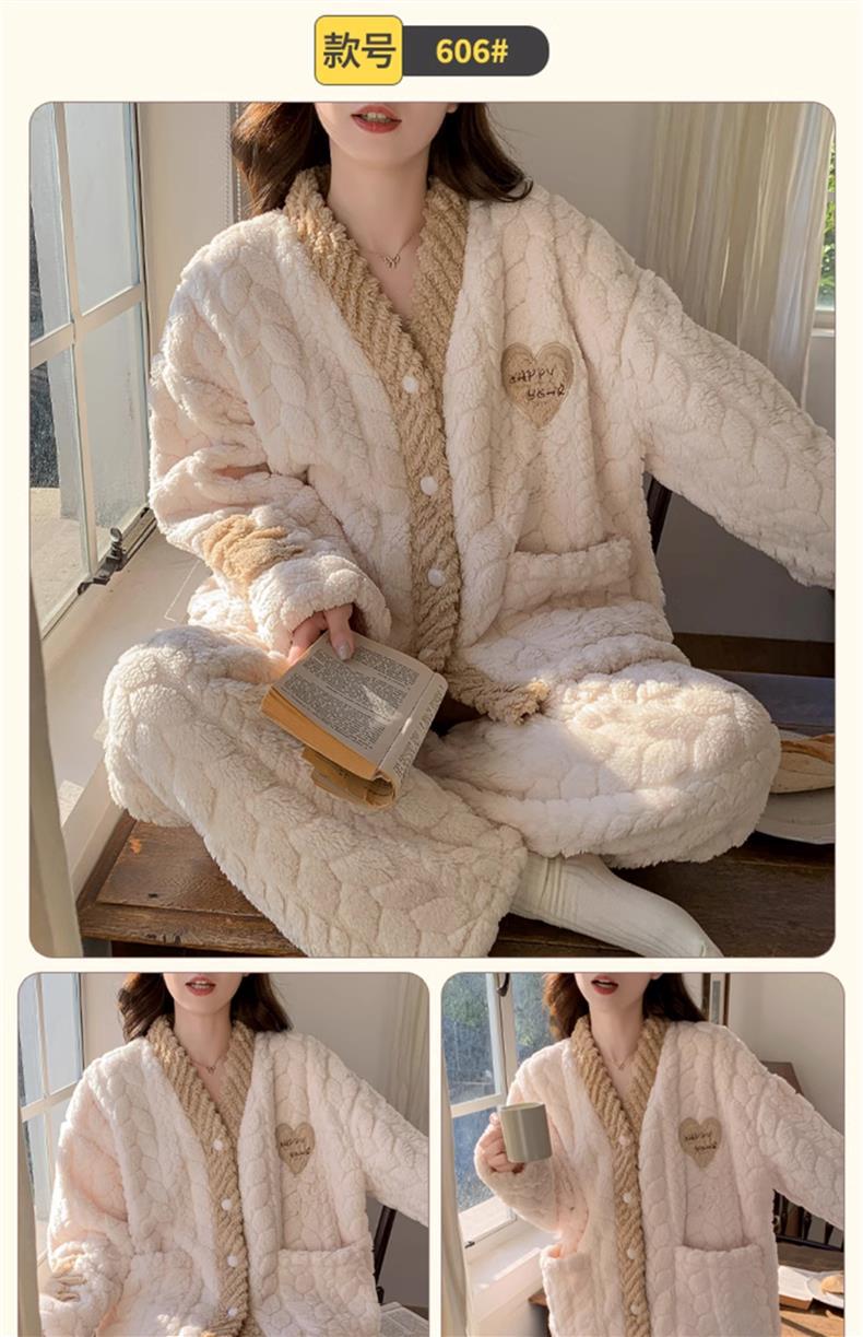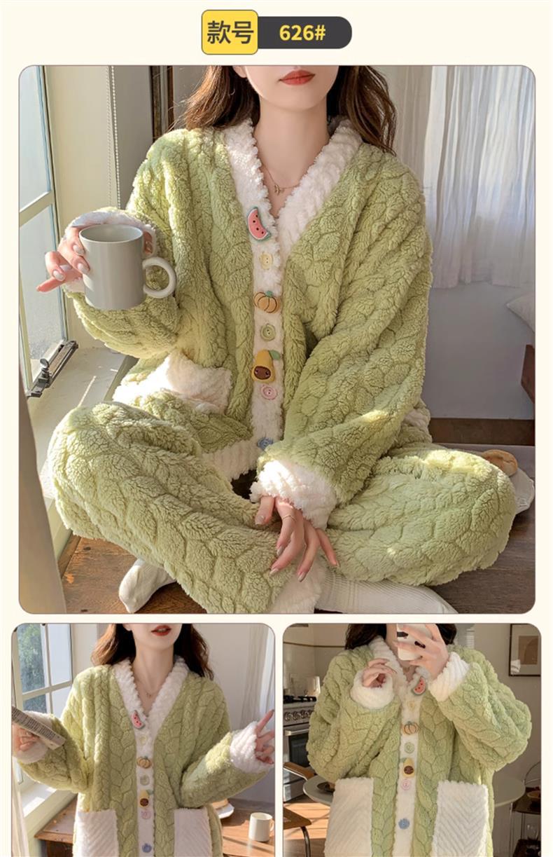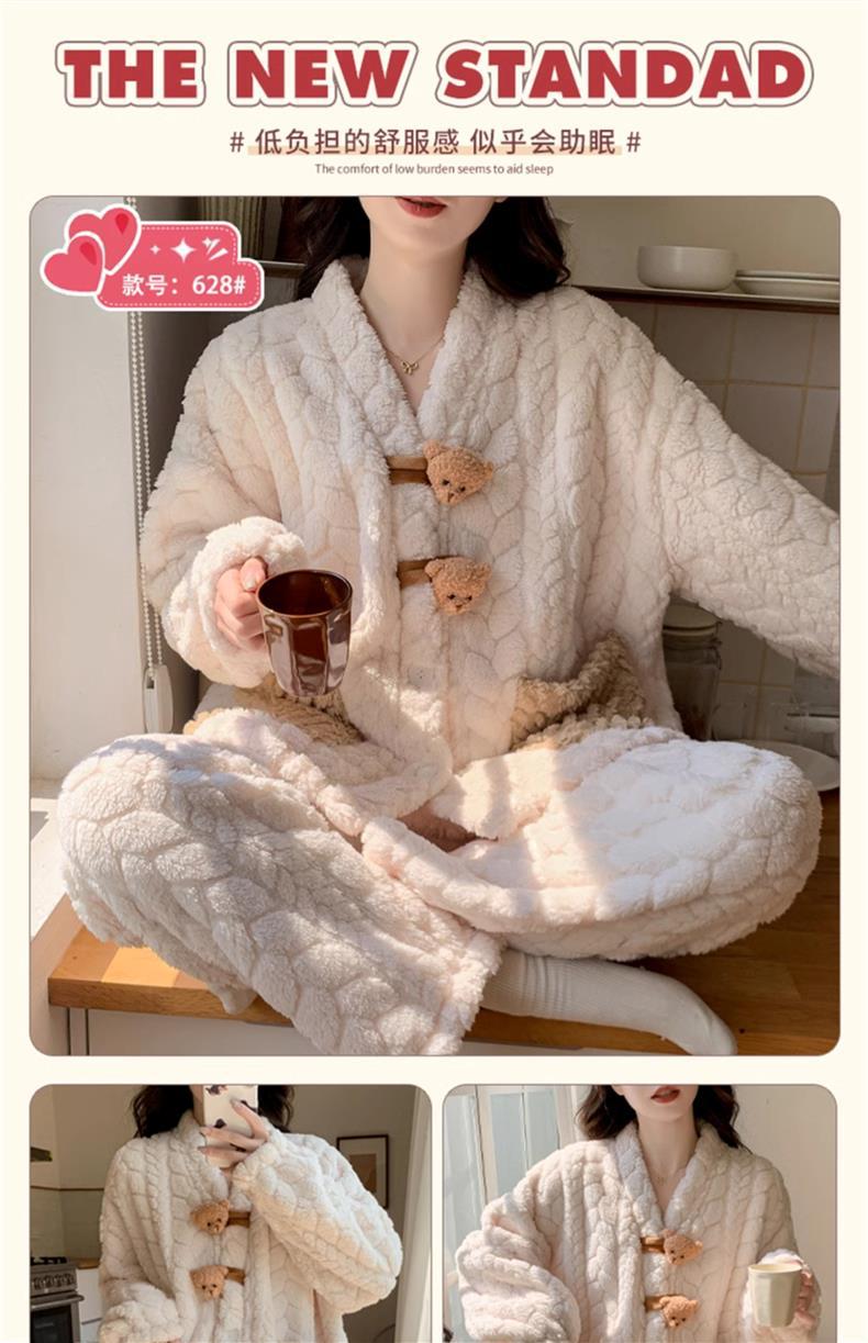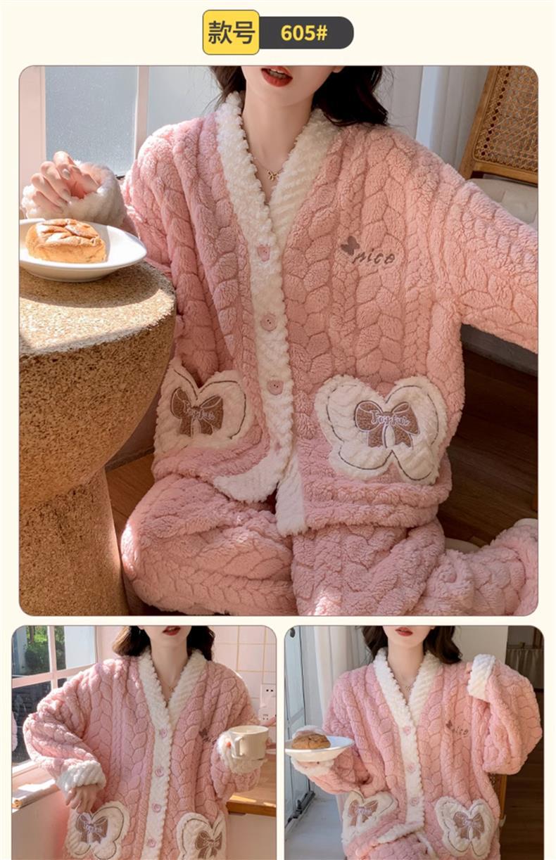 2025 새로운 산호 벨벳 잠옷 여성 가을, 겨울 두꺼운 벨벳 따뜻한 플란넬 우유 같은 겨울 가정 의류스토어 가기