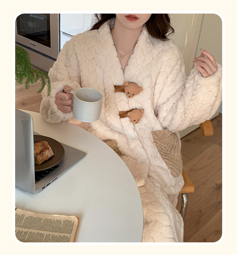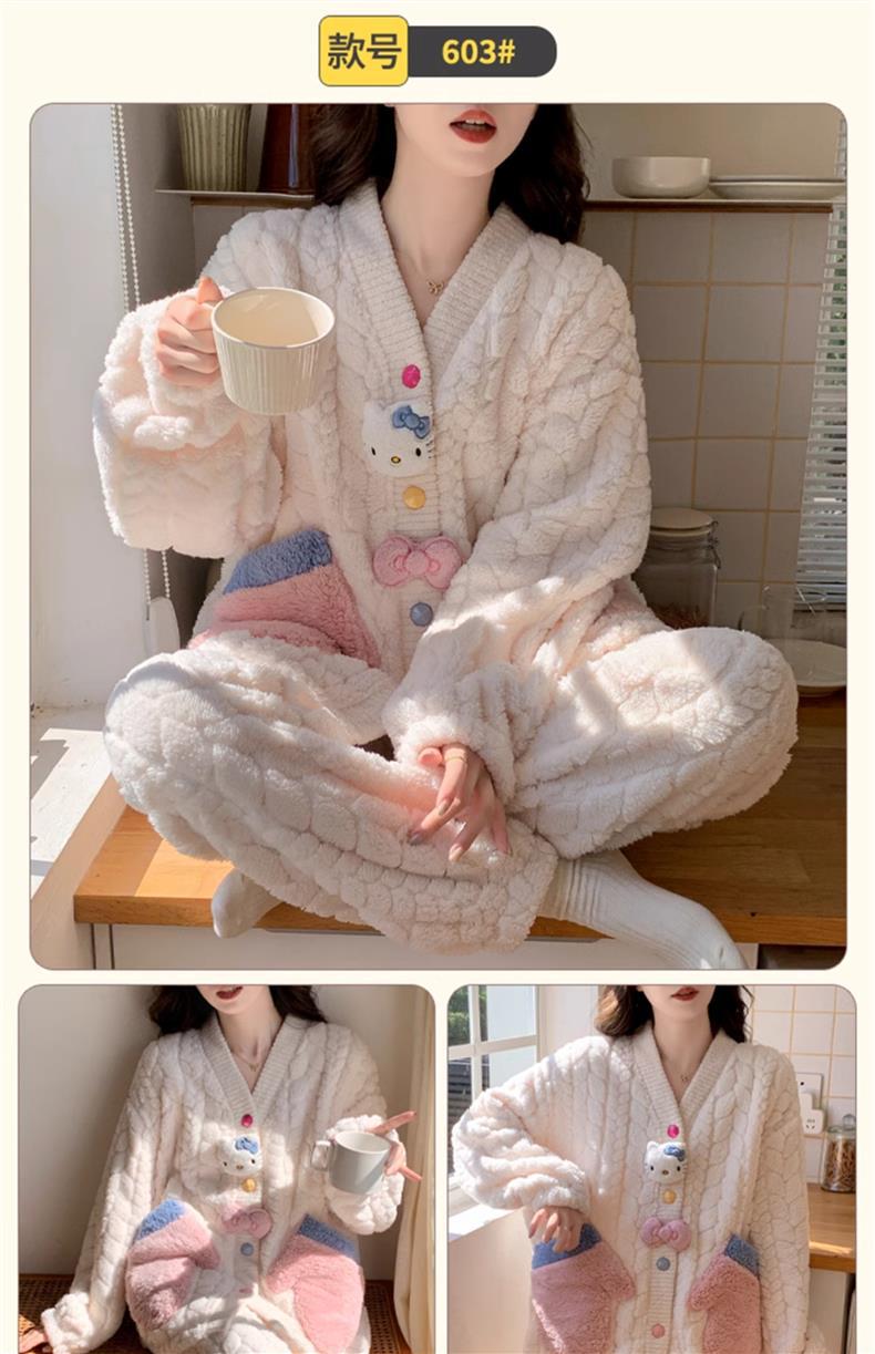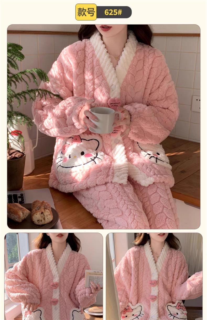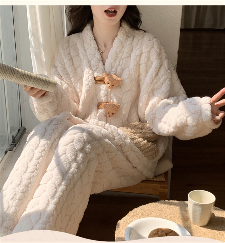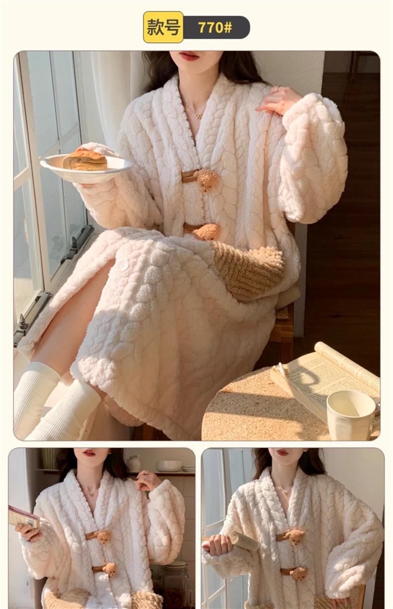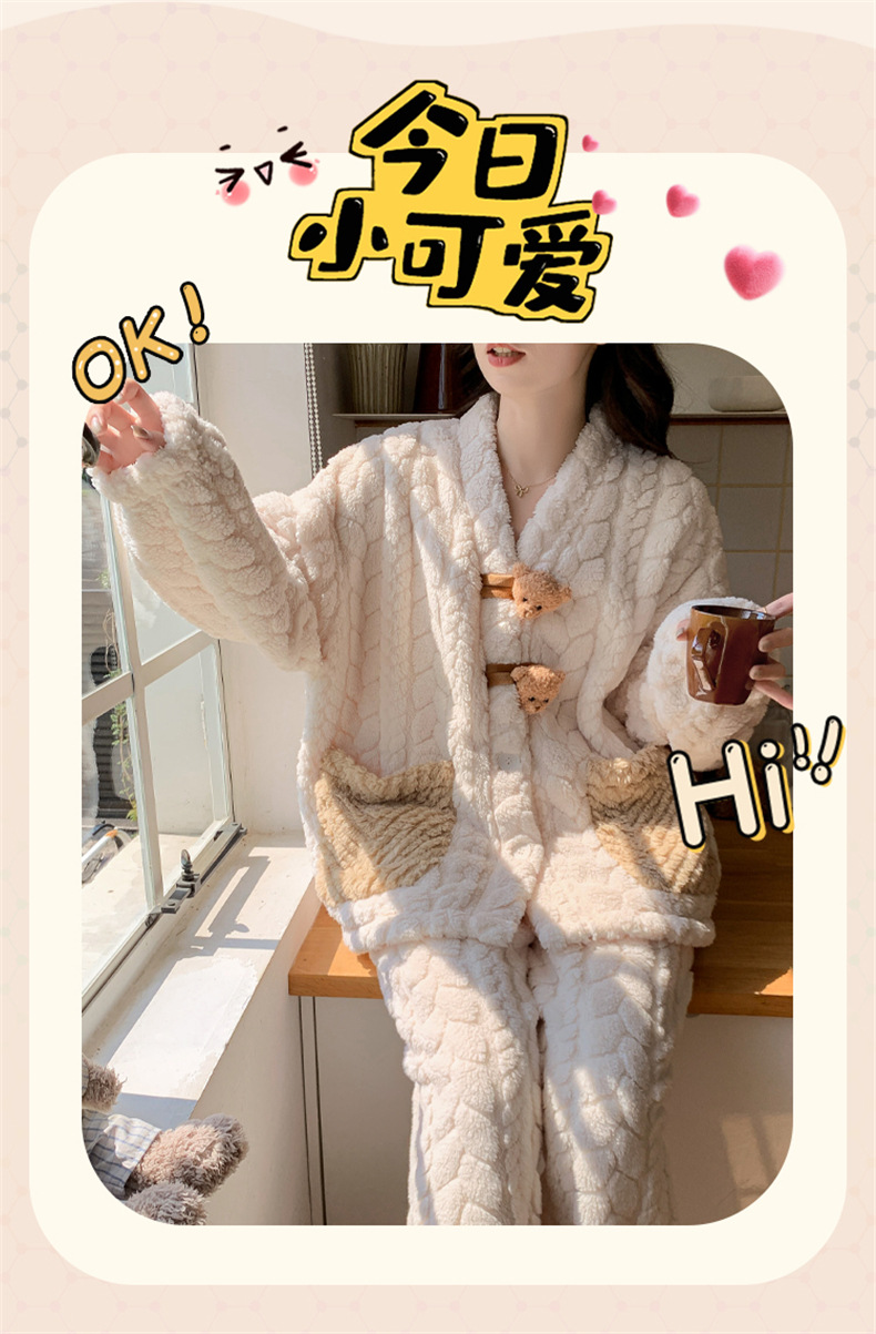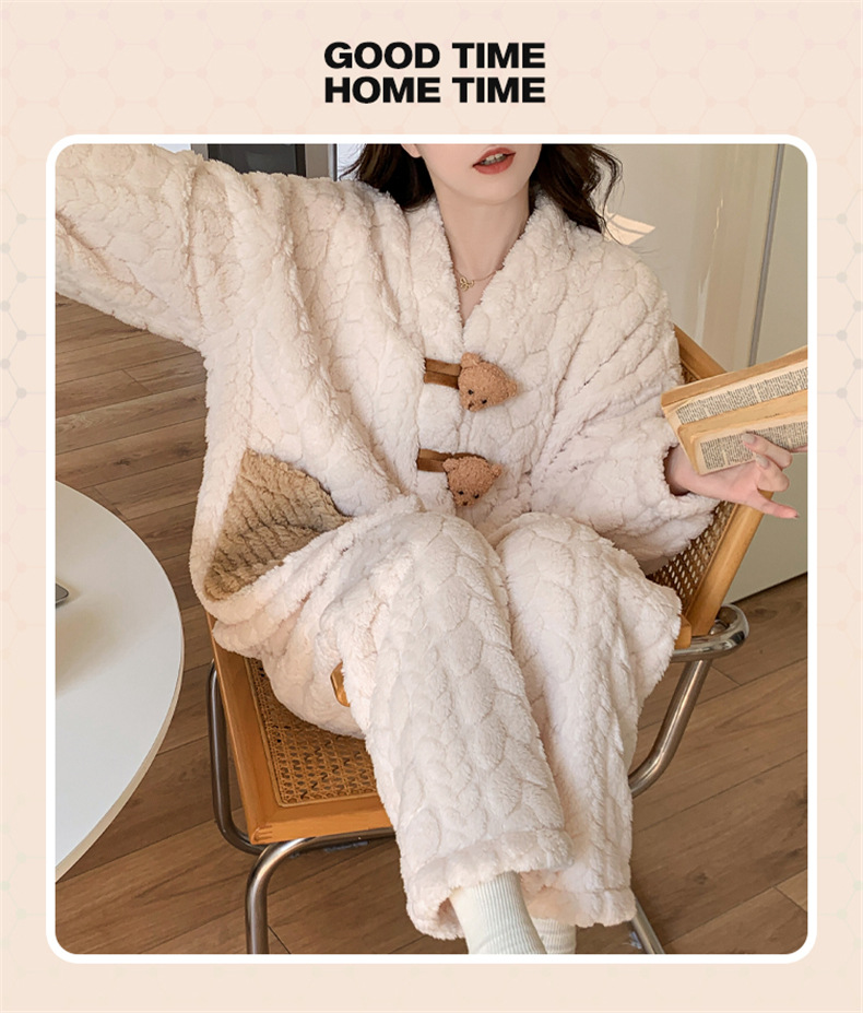 2025 새로운 산호 벨벳 잠옷 여성 가을, 겨울 두꺼운 벨벳 따뜻한 플란넬 우유 같은 겨울 가정 의류스토어 가기