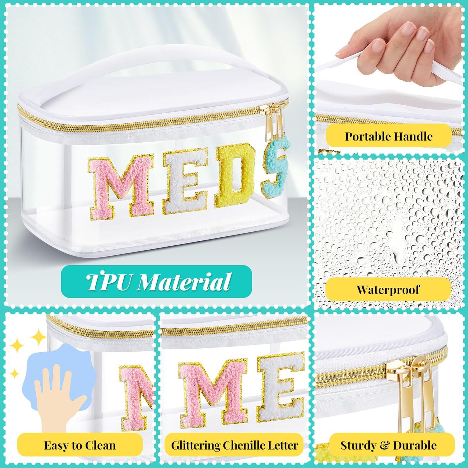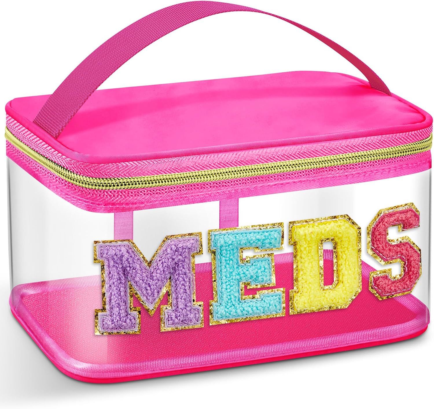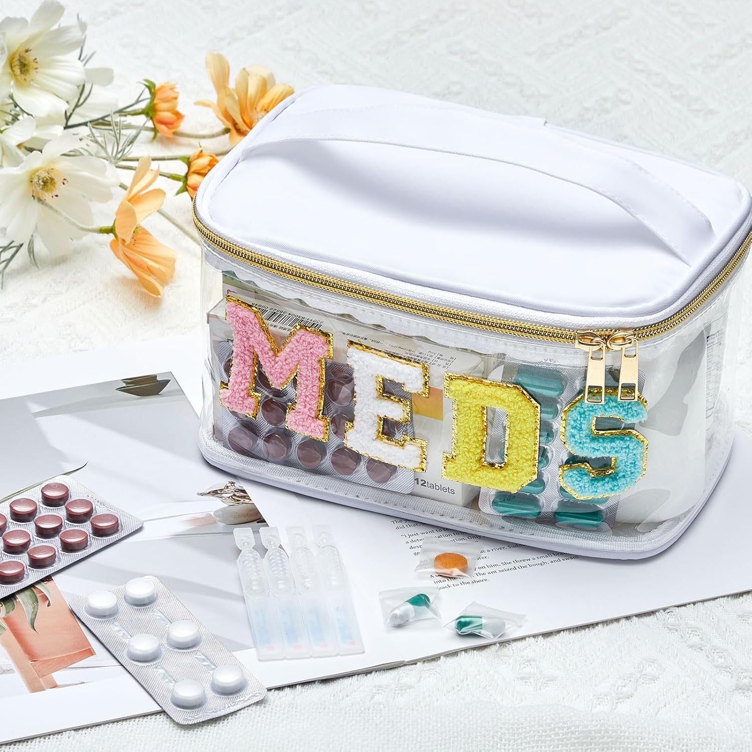 아마존 MEDS 약통 자수 문자 화장품 가방 투명 PVC 수납 가방 여행 세면도구 가방 핸드백