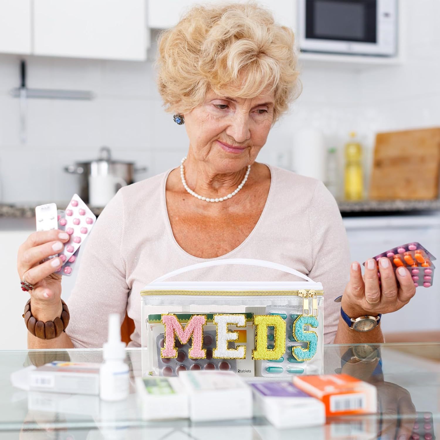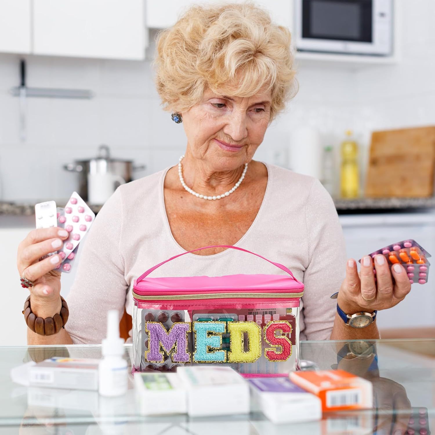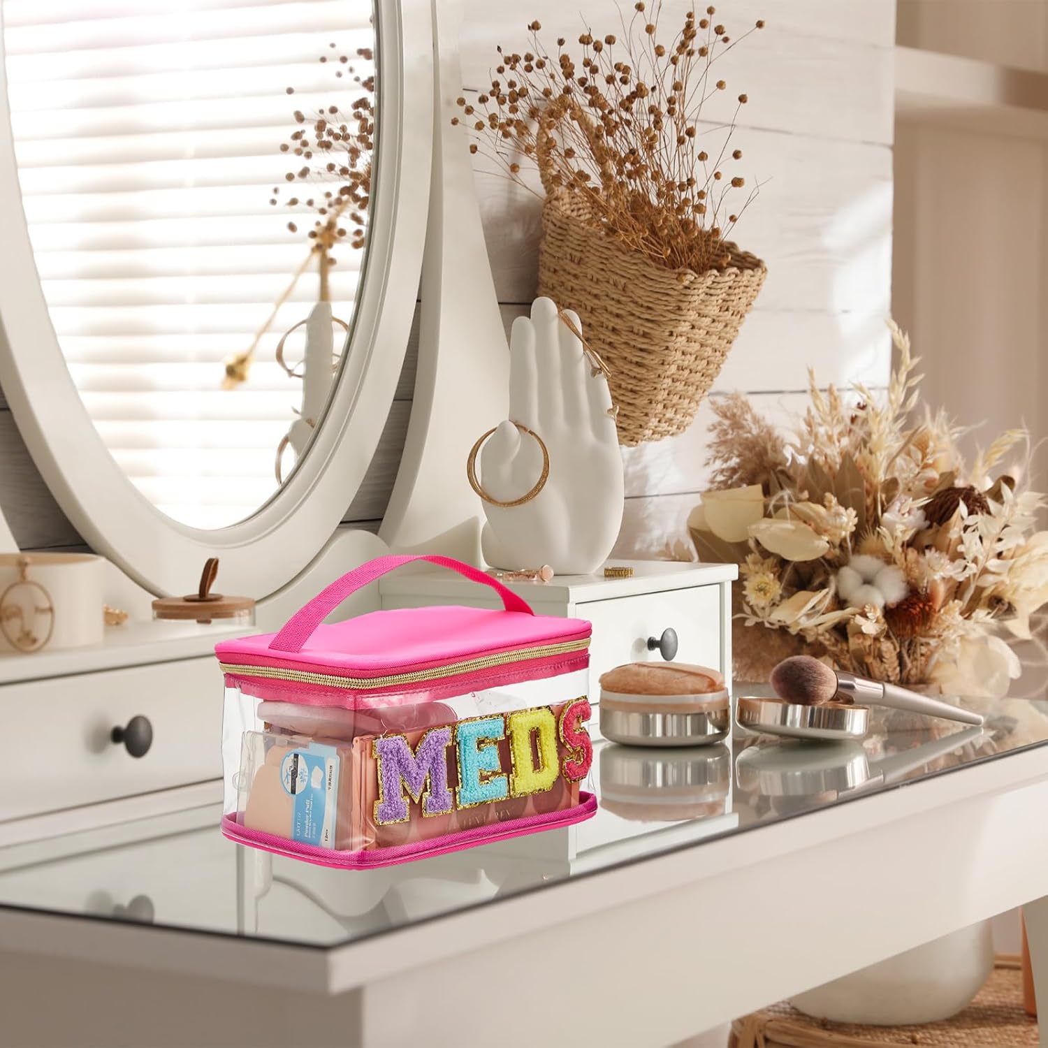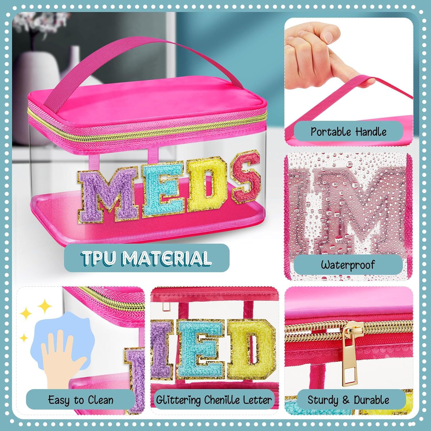 아마존 MEDS 약통 자수 문자 화장품 가방 투명 PVC 수납 가방 여행 세면도구 가방 핸드백