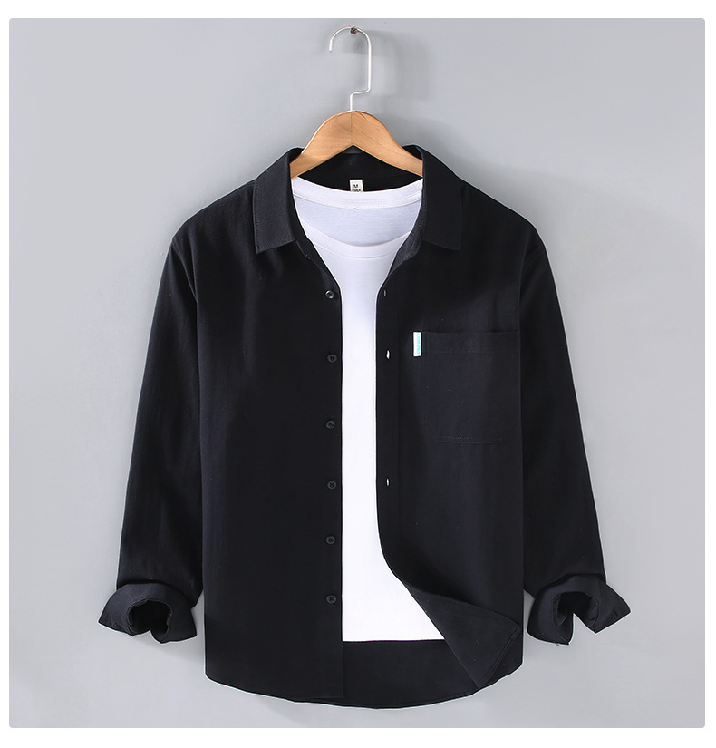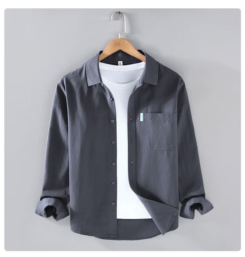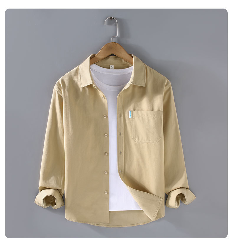 2355 순수 코튼 긴팔 솔리드 컬러 셔츠 남성용 심플 작업복 트렌디하고 다재다능한 루즈한 품질 셔츠 재킷 남성용스토어 가기