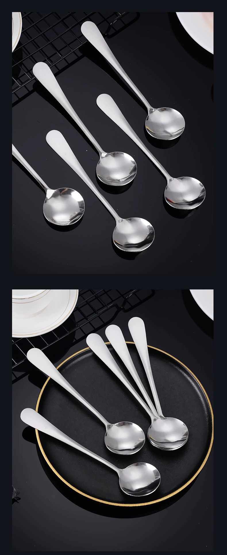 스테인레스 스틸 라운드 스푼 가정용 스푼 사무실 믹싱 스푼 골드 실버 인터넷 연예인 스푼 디저트 스푼 선물 스푼스토어 가기