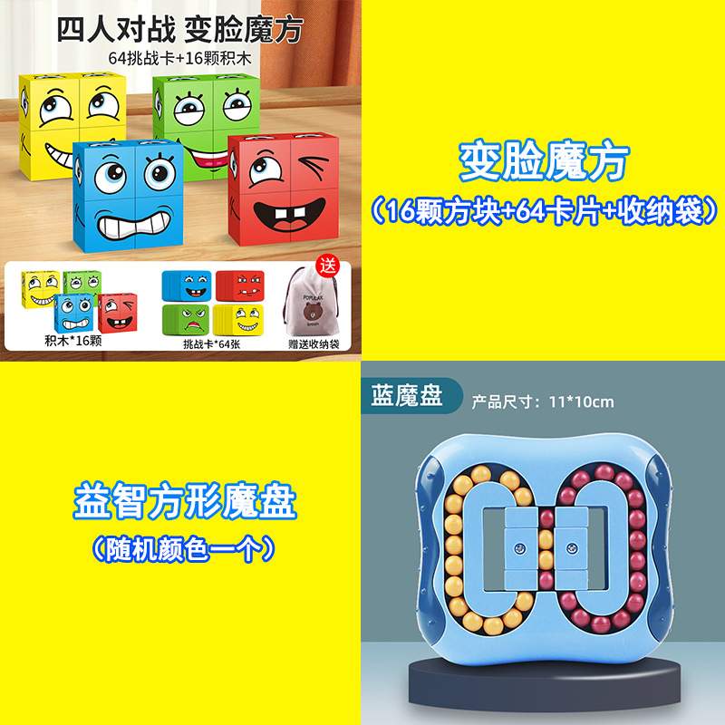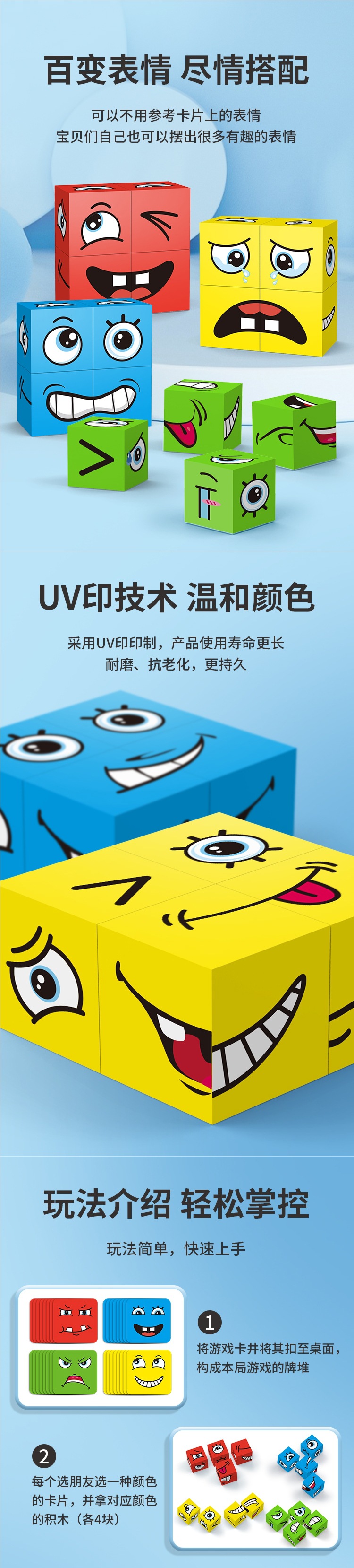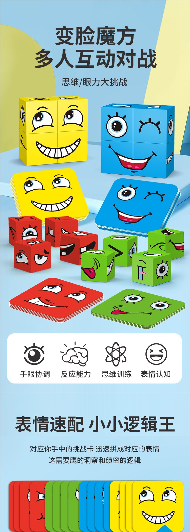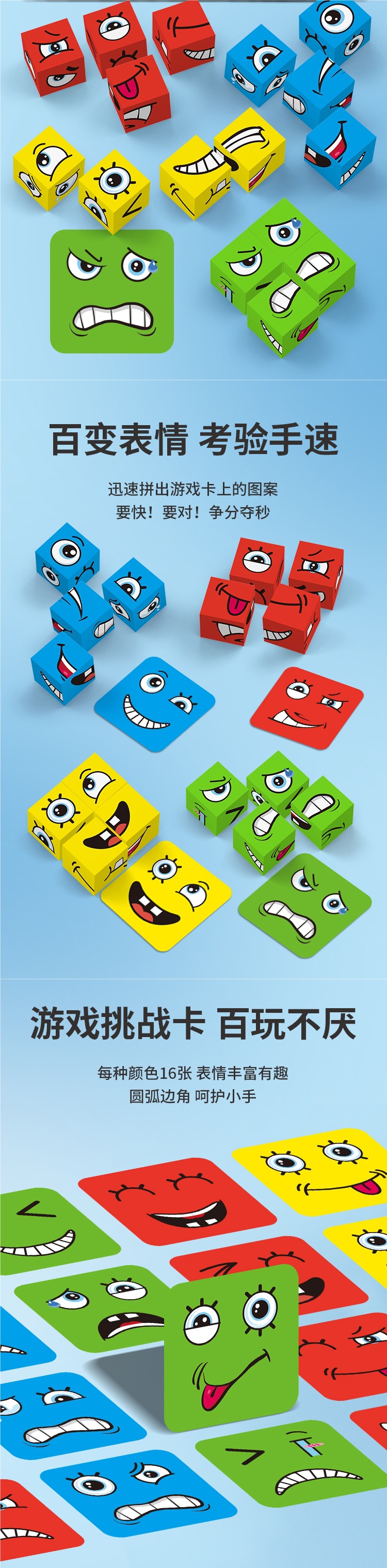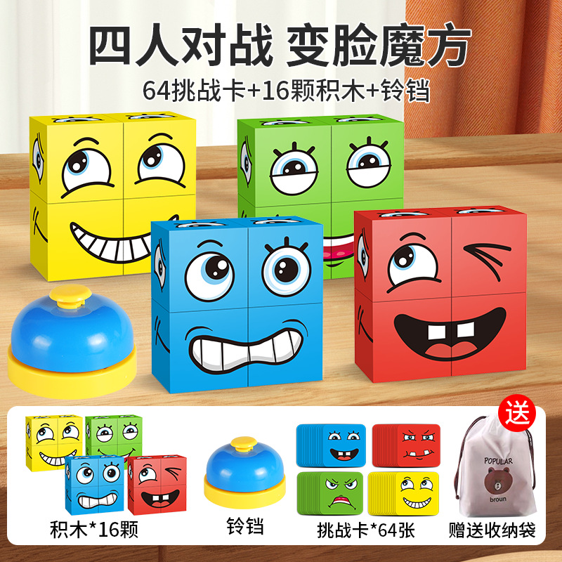 얼굴 변화 루빅스 큐브 빌딩 블록 어린이 공간적 사고 조기 교육 보드 게임 부모-자식 대화 형 게임 웃는 얼굴 남성과 여성 장난감스토어 가기