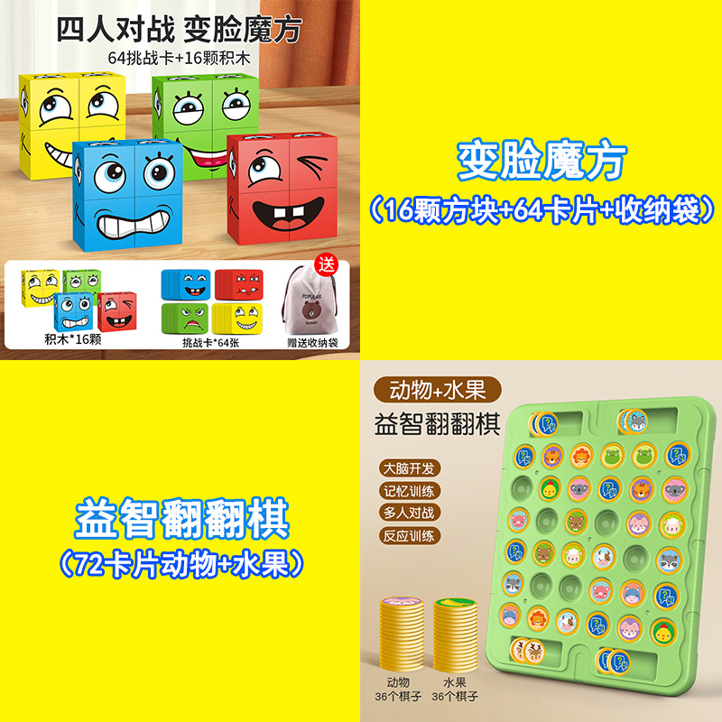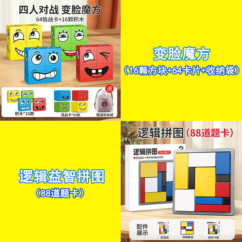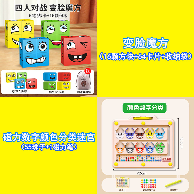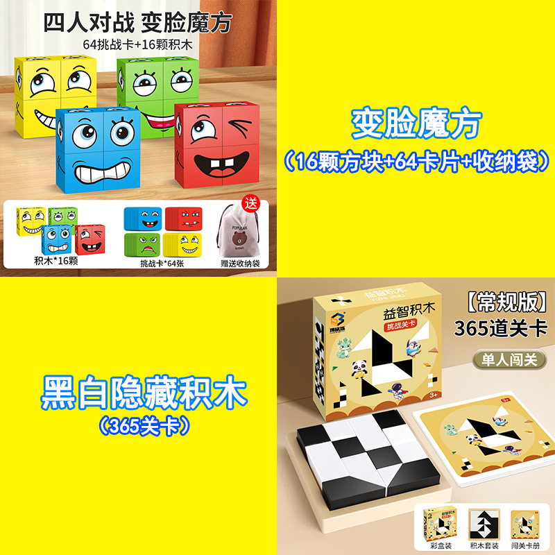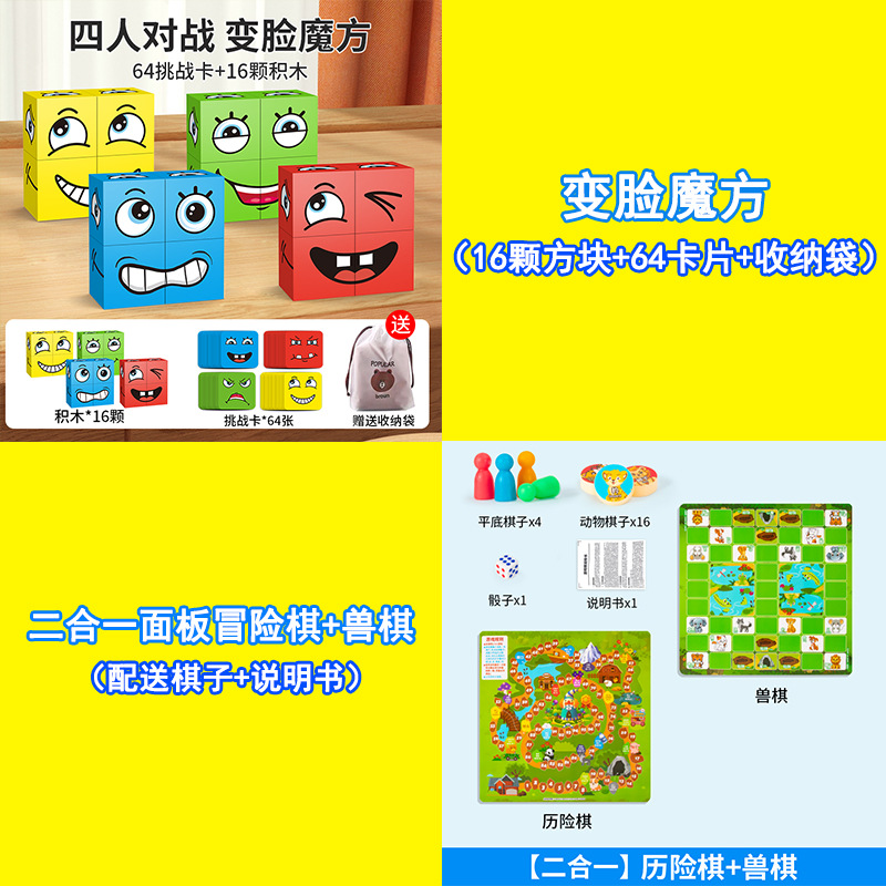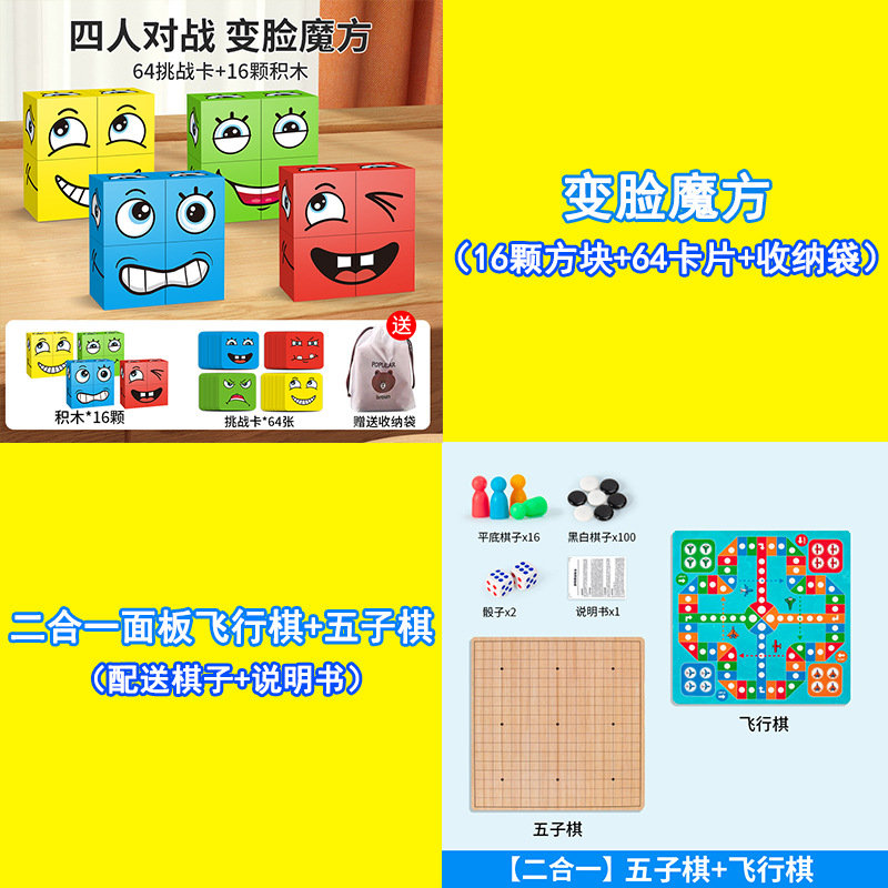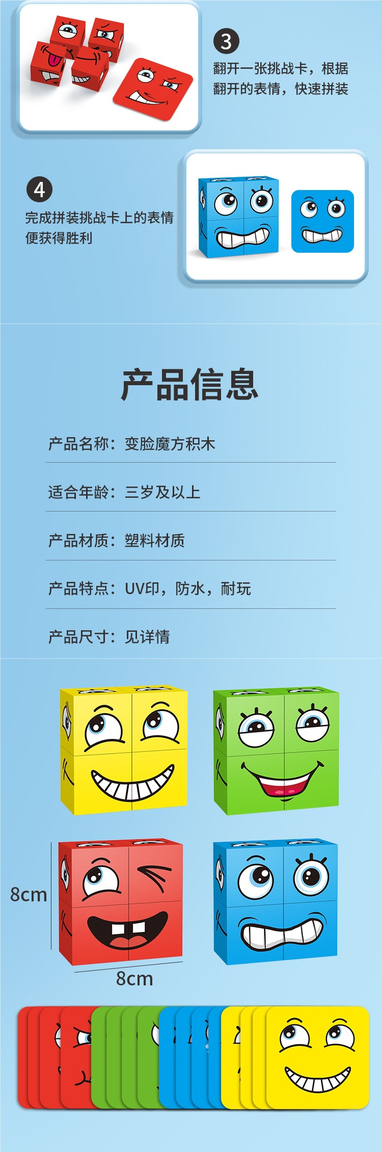 얼굴 변화 루빅스 큐브 빌딩 블록 어린이 공간적 사고 조기 교육 보드 게임 부모-자식 대화 형 게임 웃는 얼굴 남성과 여성 장난감스토어 가기