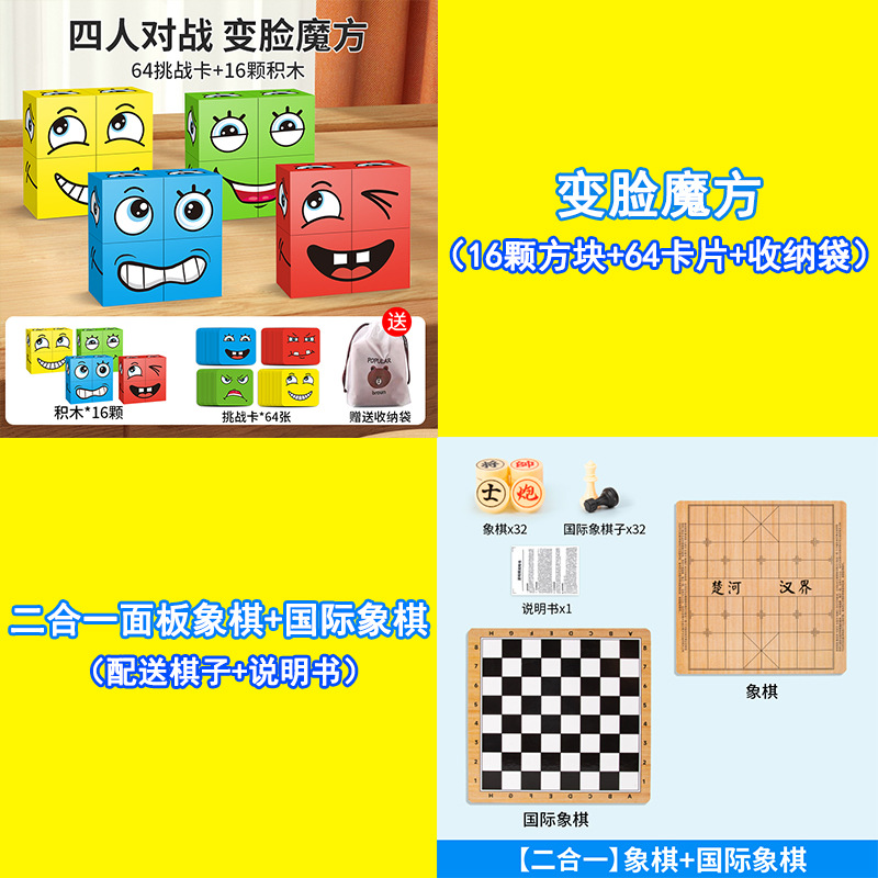 • 얼굴이 바뀌는 루빅스 큐브 + 양면 체스 + 체스 [체스 말 배송 + 사용 설명서]