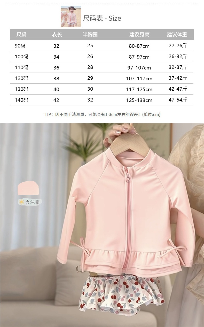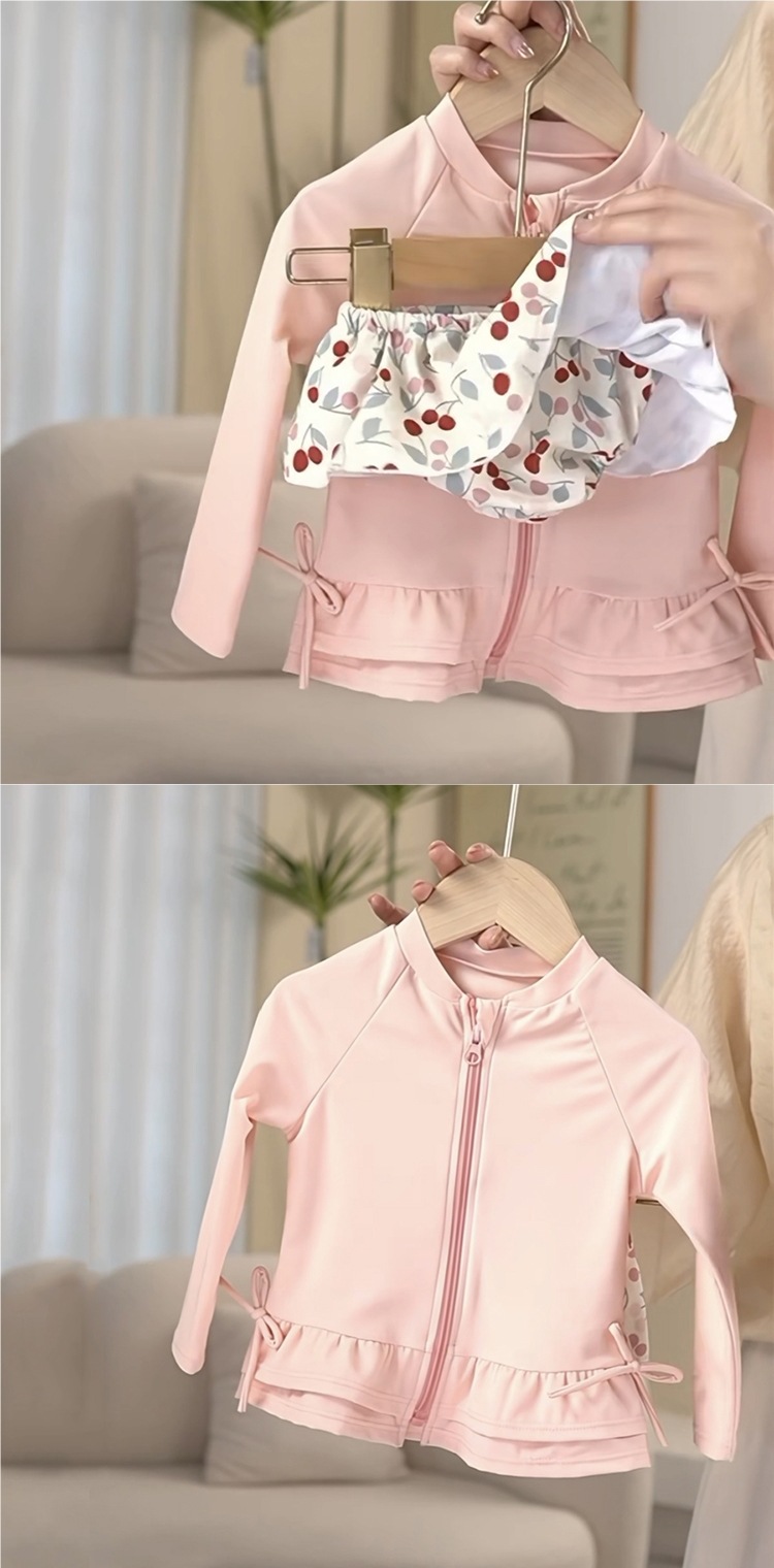 여아 수영복, 여아 속건성 스플릿 수영복 세트, 유아용 수영복, 긴팔 수영복, 인터넷 연예인 수영복 스커트, 달콤하고 트렌디함