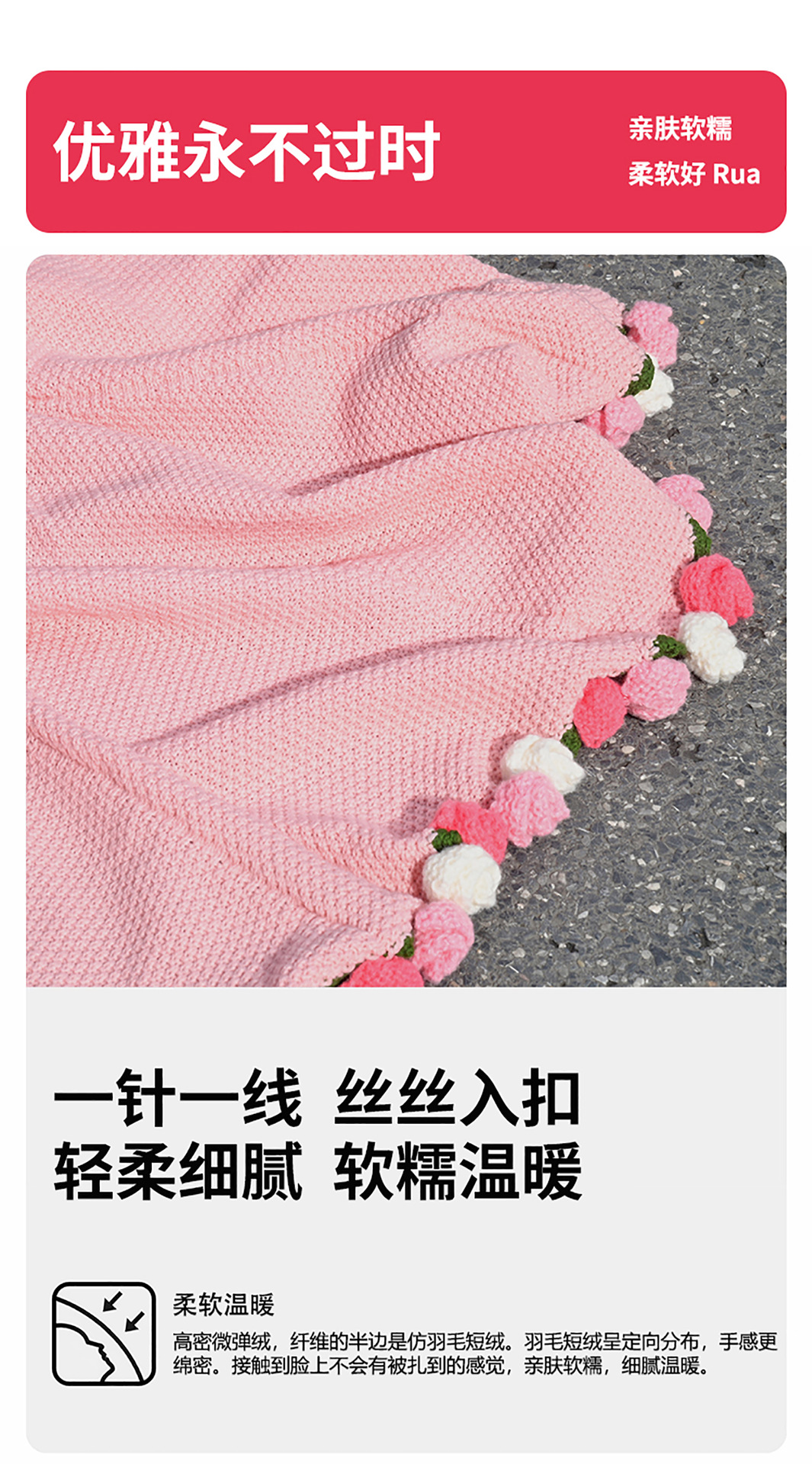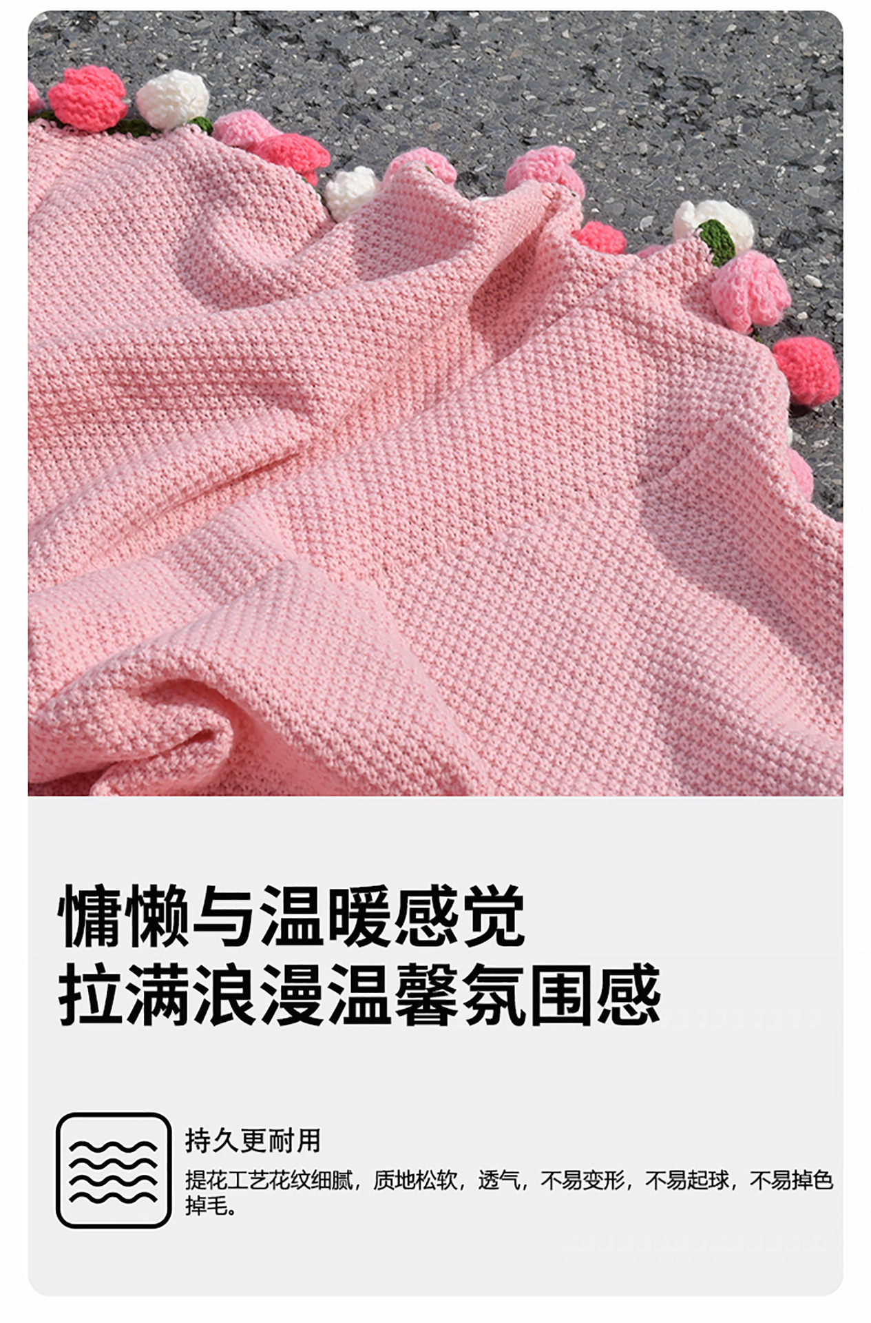 완성된 장미 꽃다발 니트 담요, 손으로 짠 소녀들을 위한 선물, 소파 낮잠 담요, 사진 소품