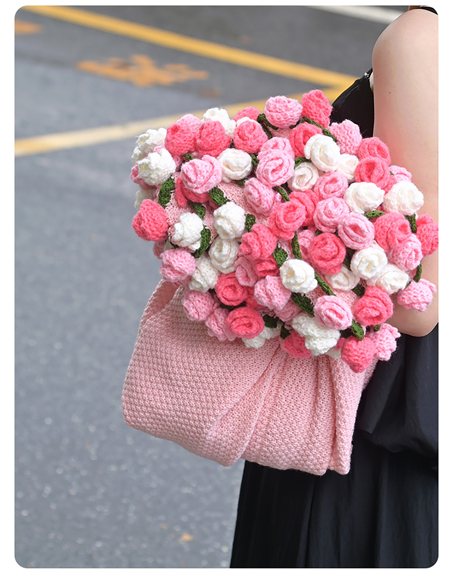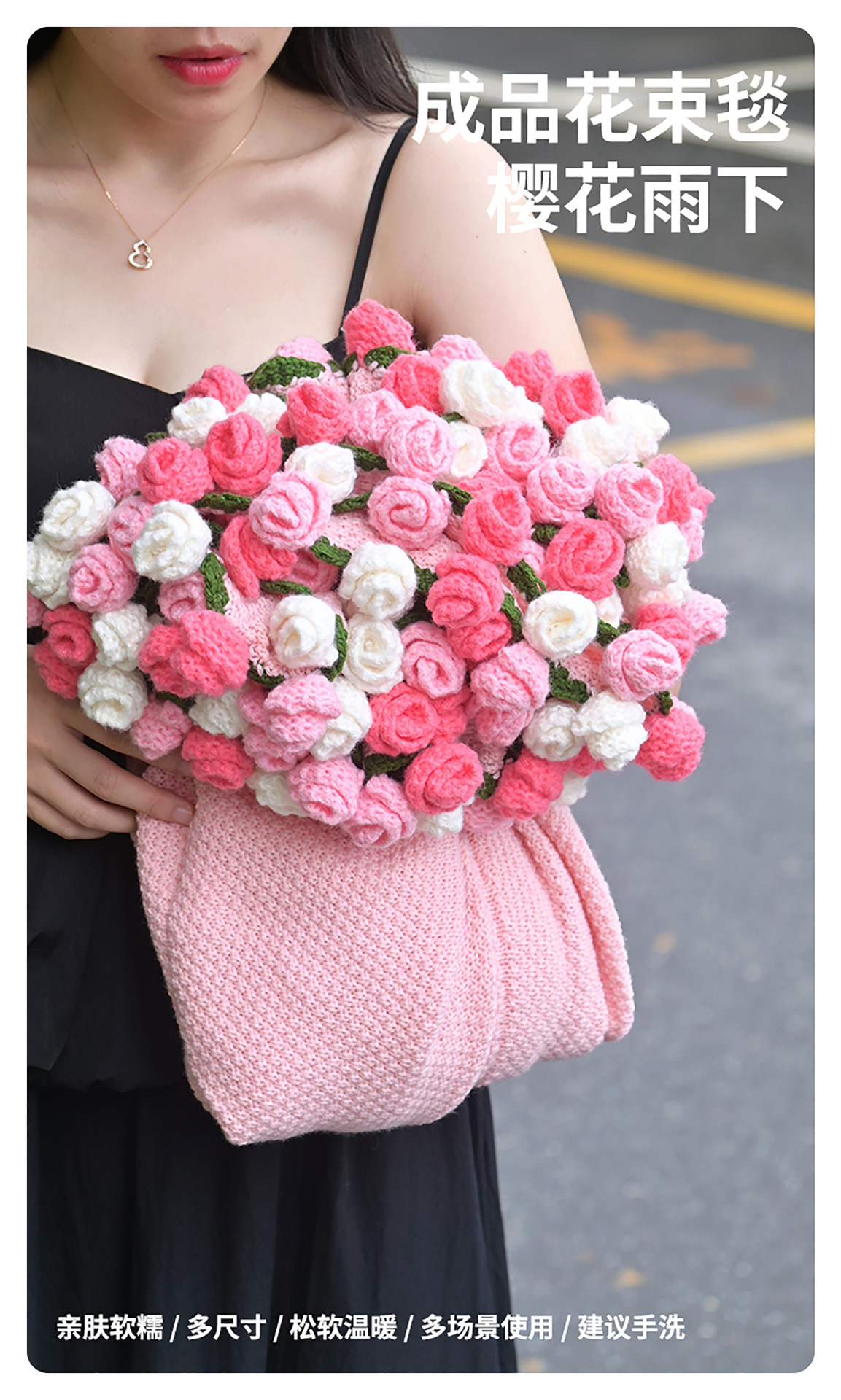 완성된 장미 꽃다발 니트 담요, 손으로 짠 소녀들을 위한 선물, 소파 낮잠 담요, 사진 소품스토어 가기
