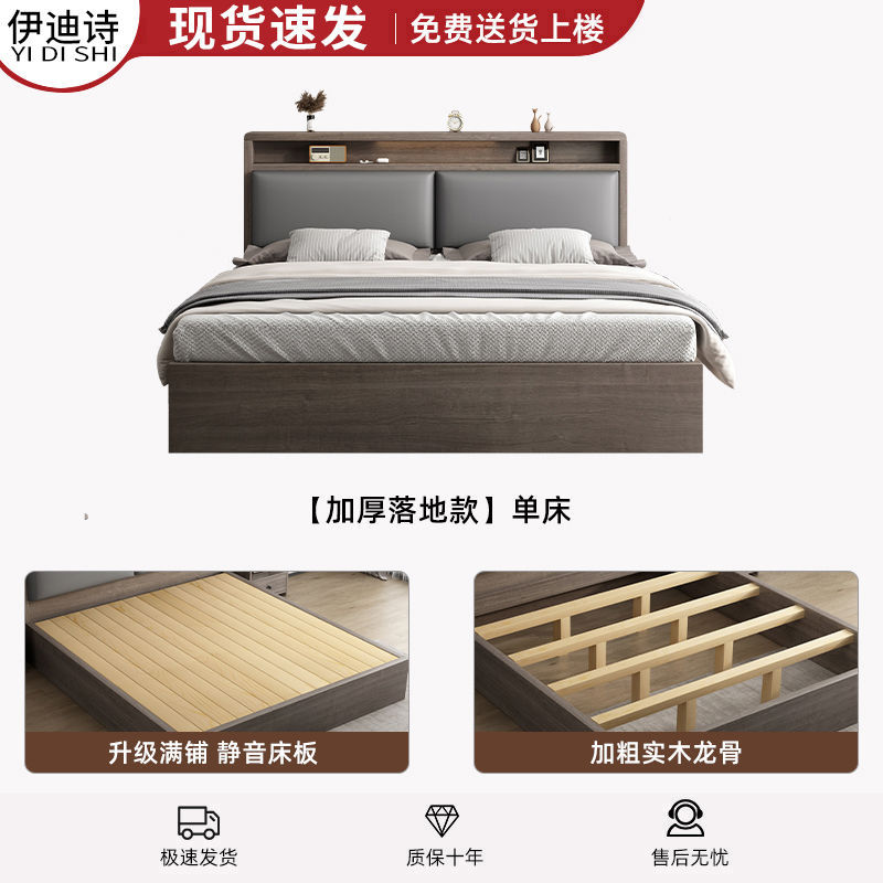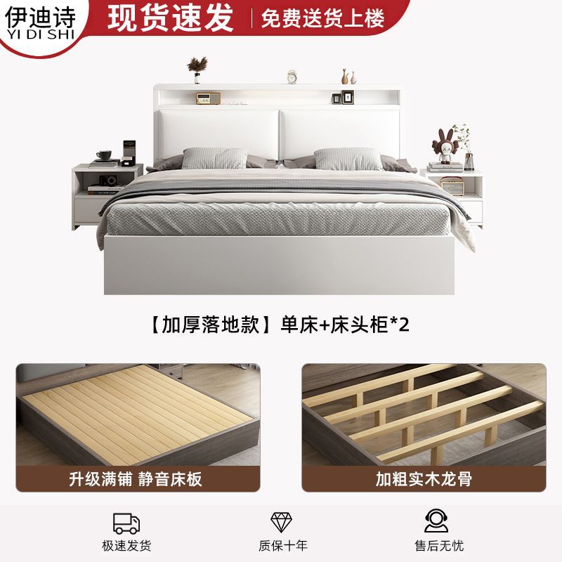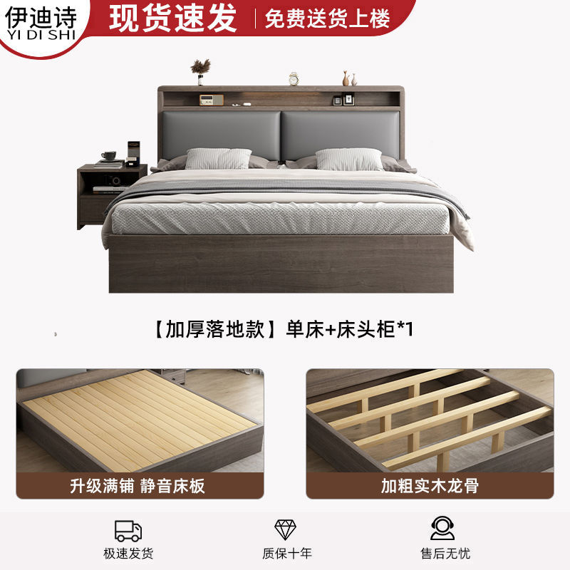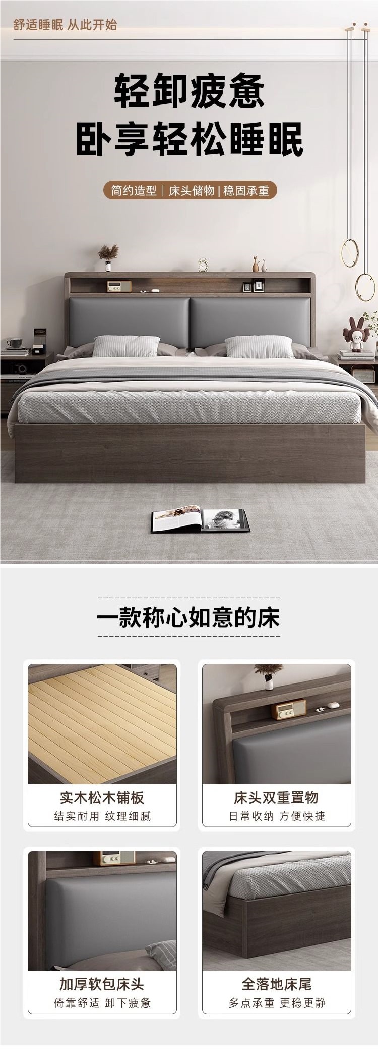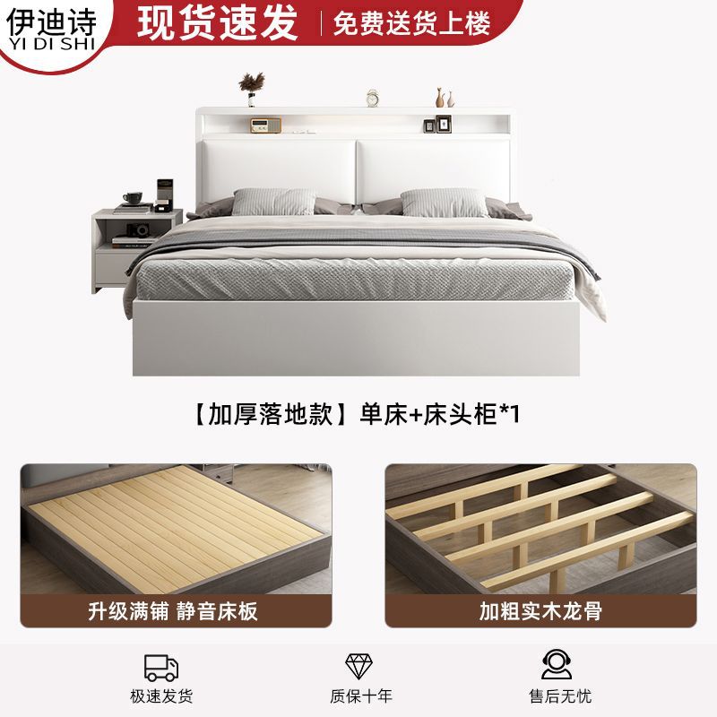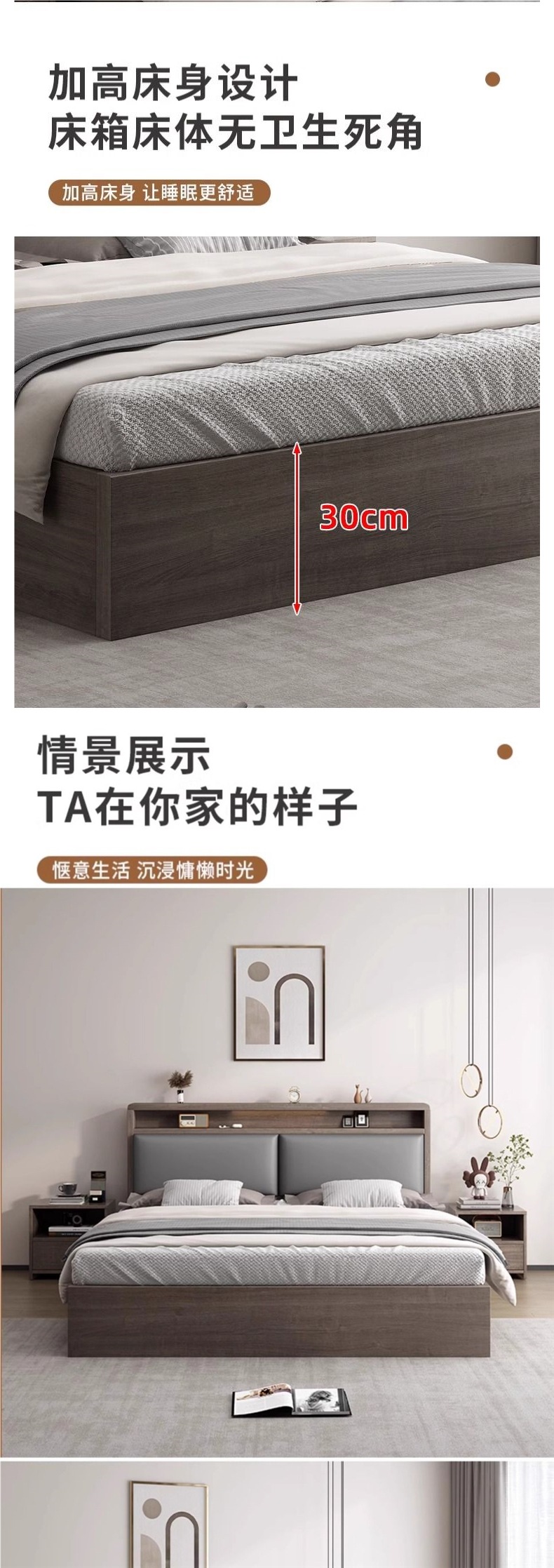 원목 침대 현대적인 미니멀리스트 홈 1.5m 마스터 침실 더블 침대 임대실 수납 대형 침대 1.8 싱글 침대 프레임스토어 가기