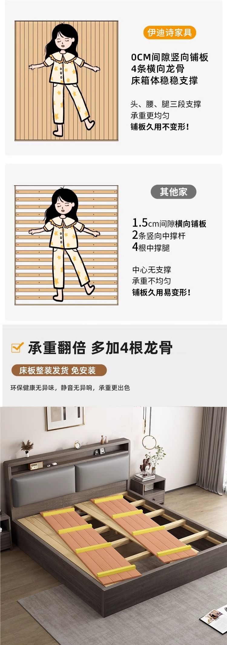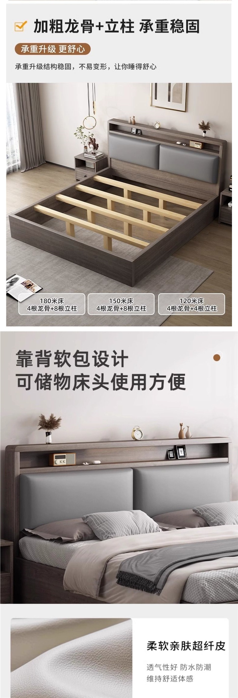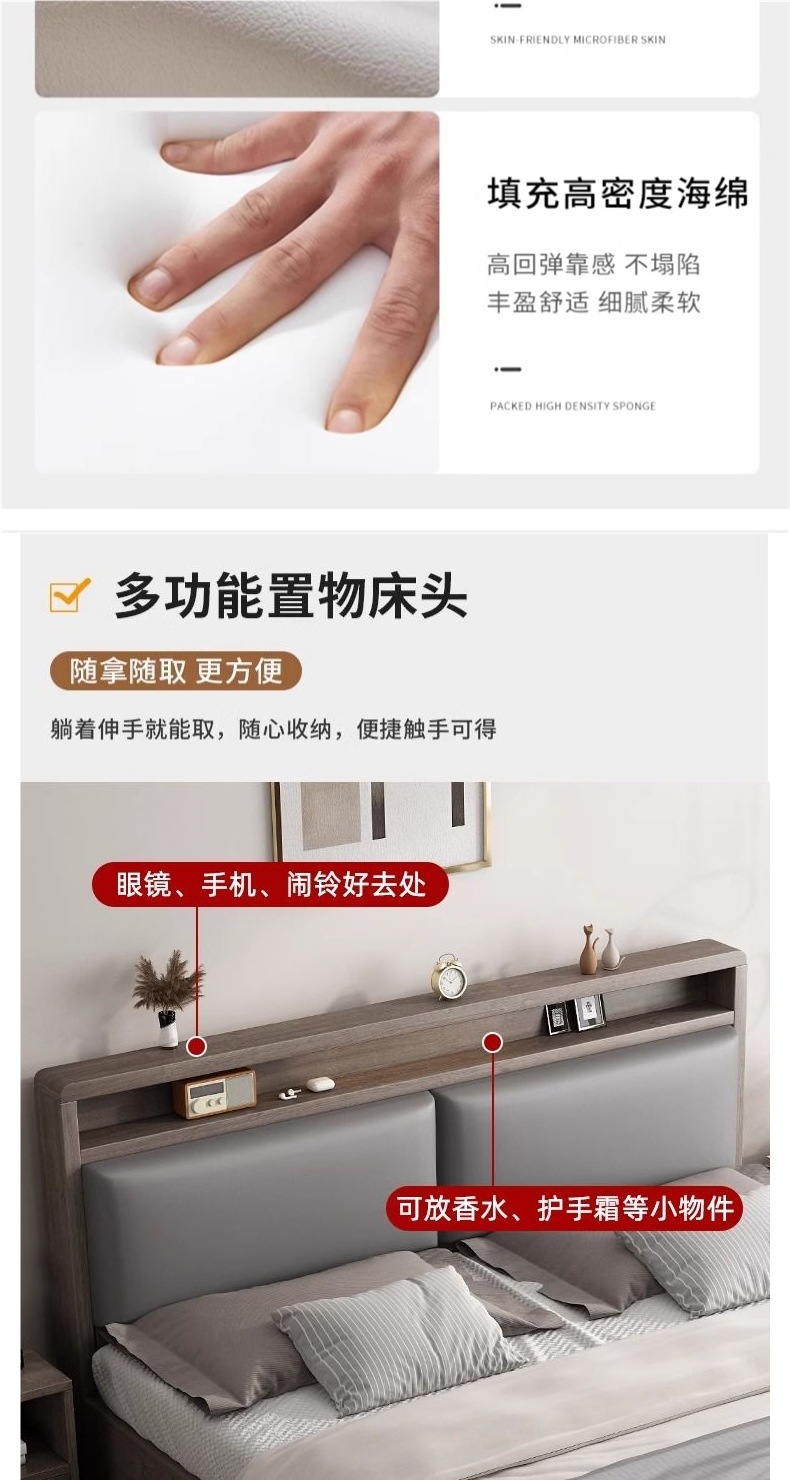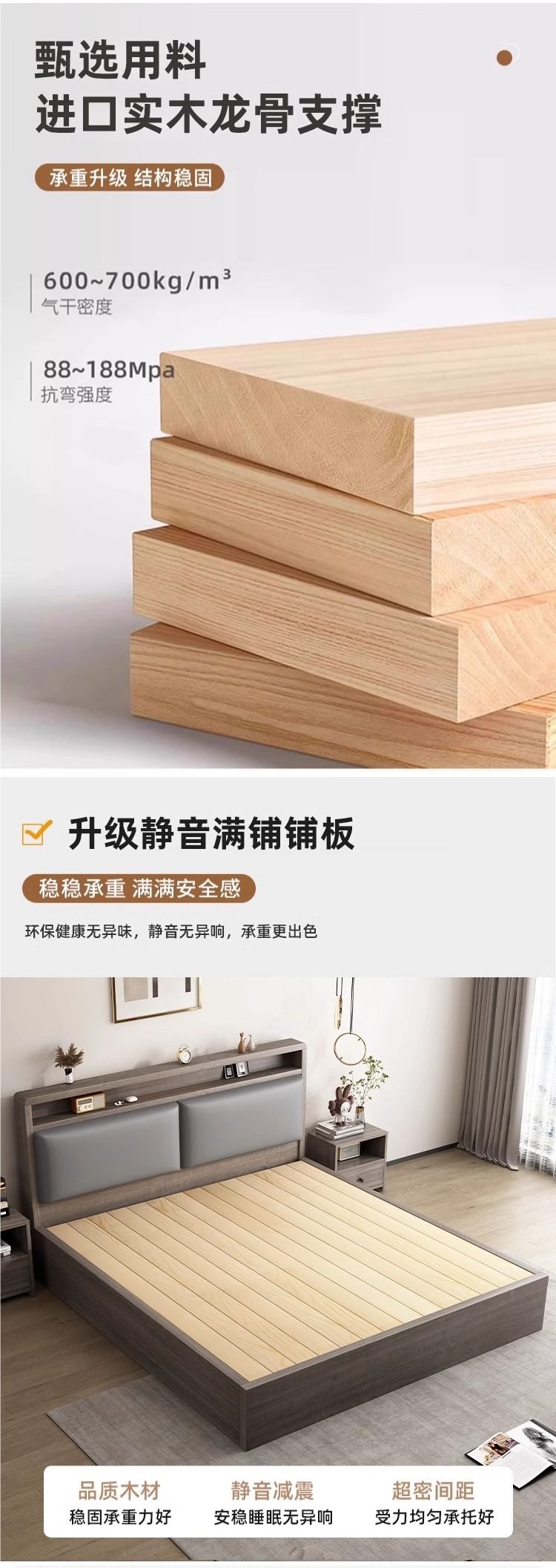 원목 침대 현대적인 미니멀리스트 홈 1.5m 마스터 침실 더블 침대 임대실 수납 대형 침대 1.8 싱글 침대 프레임스토어 가기