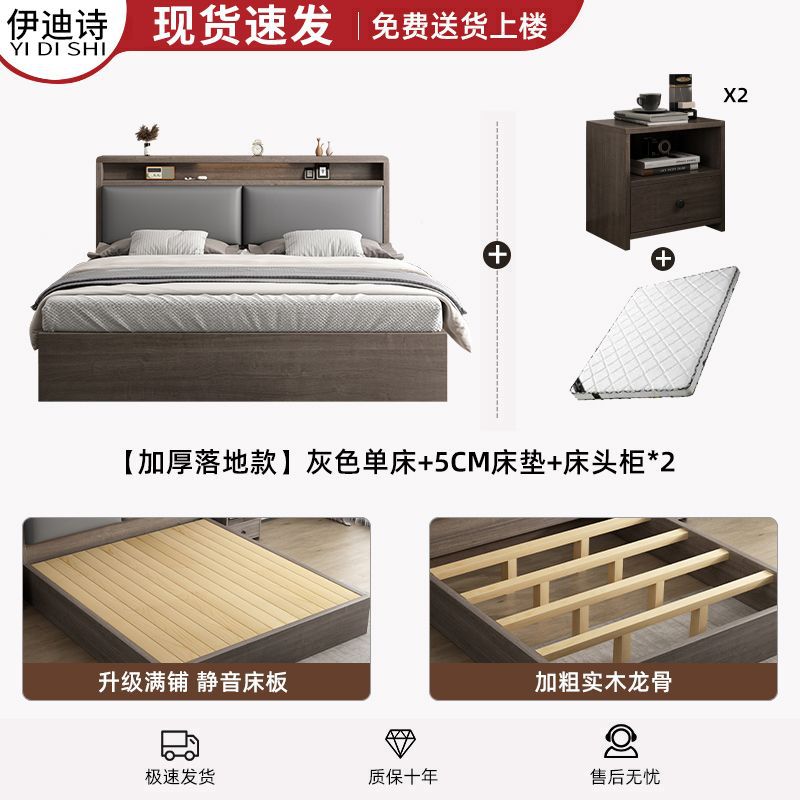 • 그레이 침대 + 10CM 매트리스 + 침대 옆 테이블*2 [위층 배송]