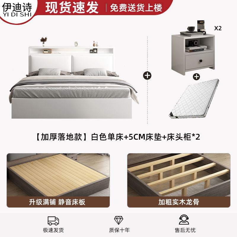 • 화이트 침대 + 10CM 매트리스 + 침대 옆 탁자*2 [위층 배송]