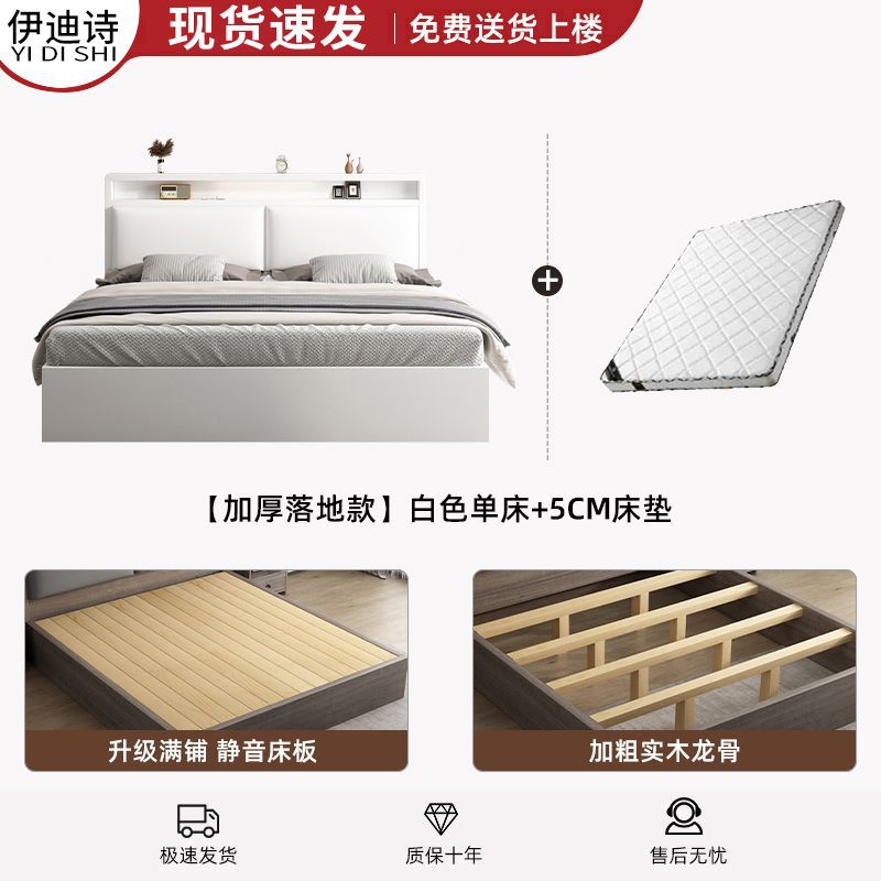 • 화이트 침대 + 5CM 매트리스 + 침대 옆 탁자*1 [위층으로 배송]