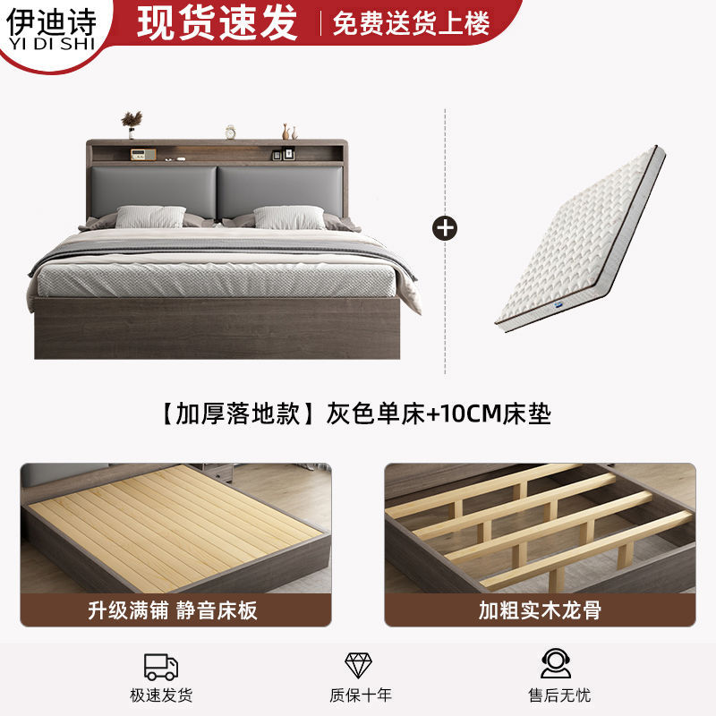 • 그레이 침대 + 10CM 매트리스 + 침대 옆 테이블*1 [위층 배송]