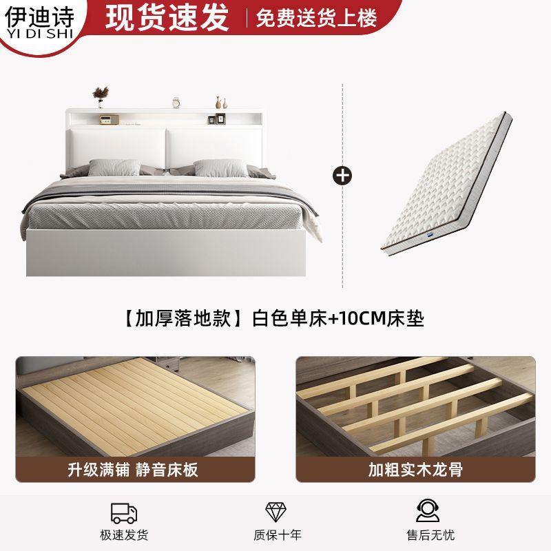 • 화이트 침대 + 10CM 매트리스 + 침대 옆 탁자*1 [위층으로 배송]