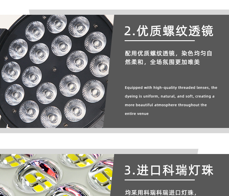 • 18개의 4-in-1 파 조명 - 높은 구성