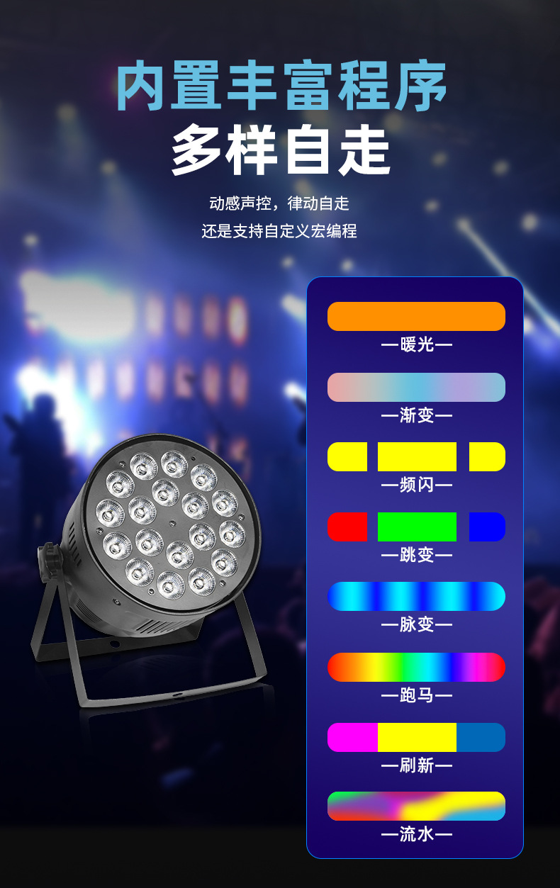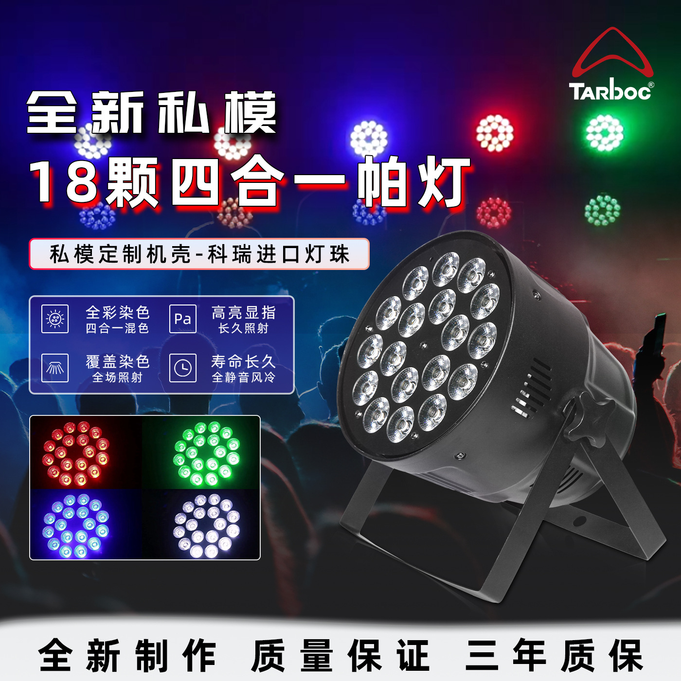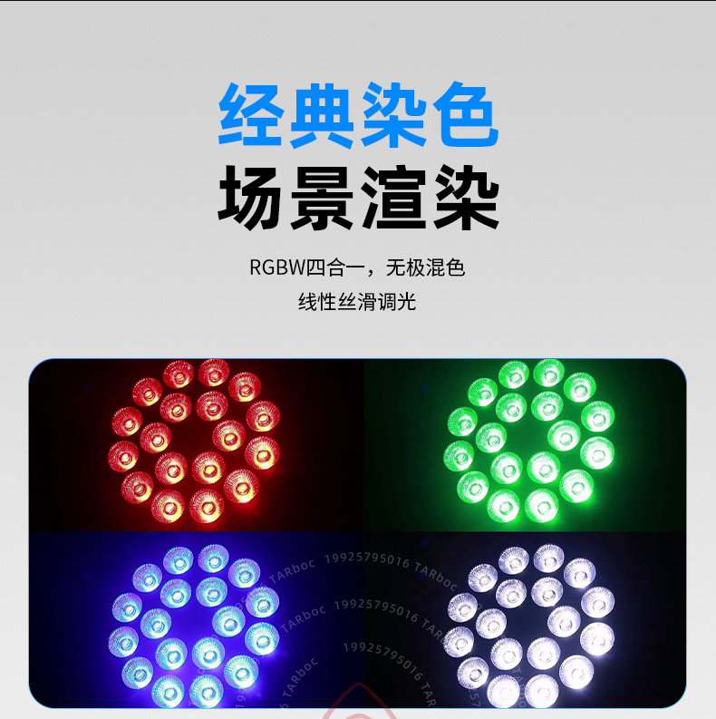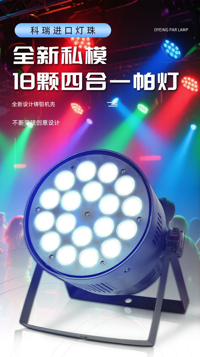 새로운 LED 18pcs 10w 4-in-one 풀 컬러 염색 파 라이트 쇼 웨딩 라이브 방송 분위기 라이트 바 무대 조명