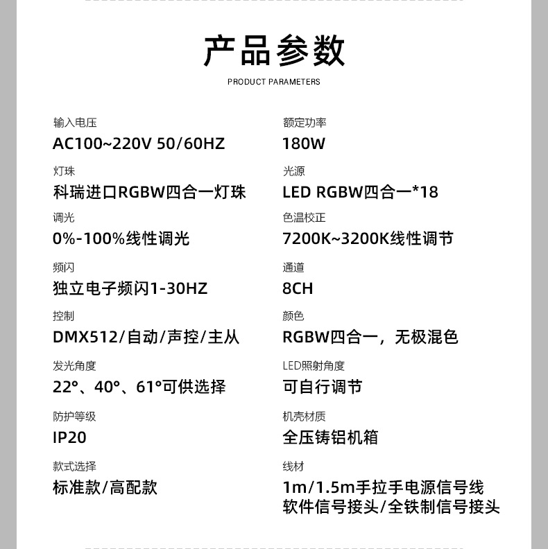 • 18개의 4-in-1 파 조명 - 표준 버전