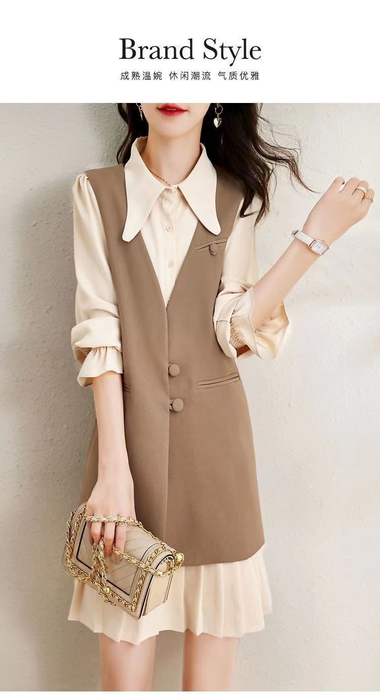 복부 통근 여성용 양복 조끼 투피스 슬리밍 아우터 새로운 루즈 캐주얼 가을 드레스 정장 스커트스토어 가기