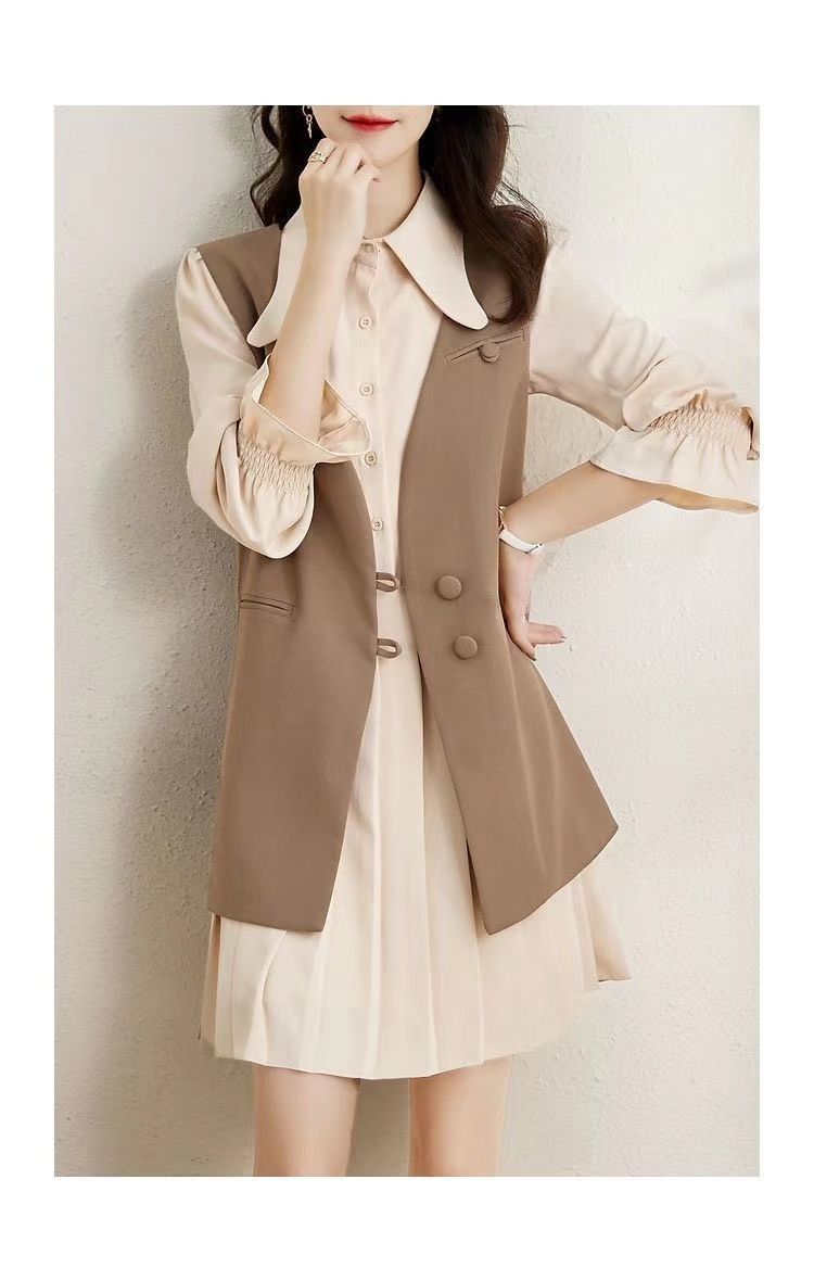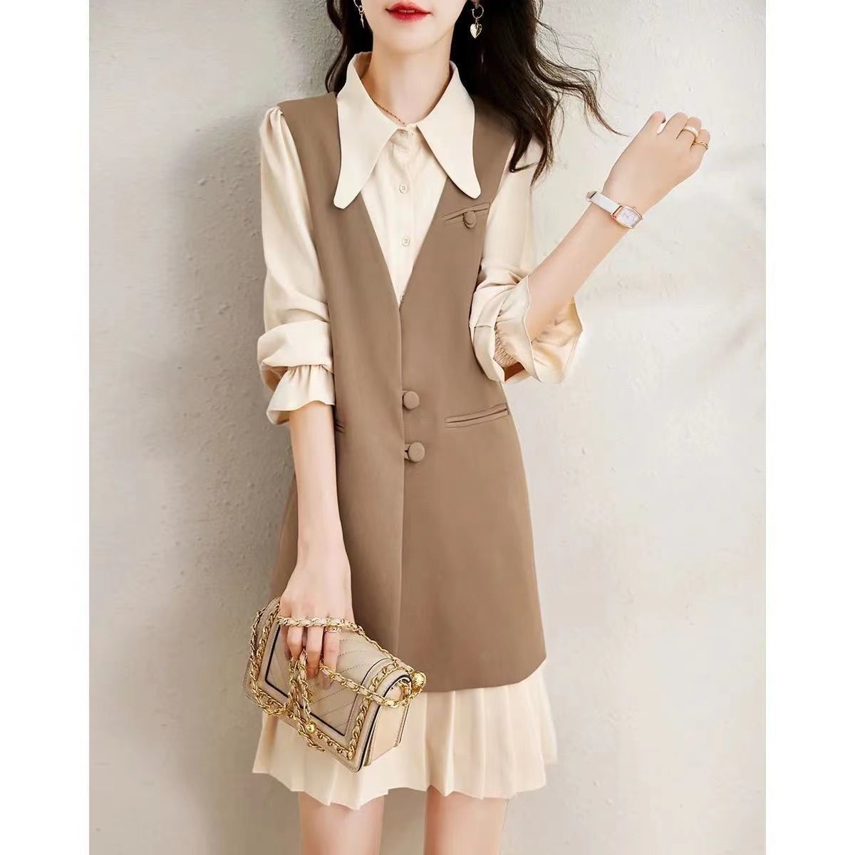 복부 통근 여성용 양복 조끼 투피스 슬리밍 아우터 새로운 루즈 캐주얼 가을 드레스 정장 스커트