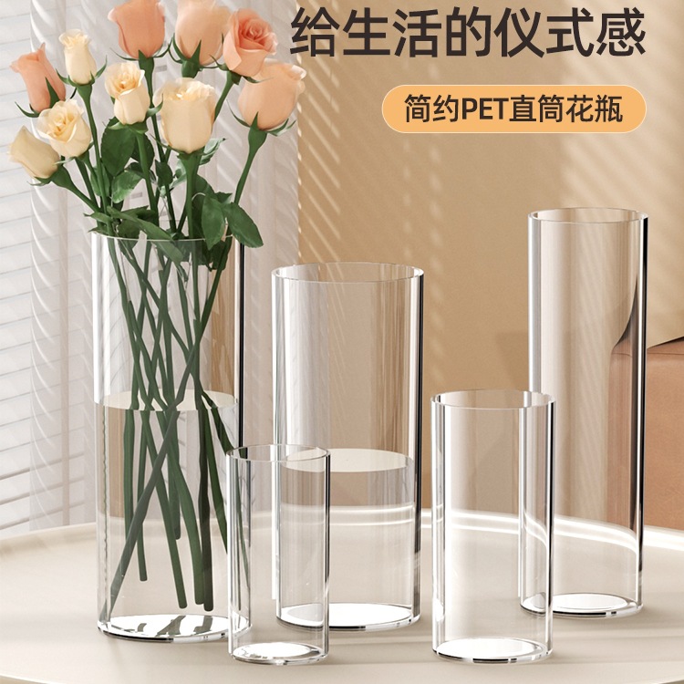 꽃병 장식품, 거실 꽃꽂이, 유리 아크릴 투명 꽃통, 부유한 대나무 백합, 물에 담그고 가벼운 럭셔리함스토어 가기