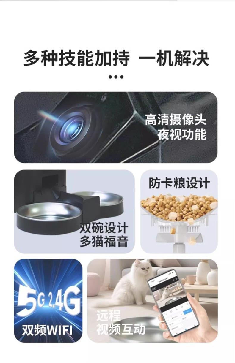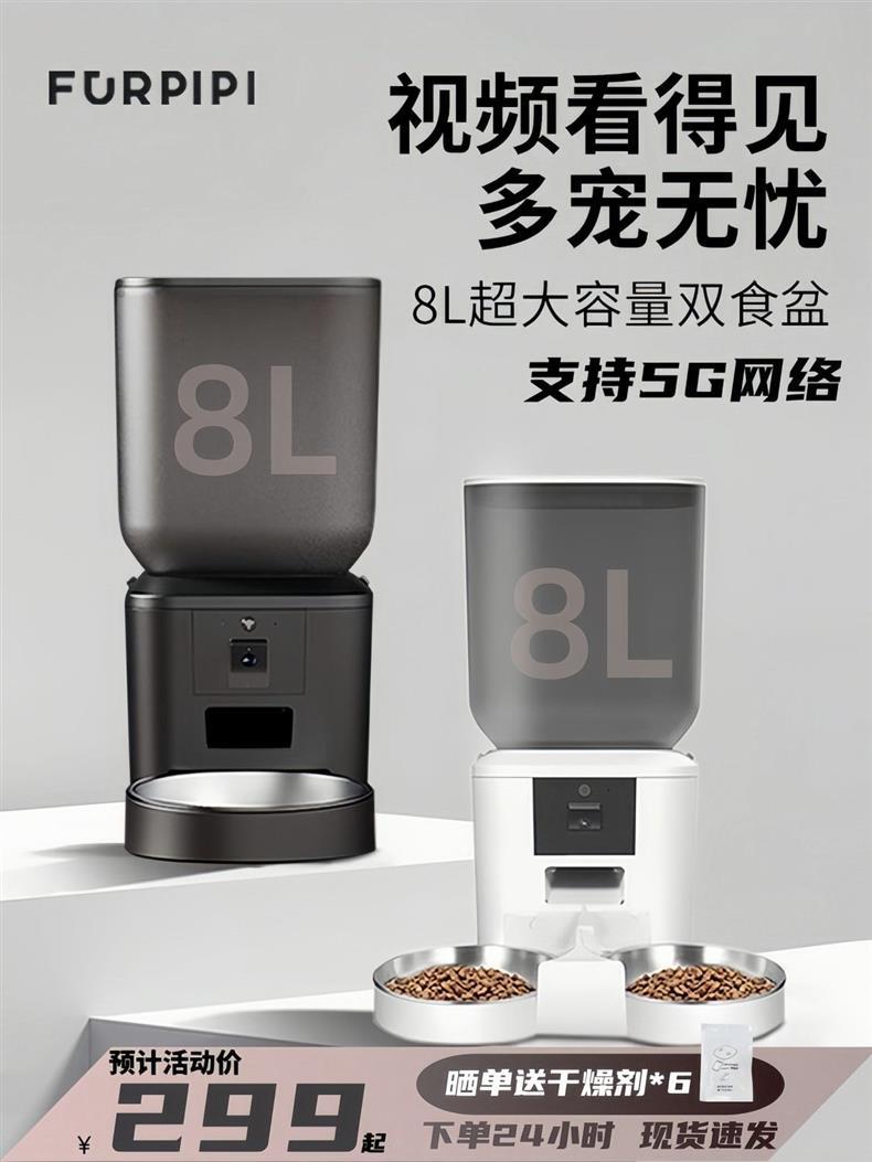 FURPIPI 애완 동물 피더 고양이 사료 및 개 사료 자동 먹이 공급은 5Gwifi 원격 제어 야간 투시경 비디오를 지원합니다.스토어 가기