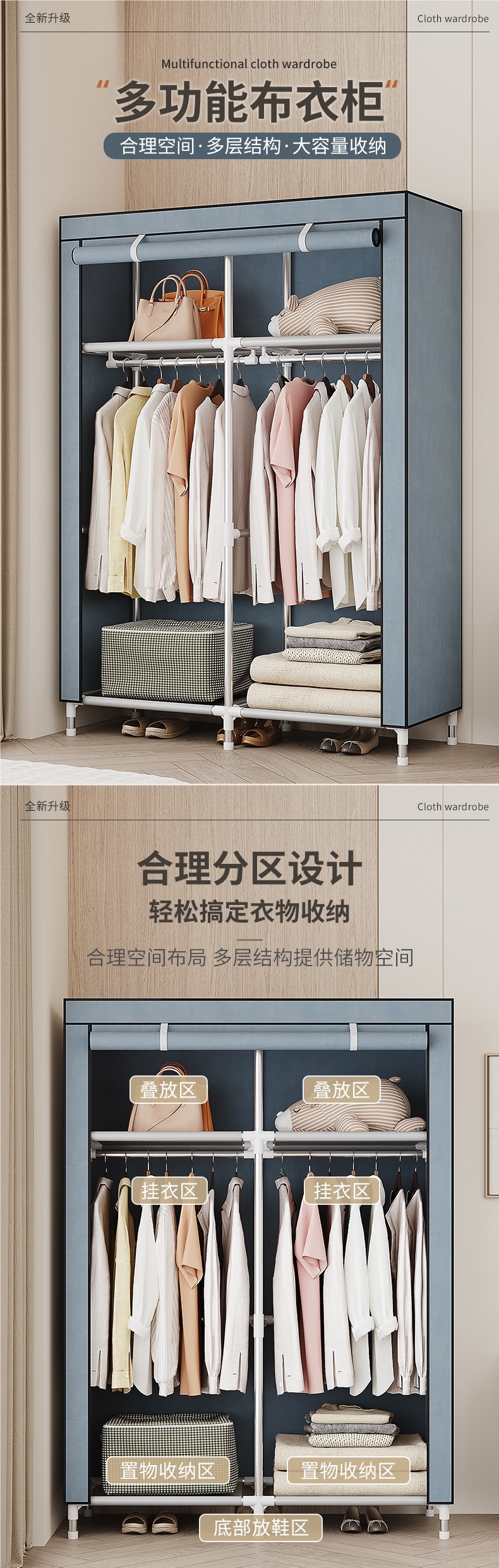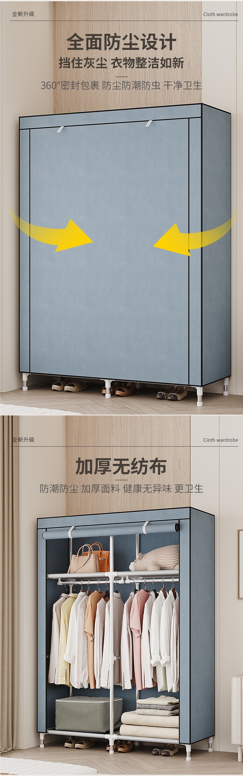 가정용 침실 임대실용 간이 옷장, 강화되고 튼튼하며 내구성이 뛰어난 전체 강철 프레임과 두꺼운 천 옷장