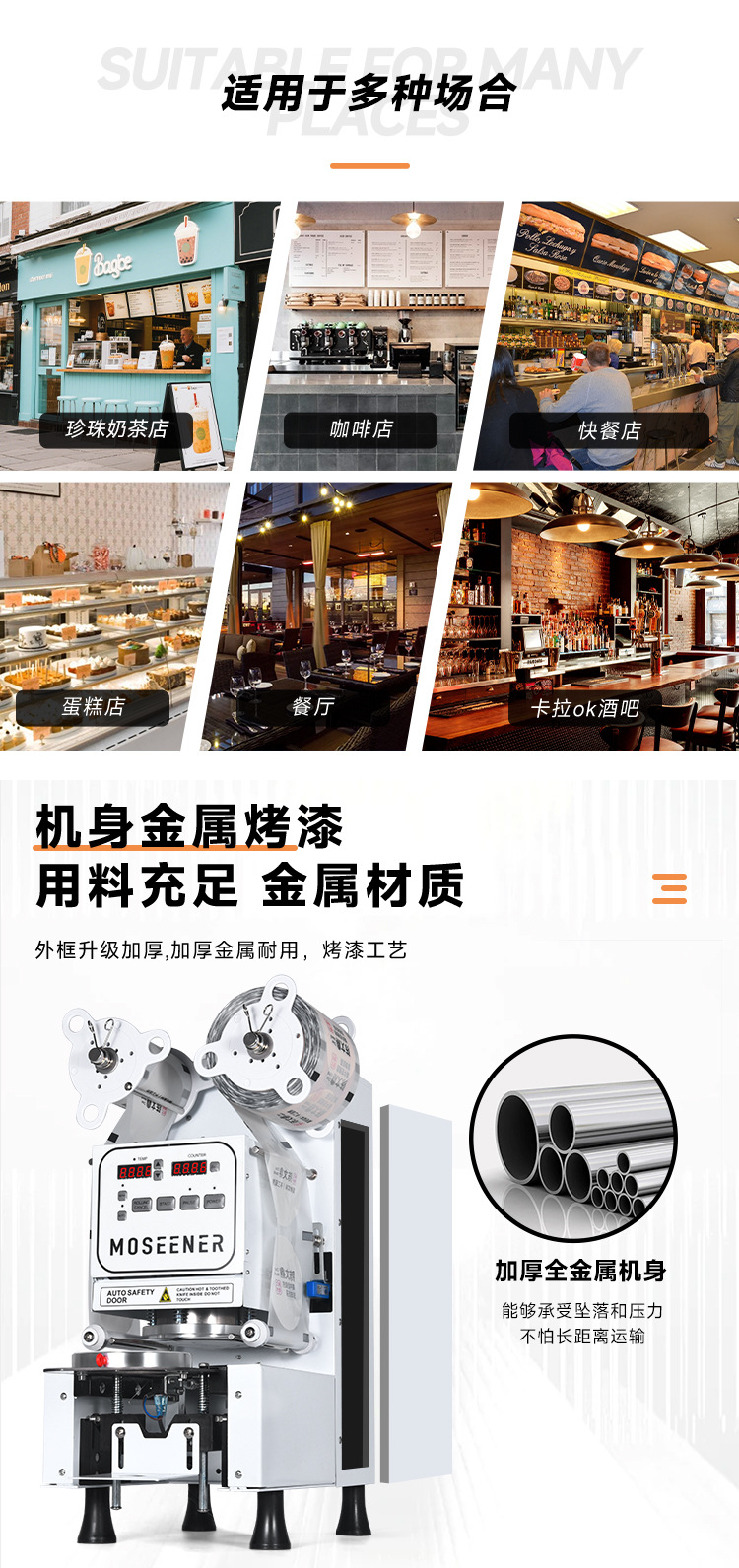 Mosen 완전 자동 진주 우유 차 씰링 기계 종이 플라스틱 이중 목적 두유 컵 씰링 기계 음료 컵 씰링 기계 식품스토어 가기