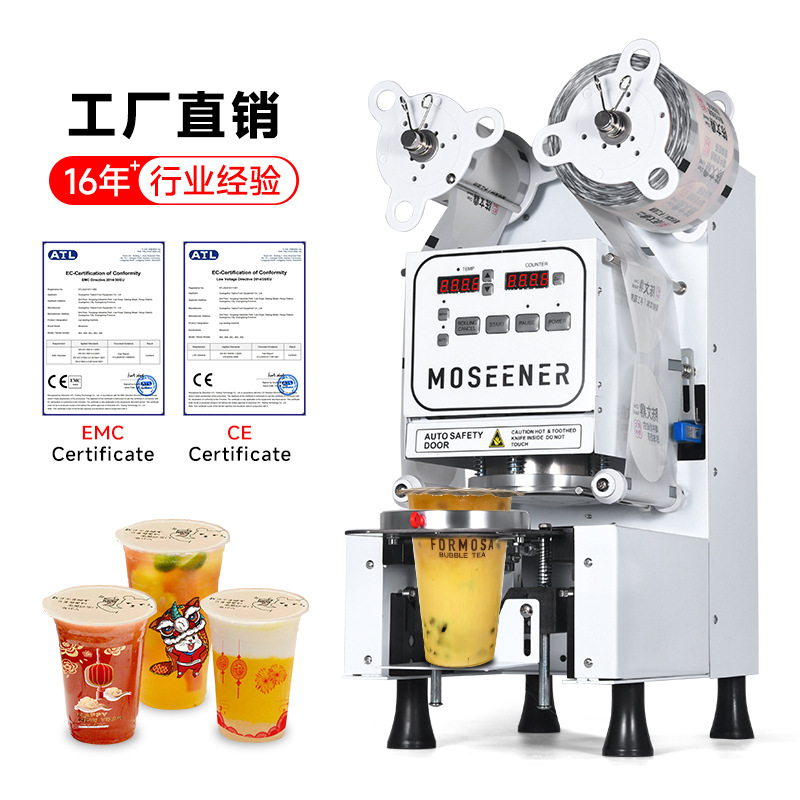 Mosen 완전 자동 진주 우유 차 씰링 기계 종이 플라스틱 이중 목적 두유 컵 씰링 기계 음료 컵 씰링 기계 식품