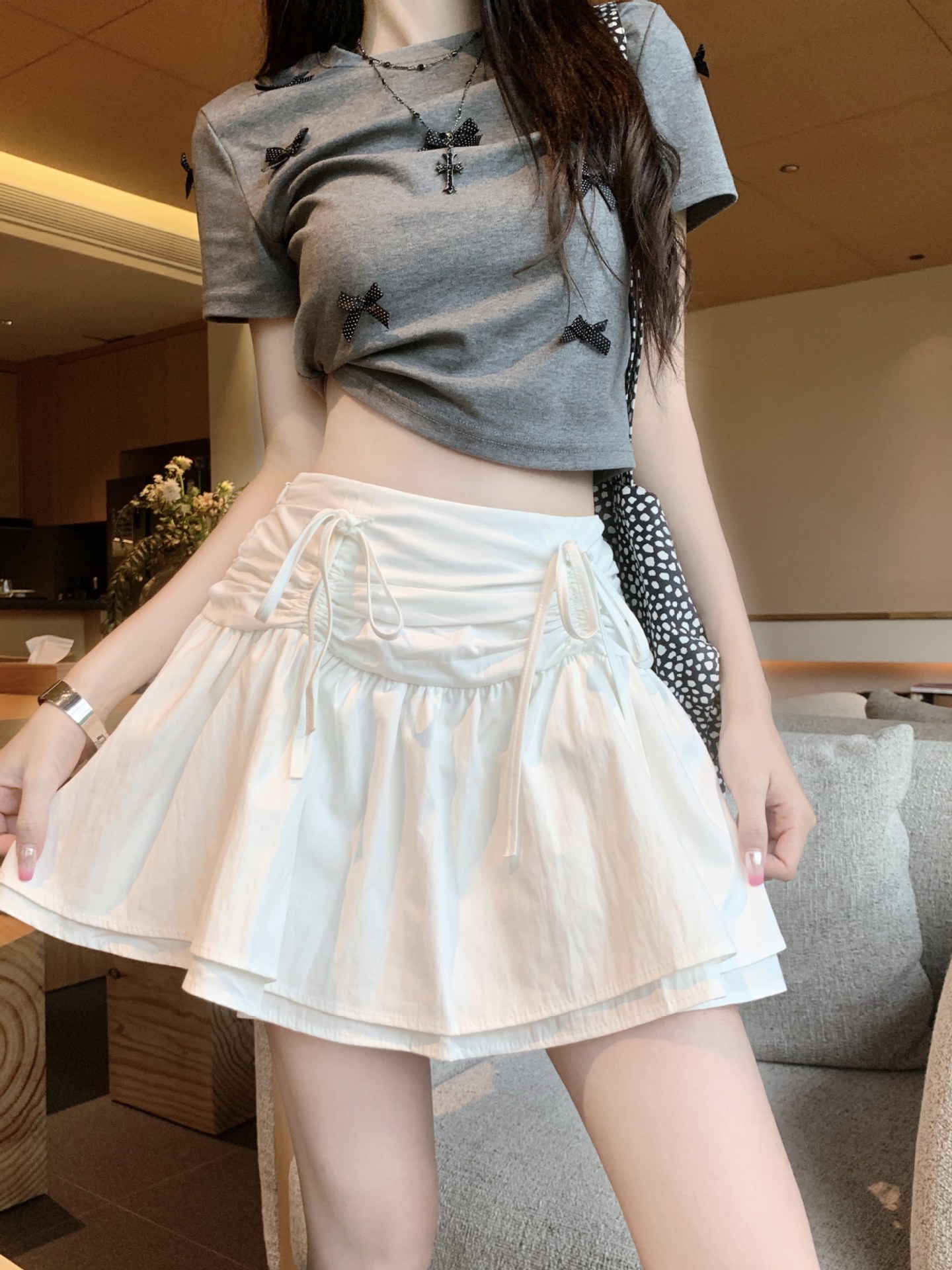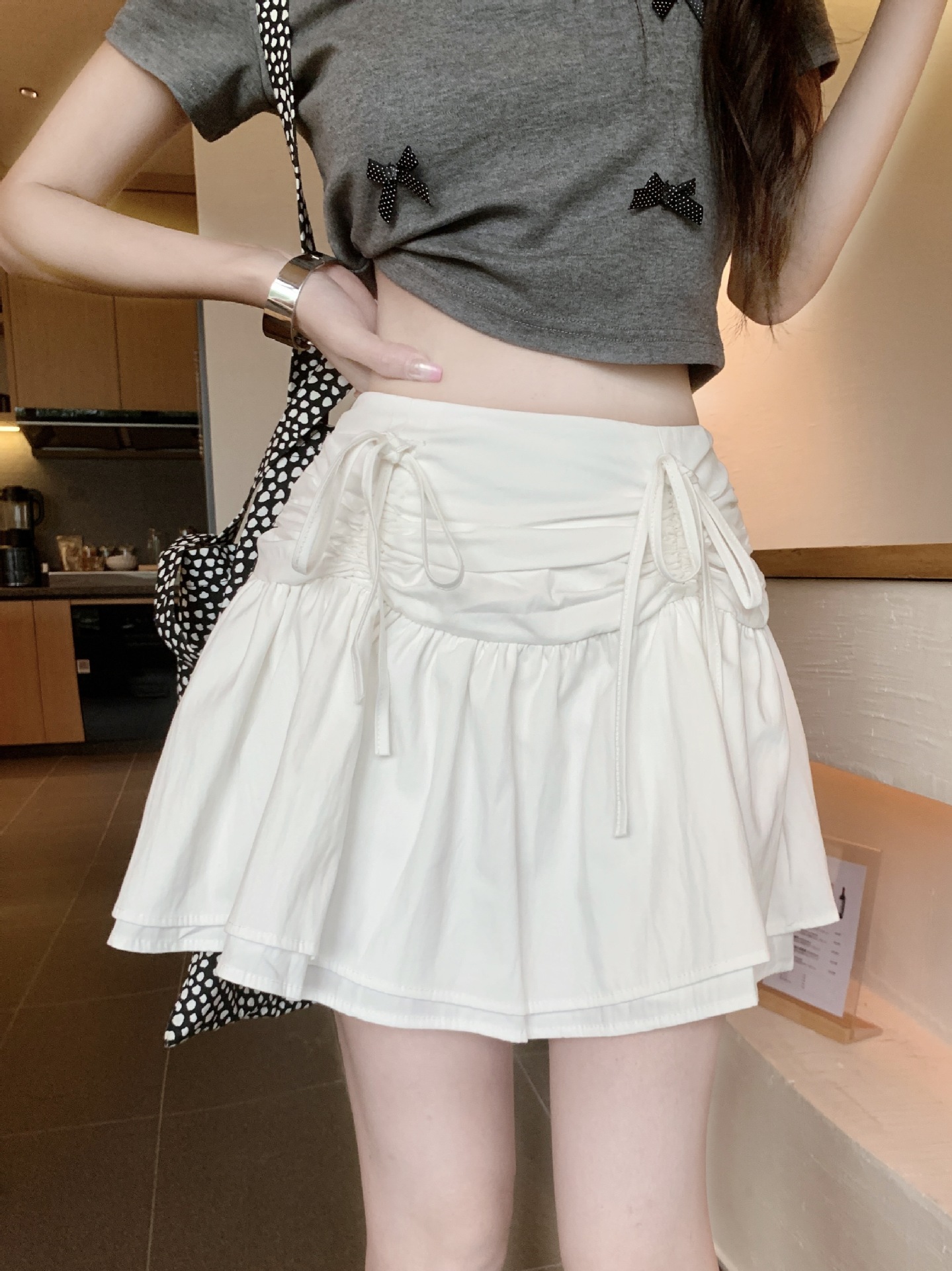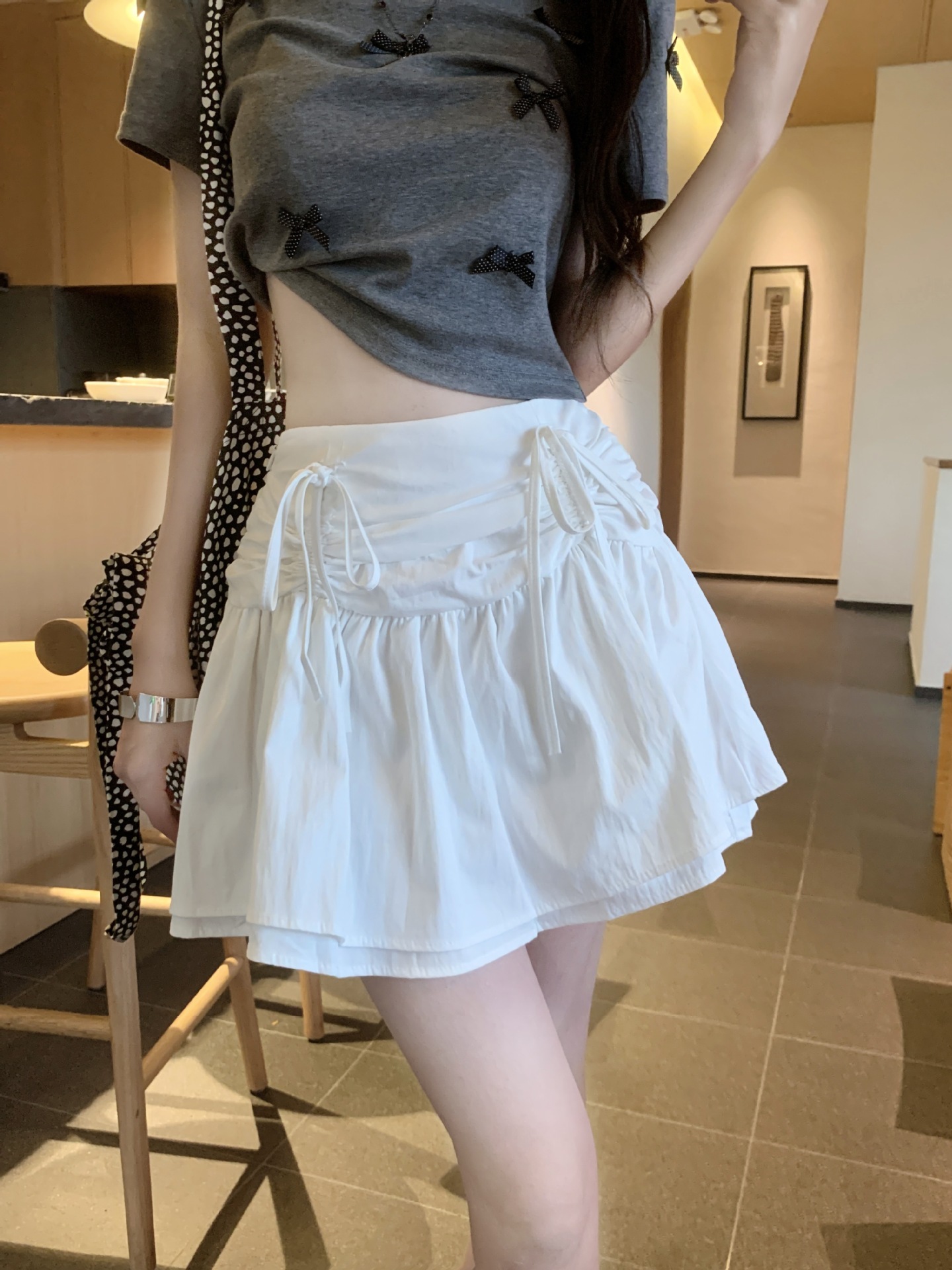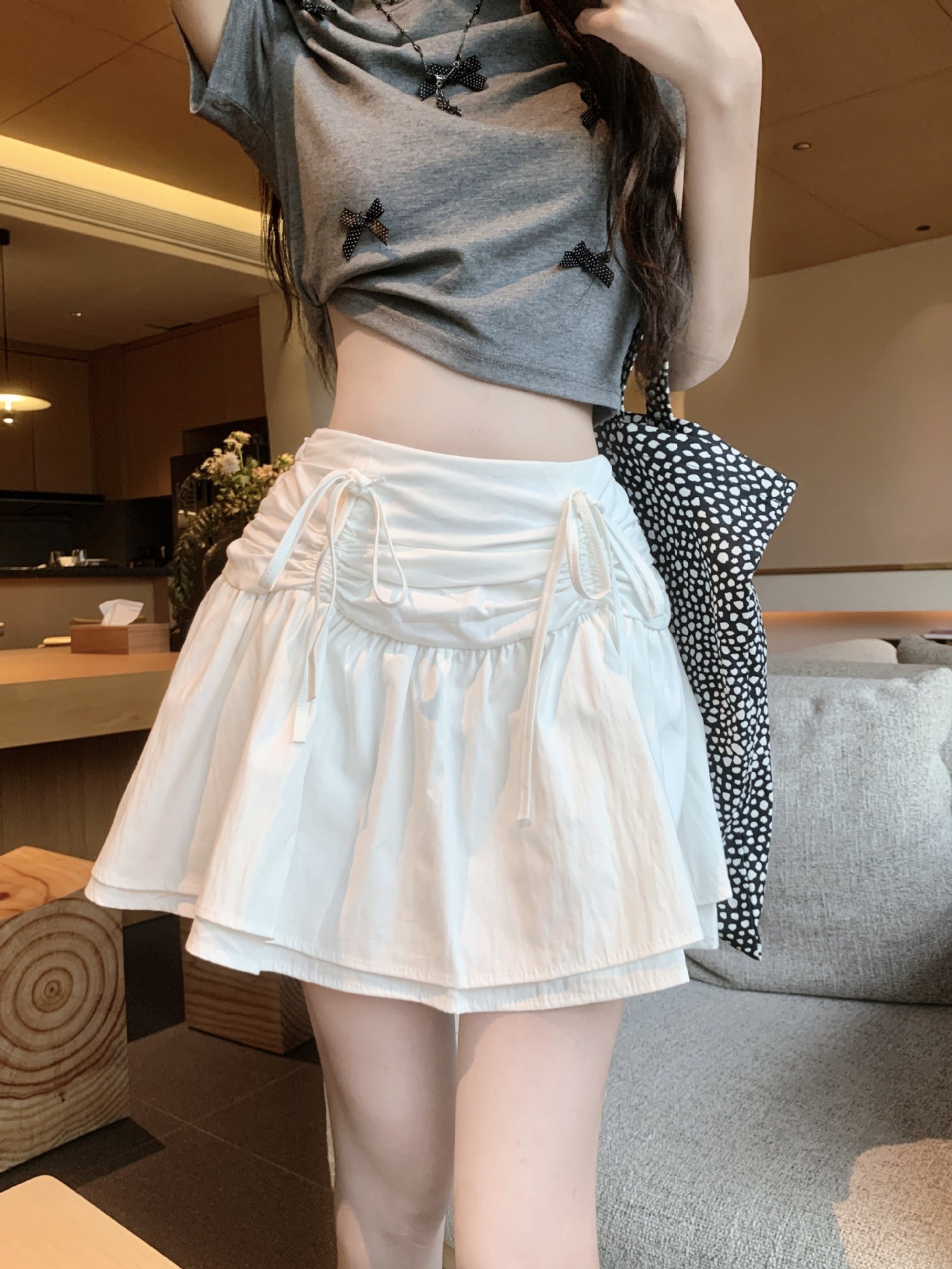 디자인된 리본 스커트, 푹신한 스커트, 여성용 화이트 스커트, 여름 스위트 스타일 A라인 스커트, 버드 스커트스토어 가기