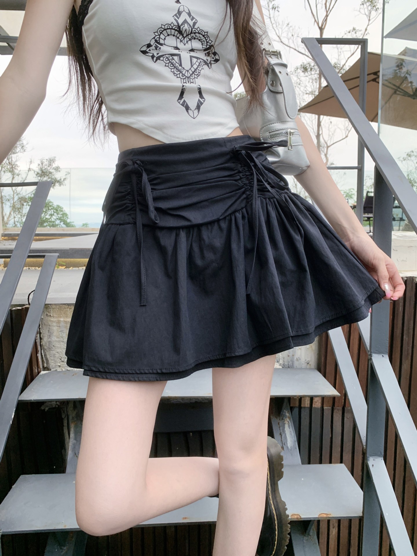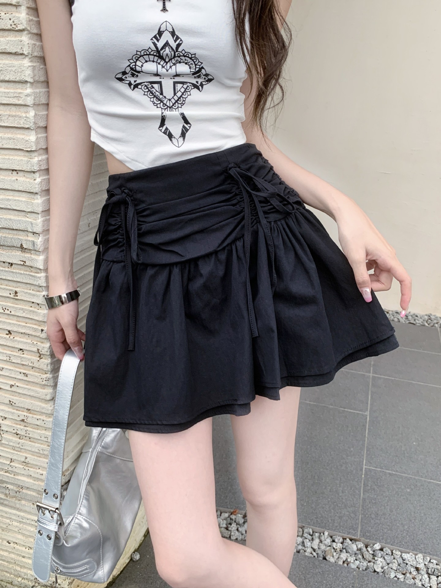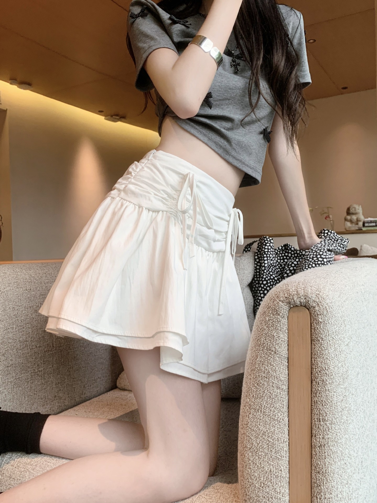 디자인된 리본 스커트, 푹신한 스커트, 여성용 화이트 스커트, 여름 스위트 스타일 A라인 스커트, 버드 스커트스토어 가기