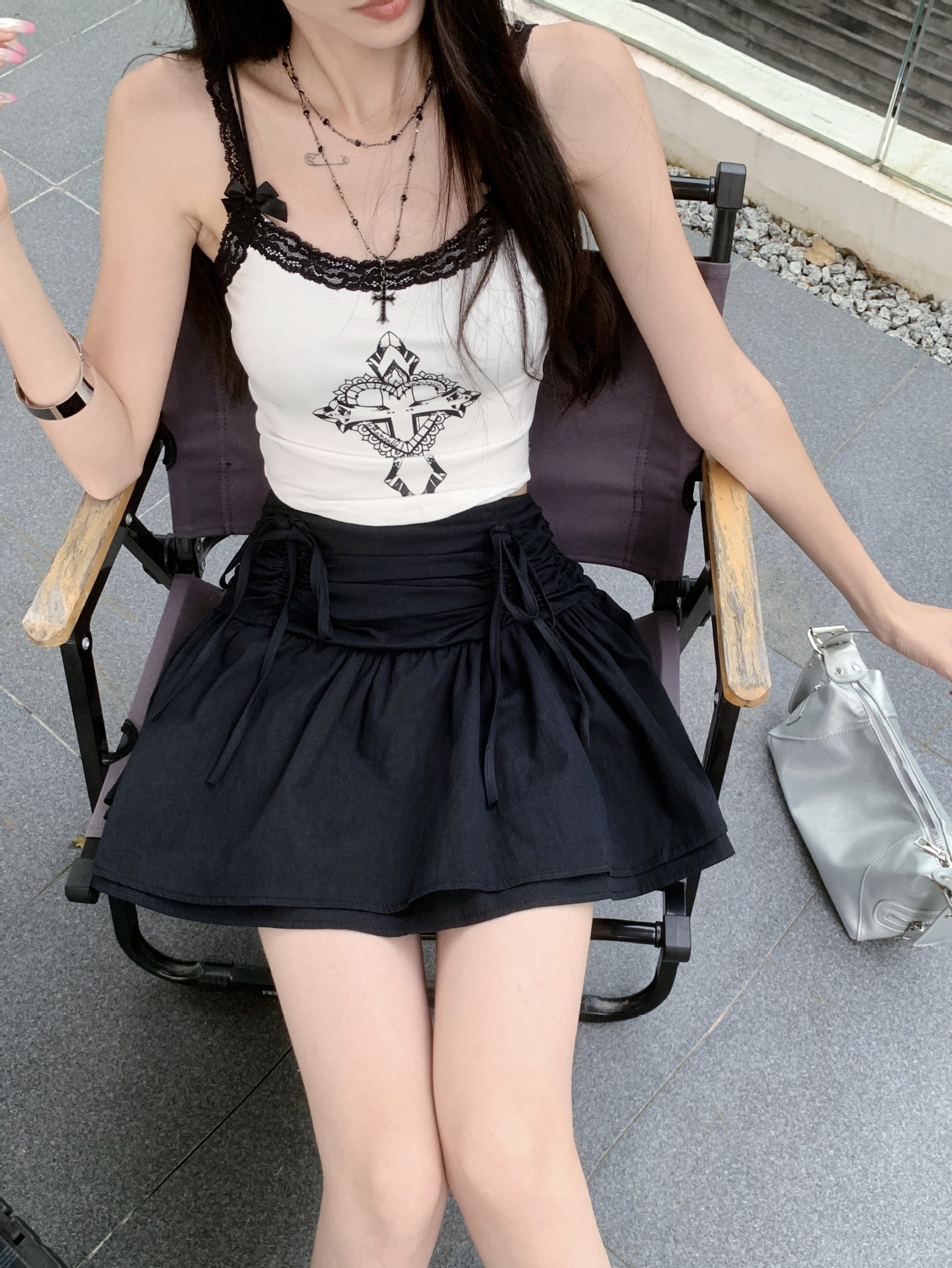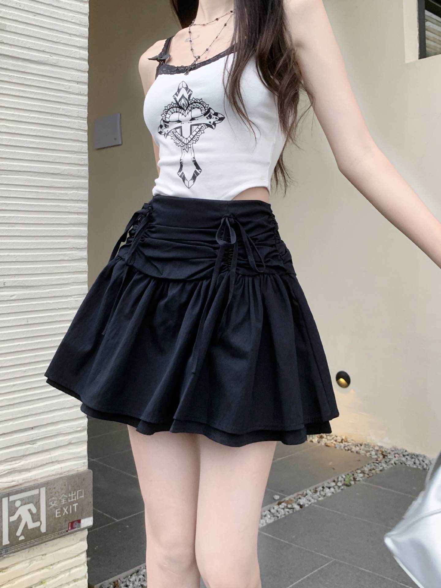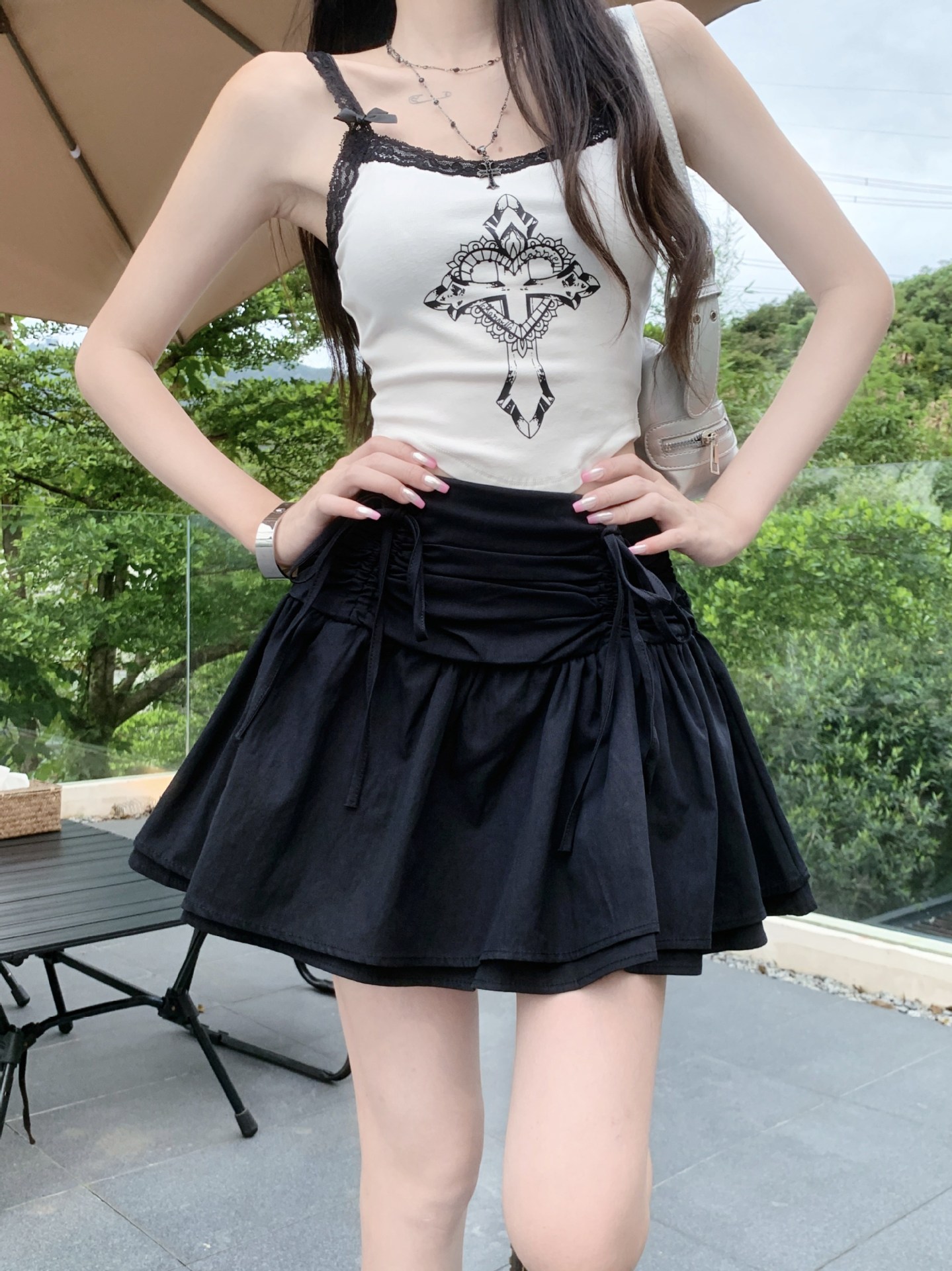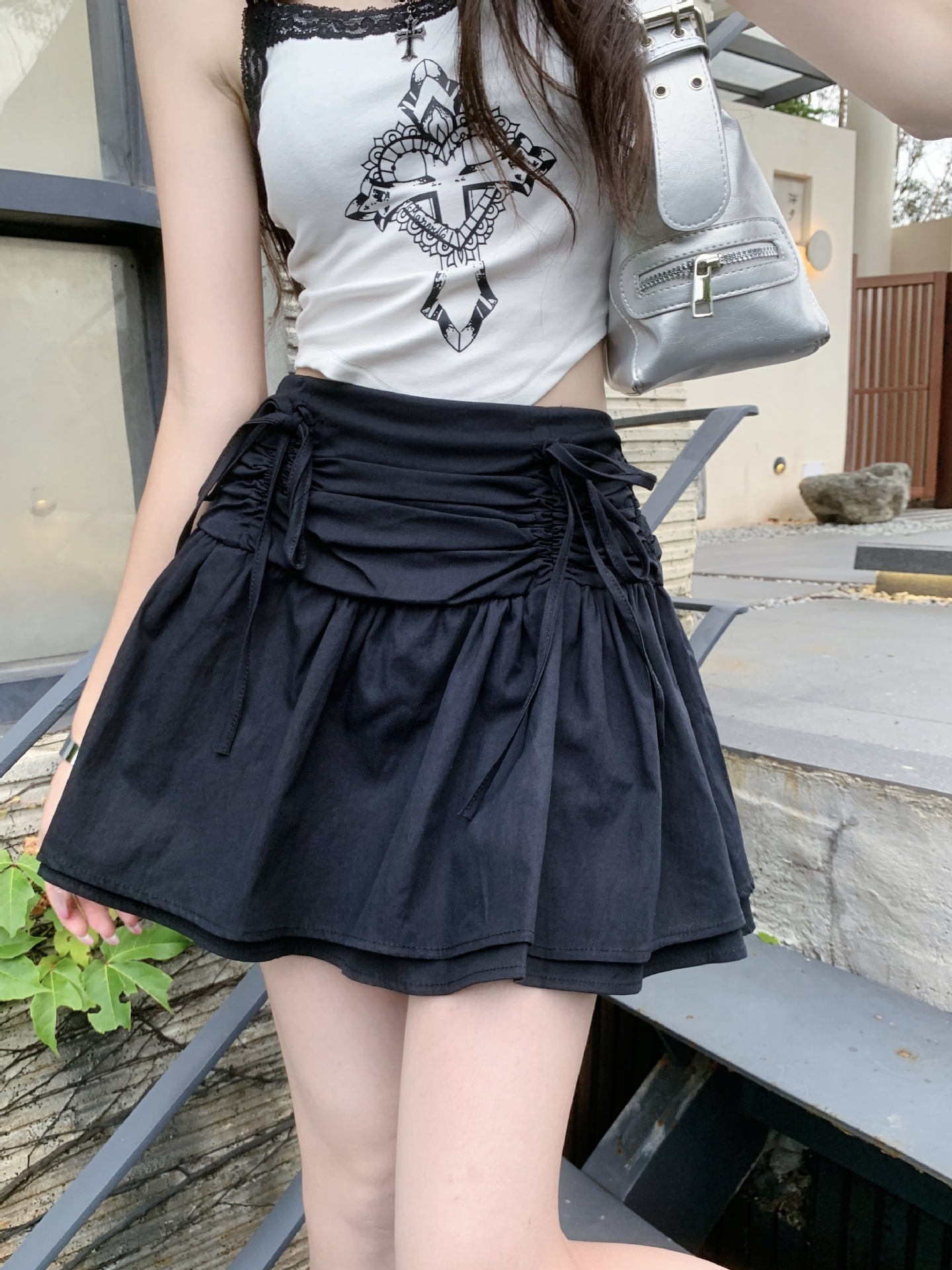 디자인된 리본 스커트, 푹신한 스커트, 여성용 화이트 스커트, 여름 스위트 스타일 A라인 스커트, 버드 스커트스토어 가기
