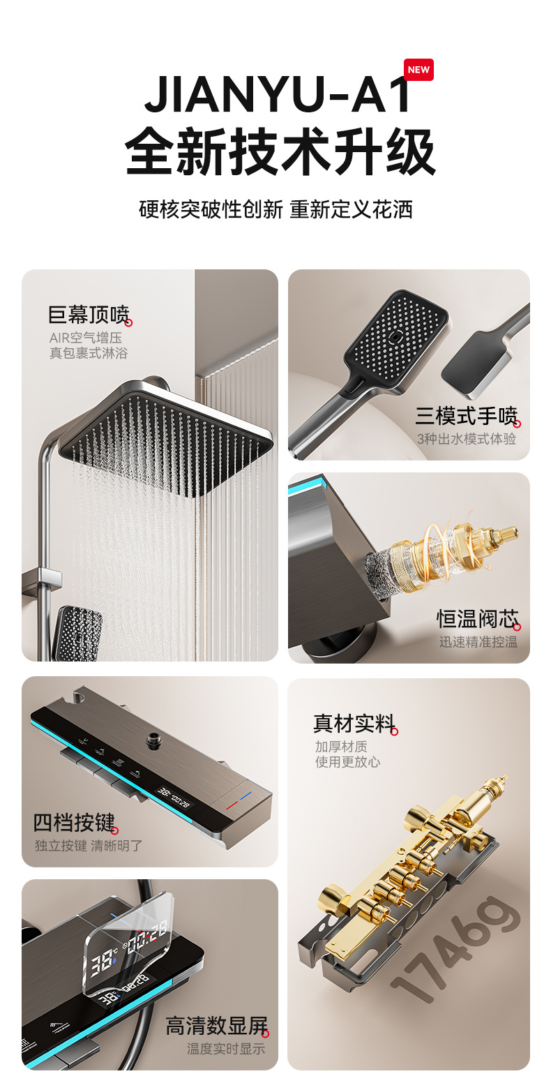 • 베벨 디지털 디스플레이 건 그레이 구리 본체