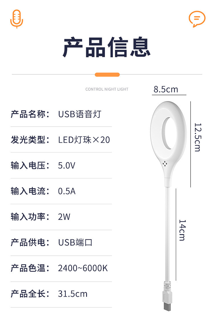 음성 제어 야간 조명 음성 조명 휴대용 기숙사 침대 옆 눈 보호 지능형 음성 야간 조명 미니 램프 없음