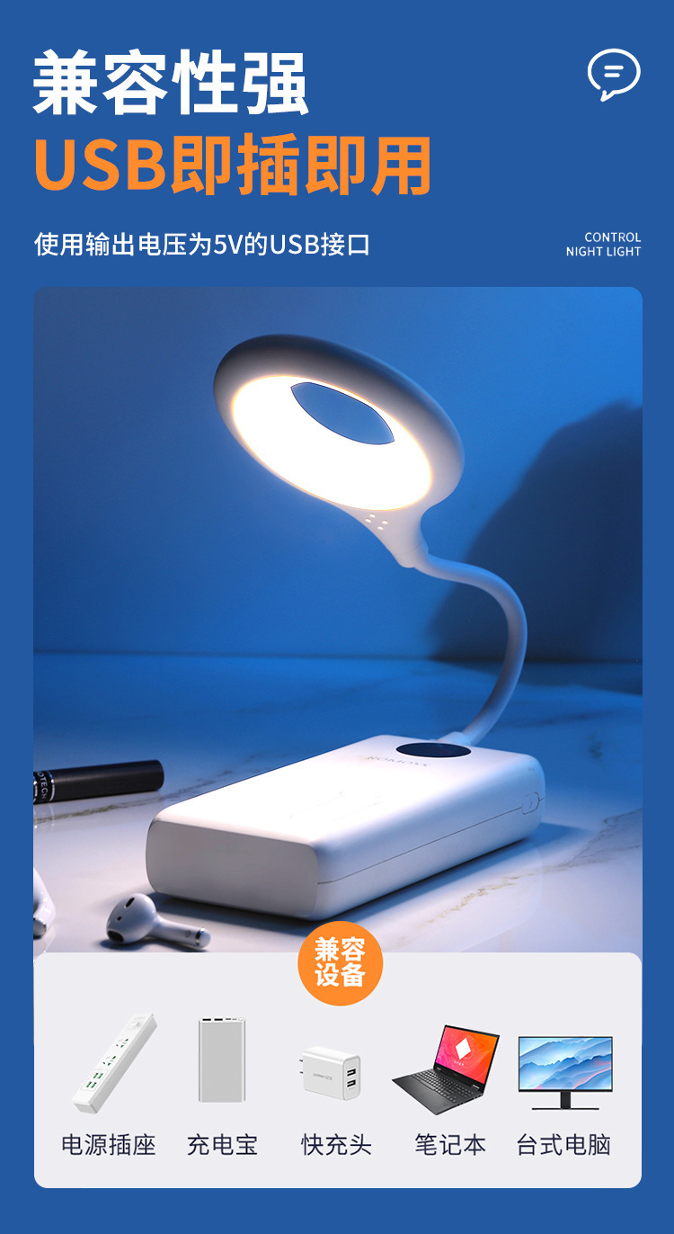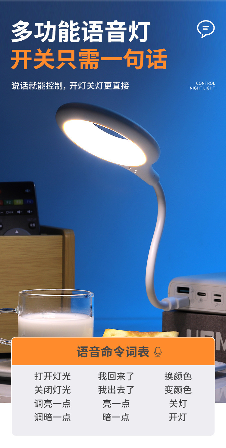 음성 제어 야간 조명 음성 조명 휴대용 기숙사 침대 옆 눈 보호 지능형 음성 야간 조명 미니 램프 없음스토어 가기