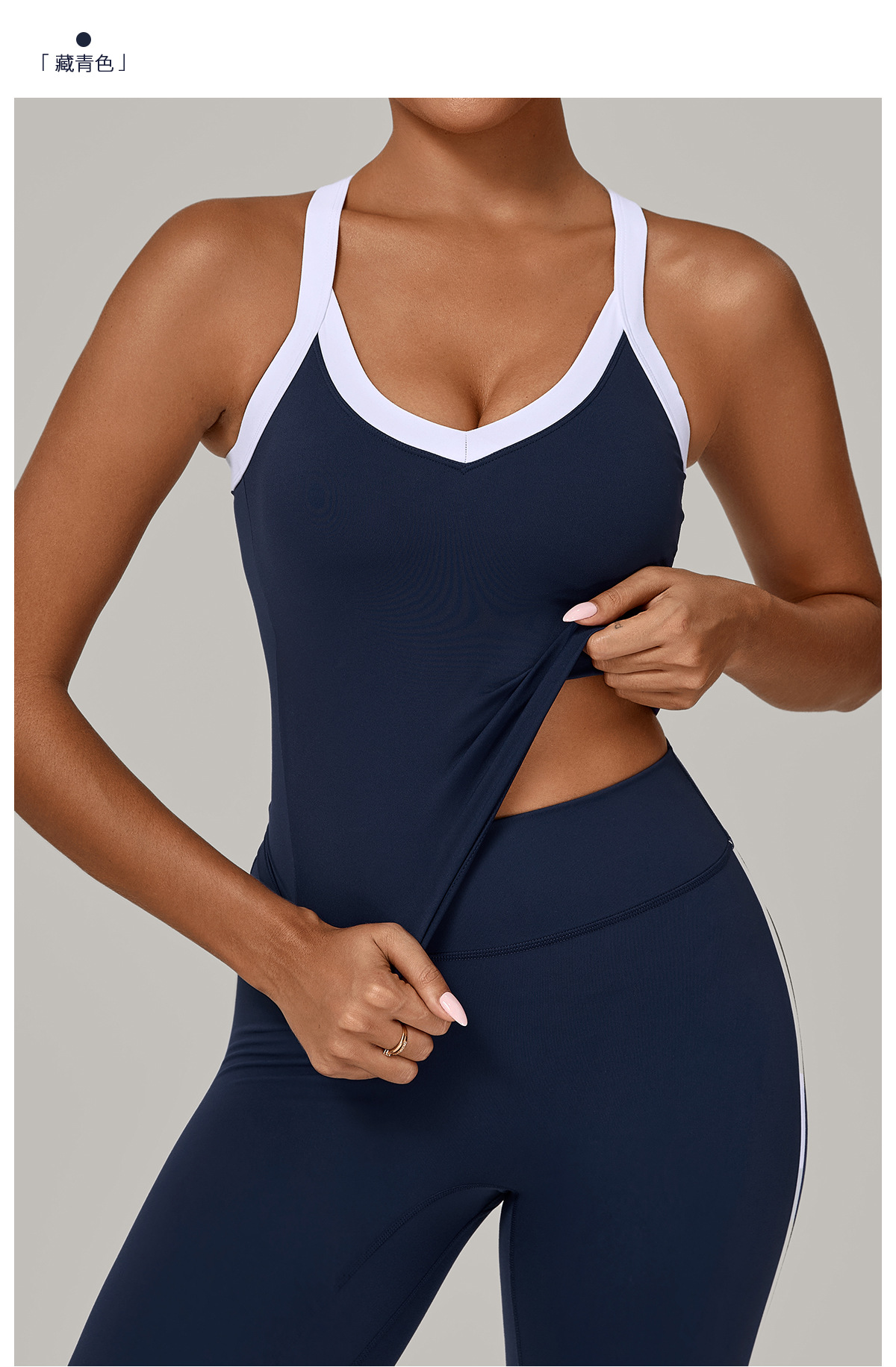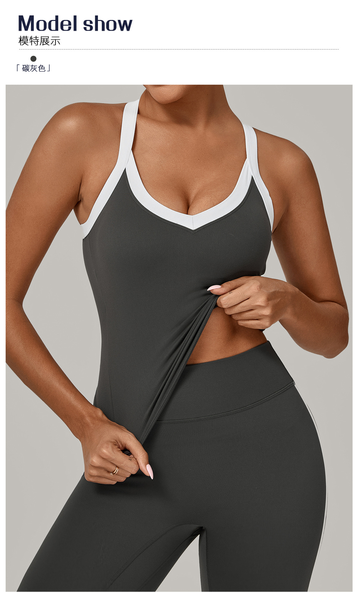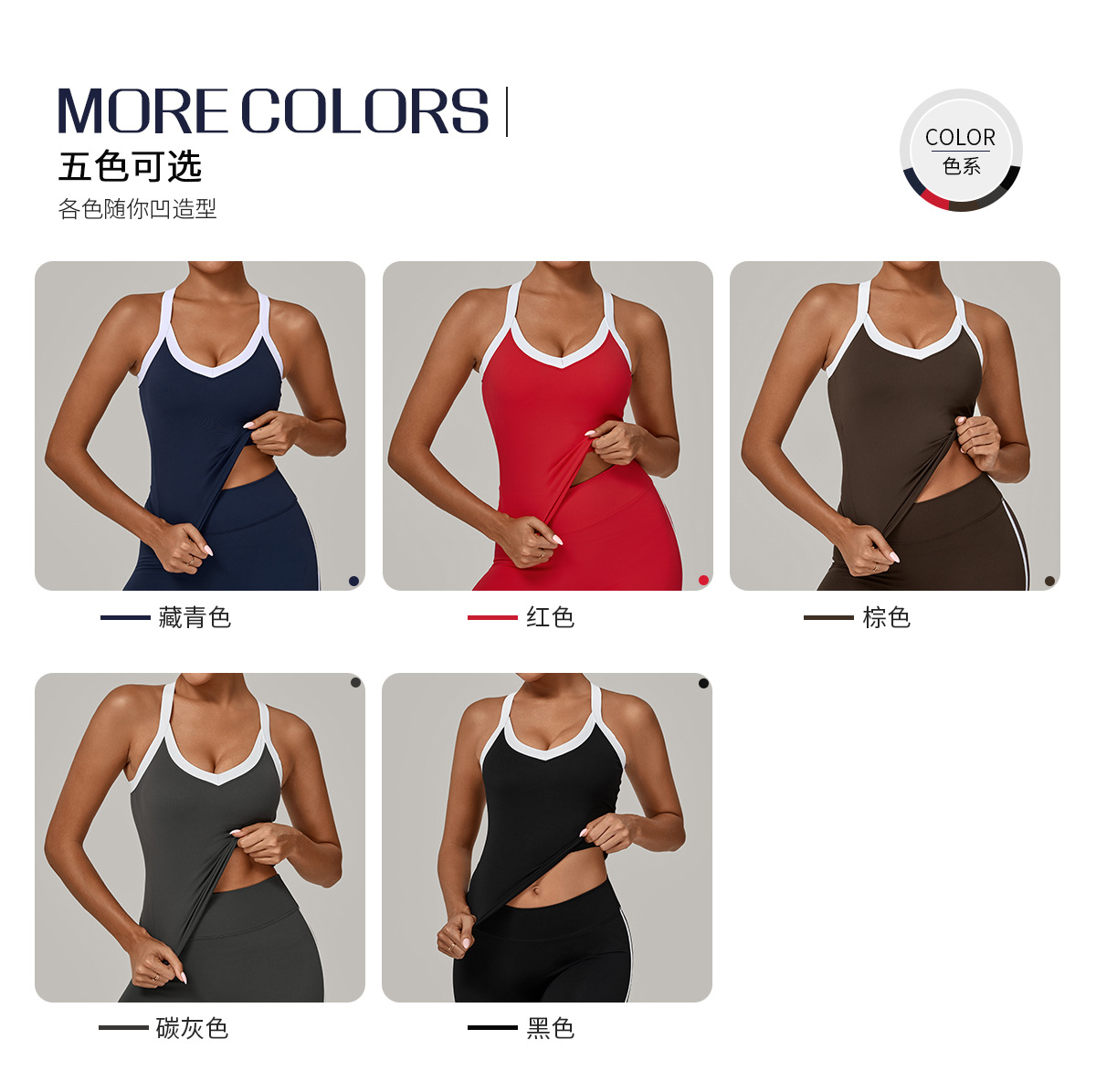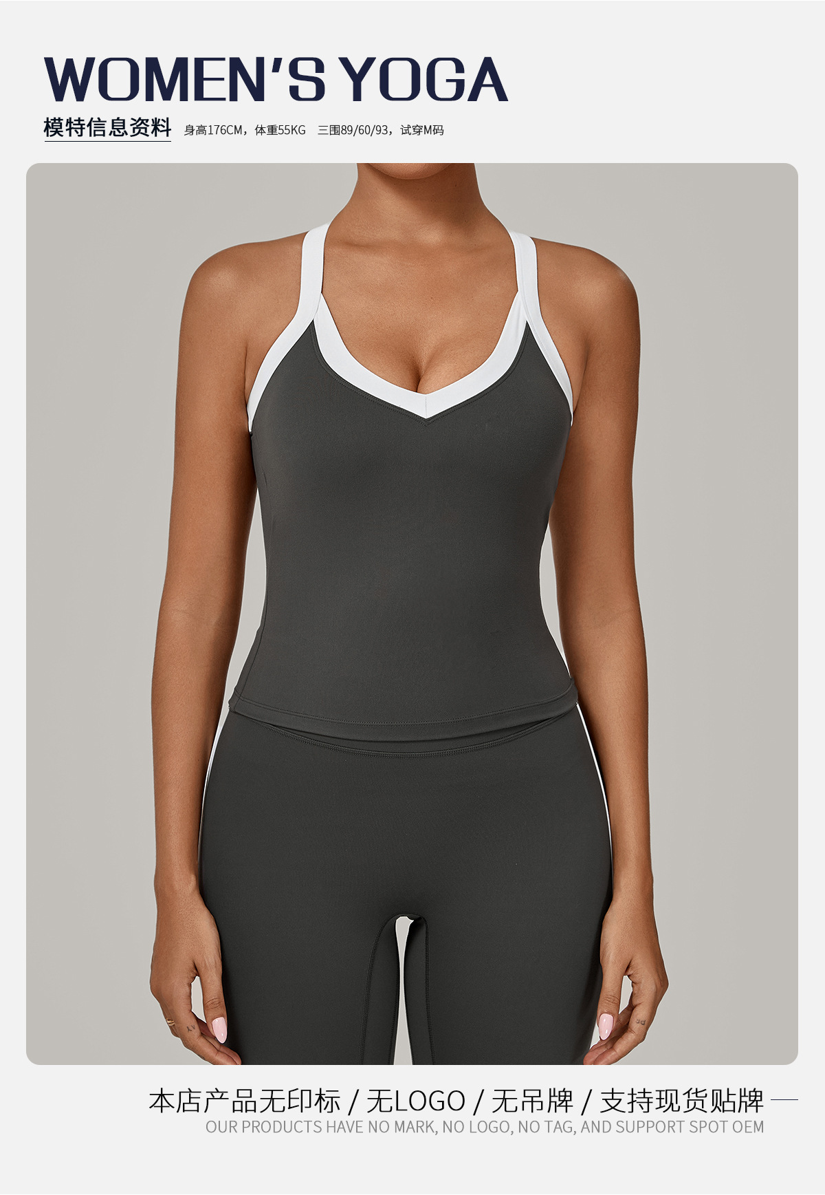 스티치 대비 컬러 카디건 넥 아름다운 백 스포츠 조끼 여성용 타이트한 속건성 러닝 피트니스 탑 요가웨어 3230