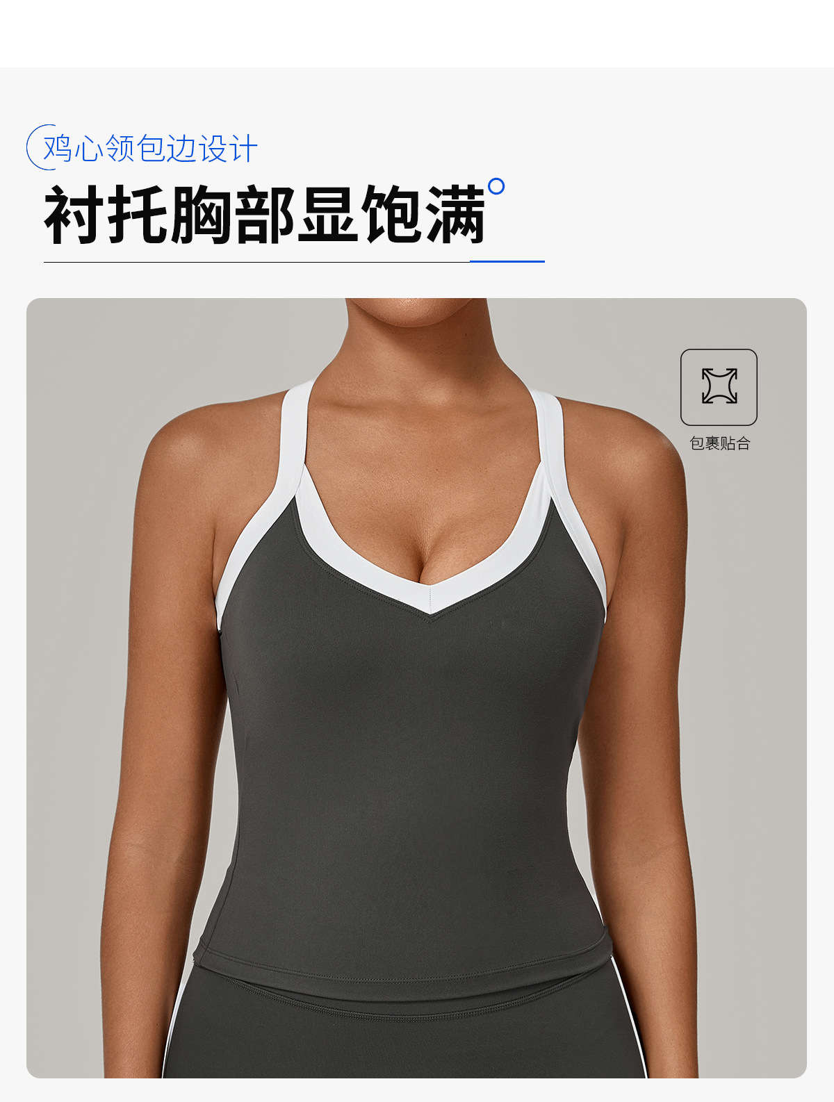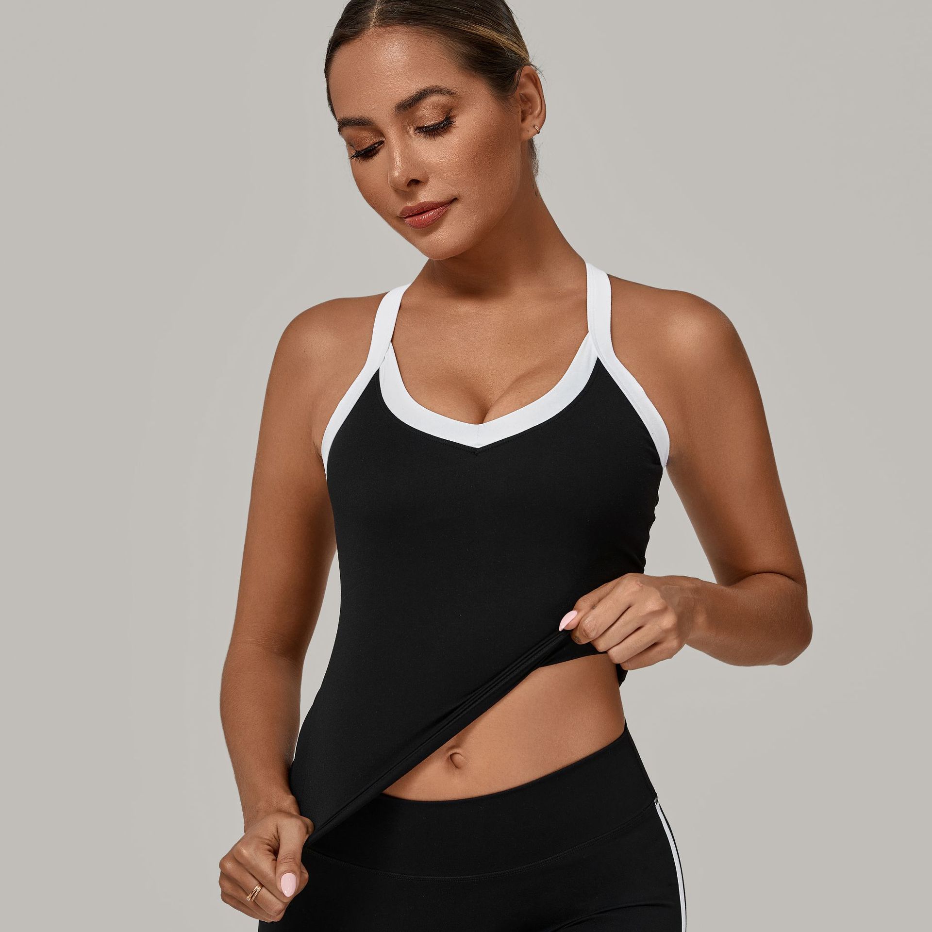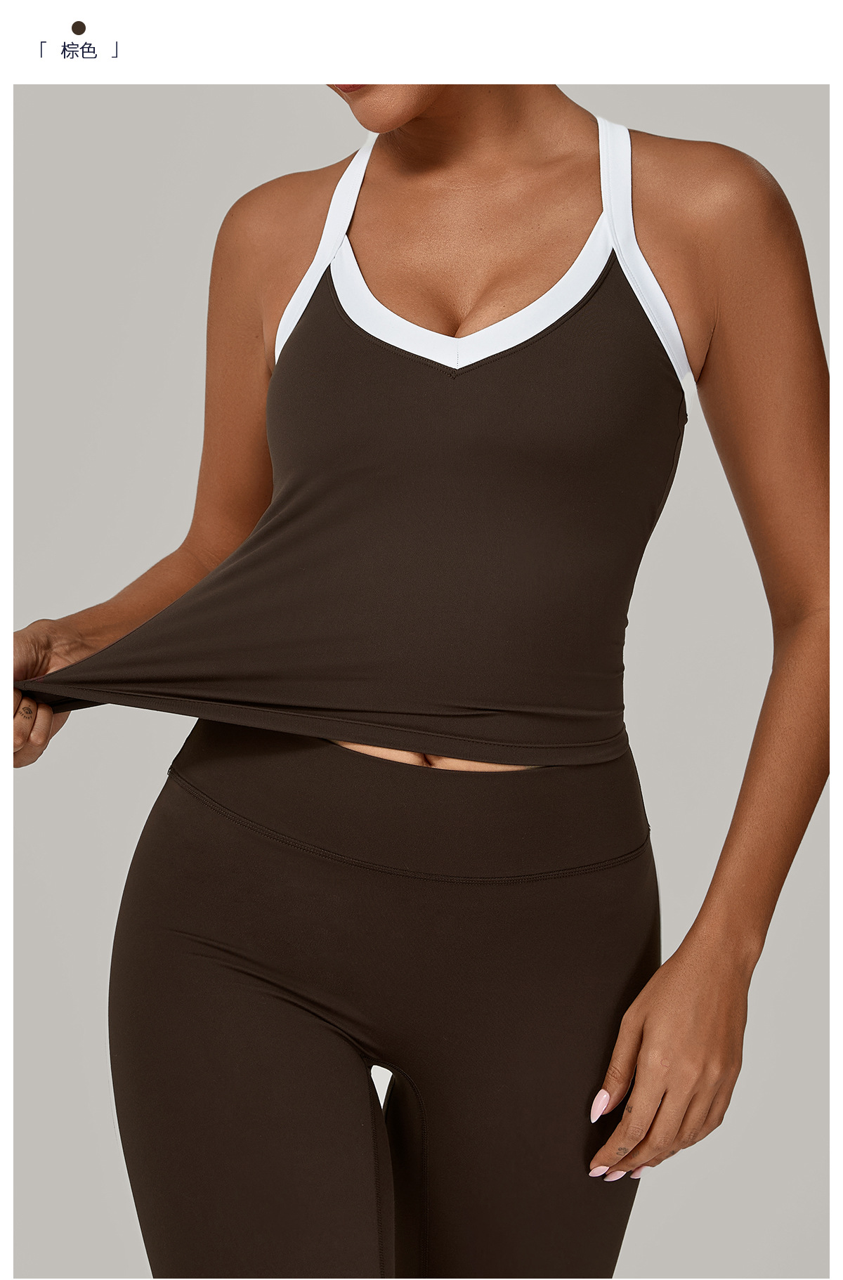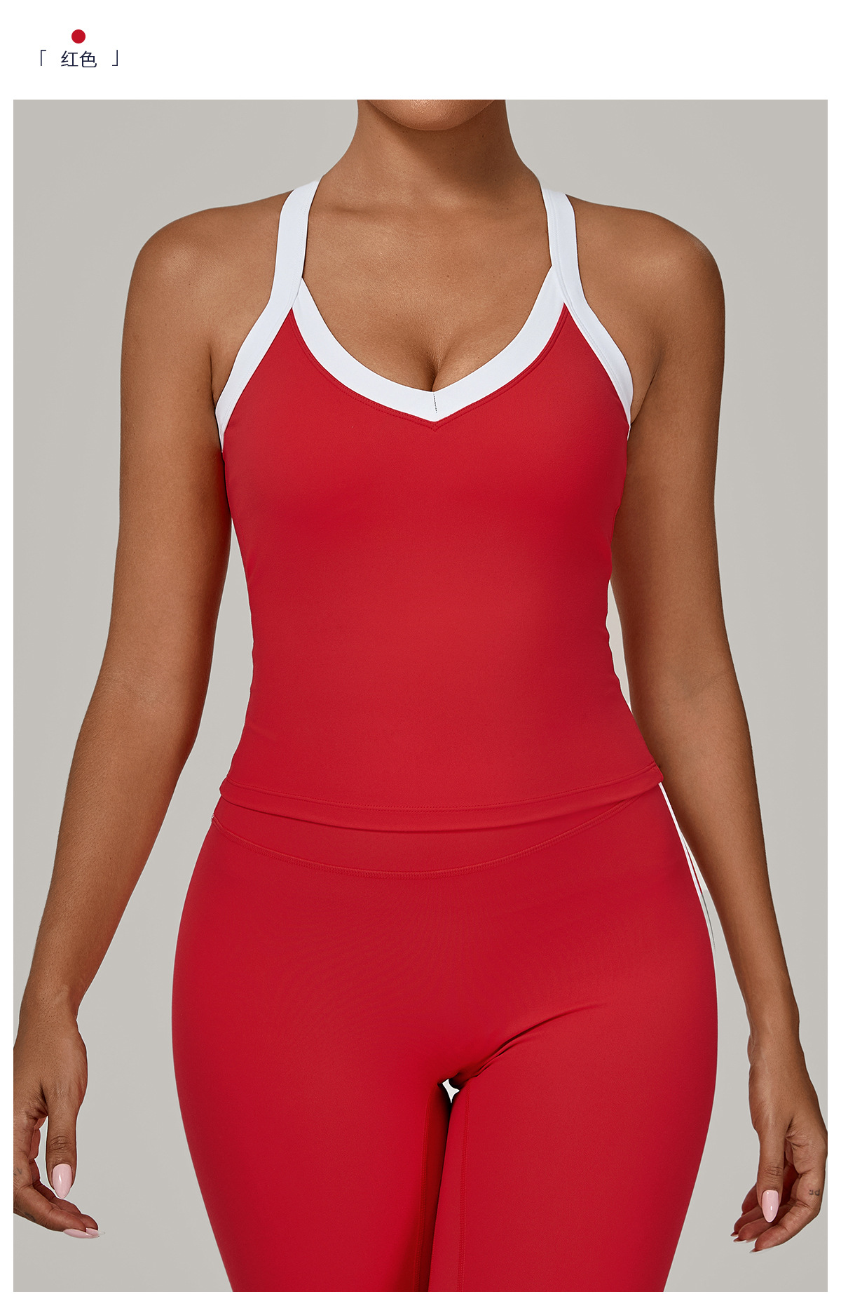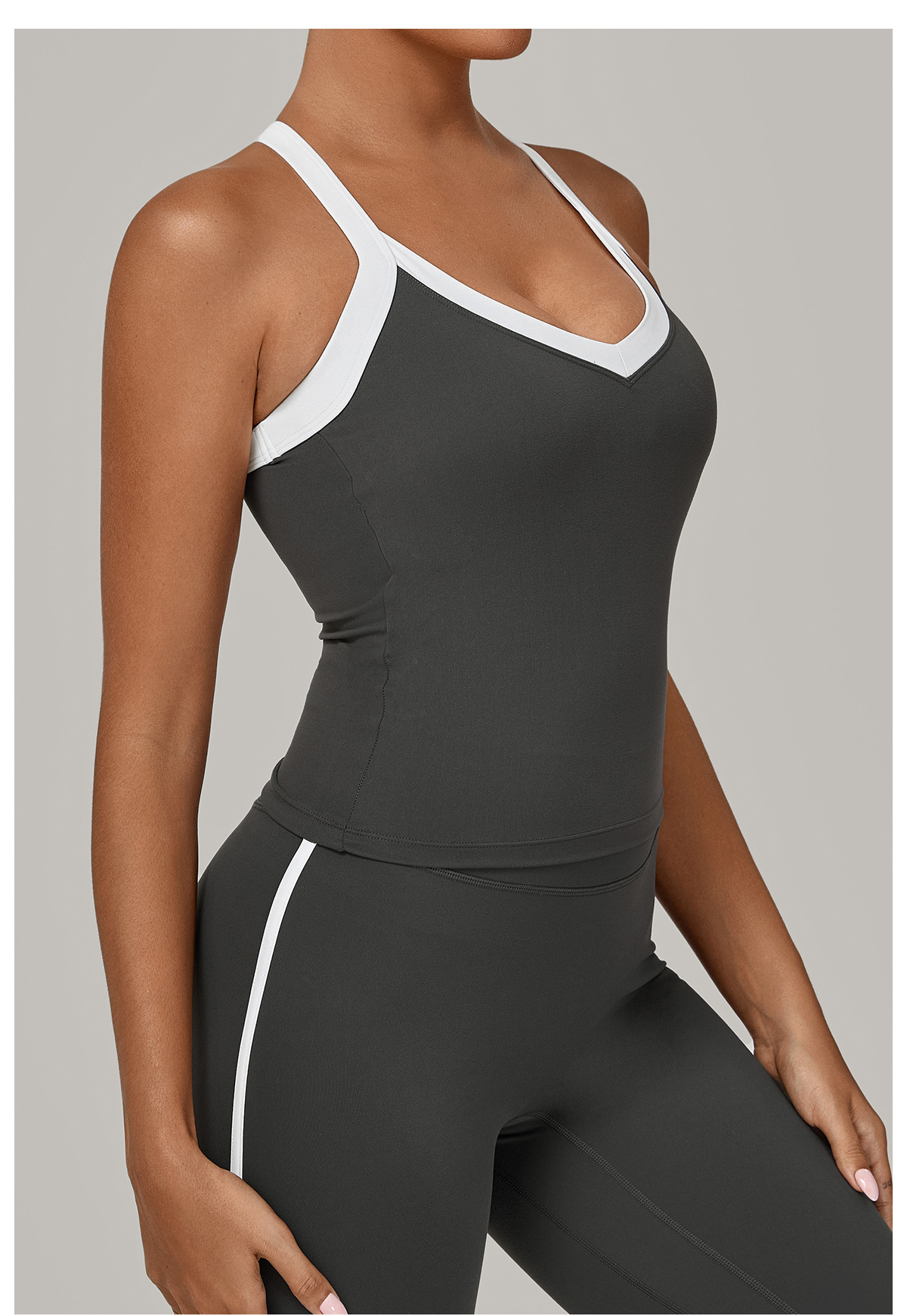 스티치 대비 컬러 카디건 넥 아름다운 백 스포츠 조끼 여성용 타이트한 속건성 러닝 피트니스 탑 요가웨어 3230