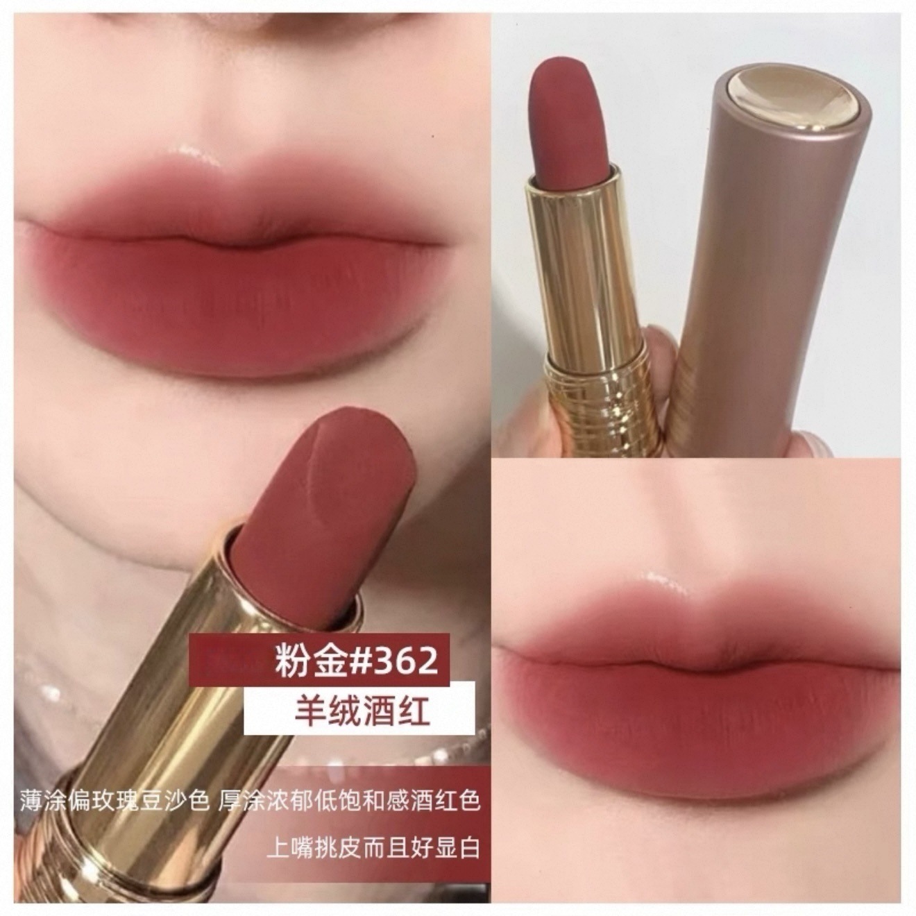 • 핑크 골드 튜브 362 매트 # 캐시미어 버건디