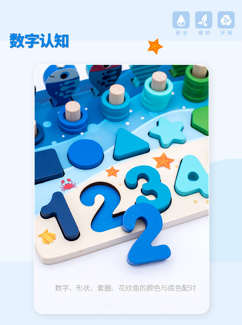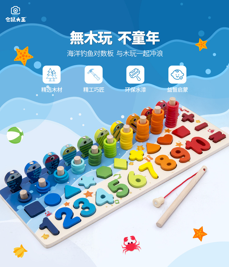 어린이 조기 교육 6-in-one 동물 로그 보드 매칭 퍼즐 연산 모양 숫자 동물 교육 빌딩 블록 퍼즐스토어 가기