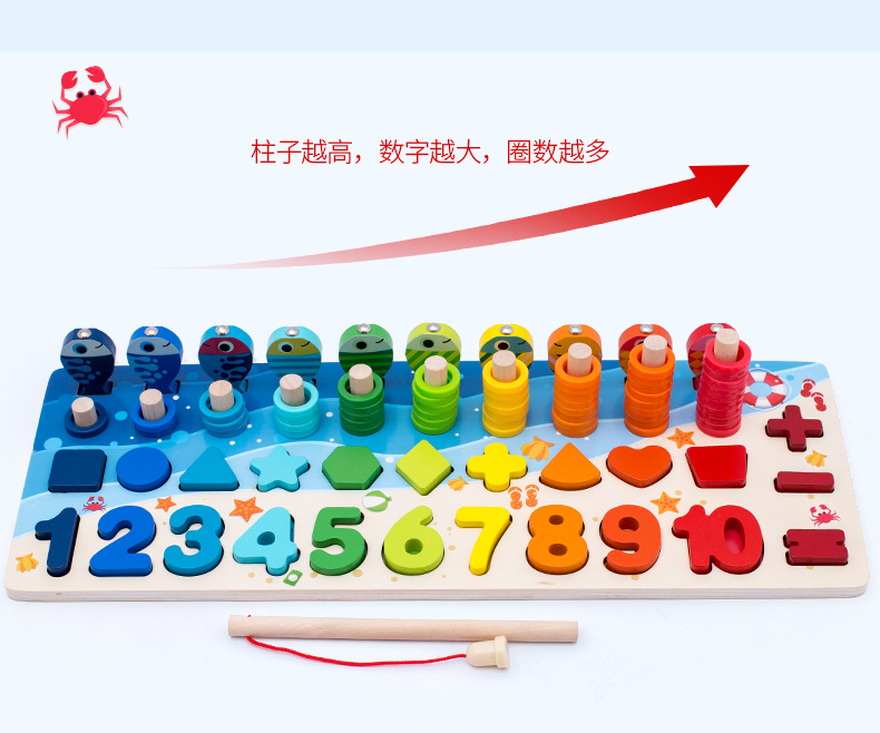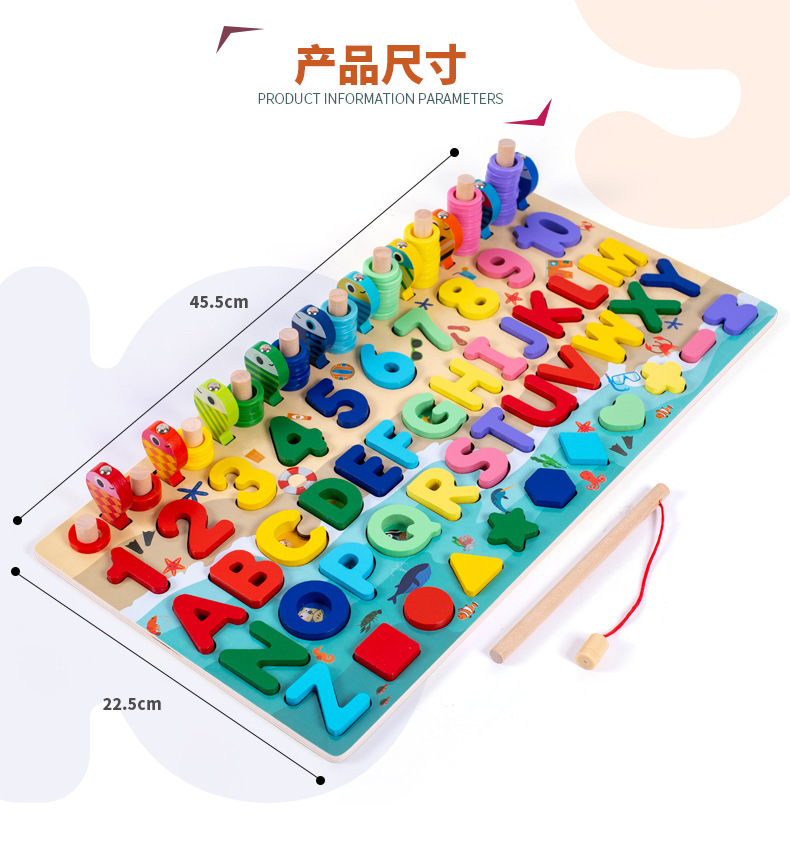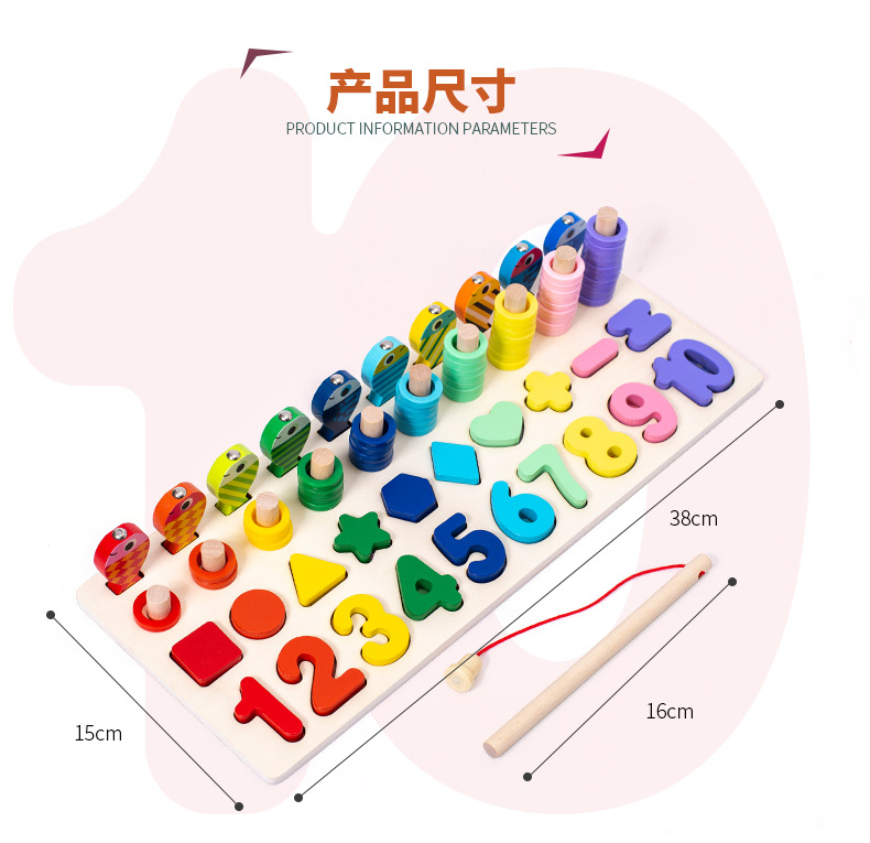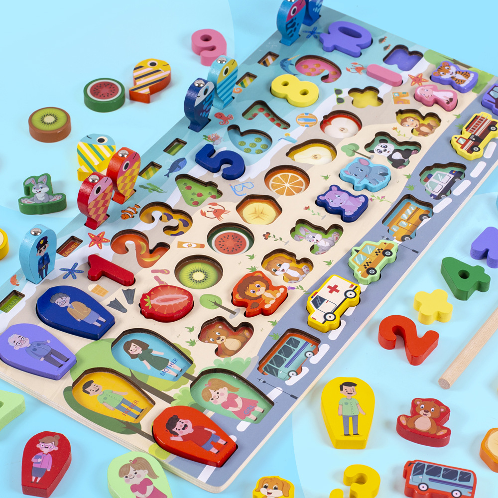 어린이 조기 교육 6-in-one 동물 로그 보드 매칭 퍼즐 연산 모양 숫자 동물 교육 빌딩 블록 퍼즐