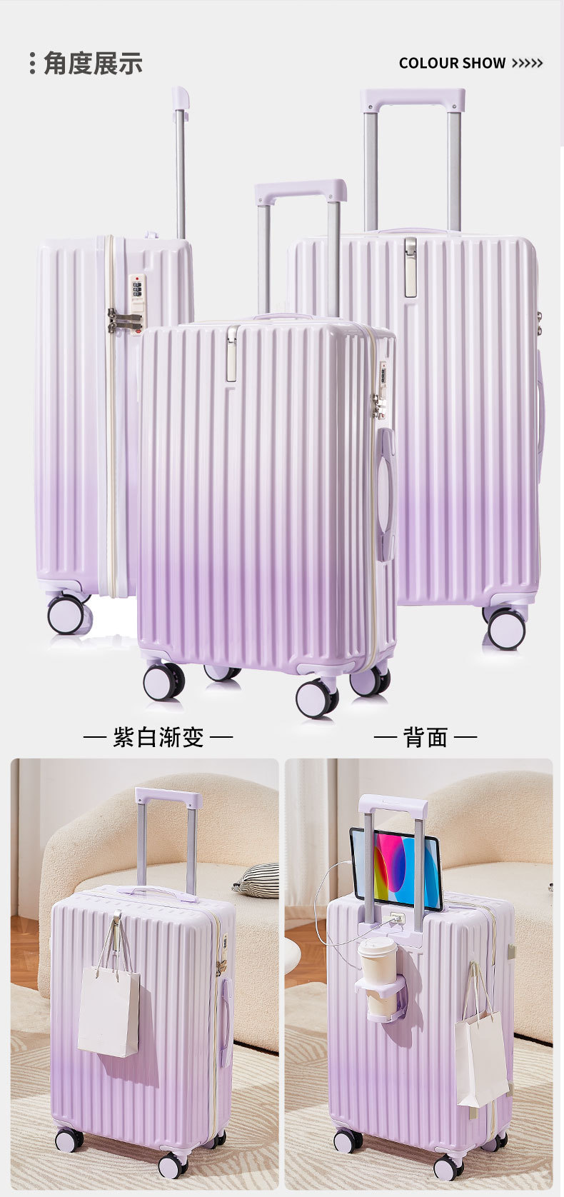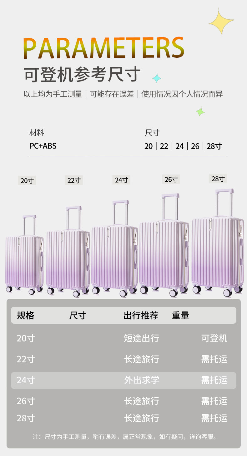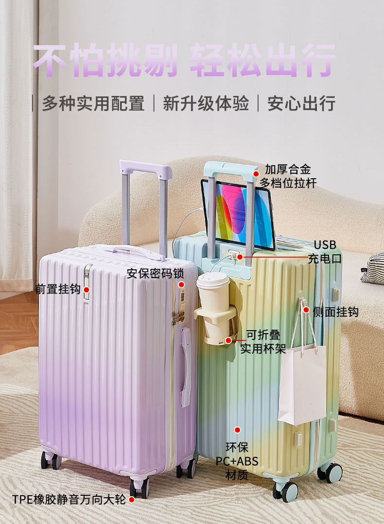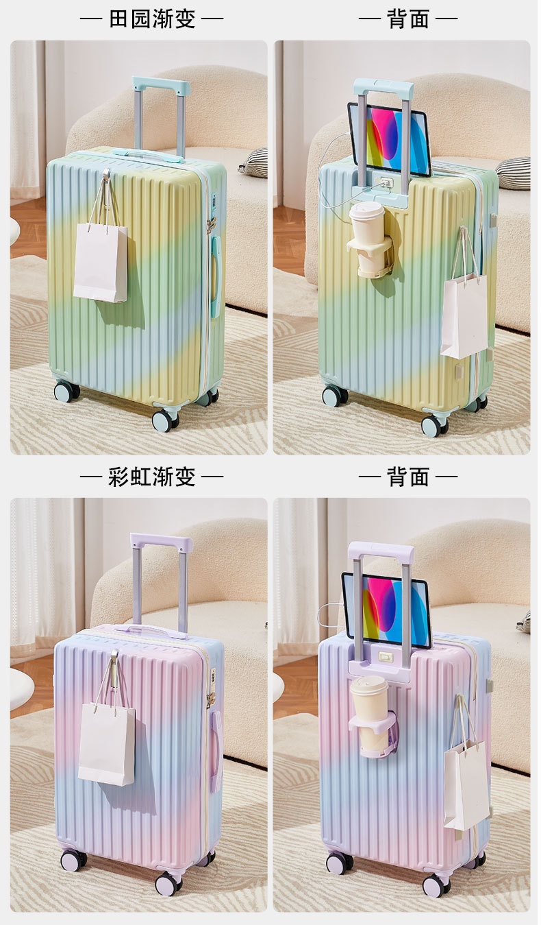 작은 신선한 그라데이션 색상 가방 새로운 스타일 여성 20inch 고가치 트롤리 가방 학생 24 비밀번호 가죽 가방스토어 가기