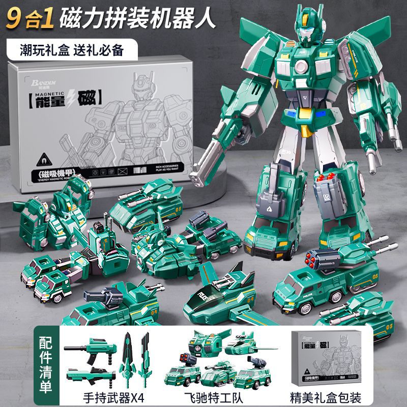 • [메카 그린] 9-in-1 자기 변형 로봇-[고급 선물 상자 + 정교한 선물 가방]