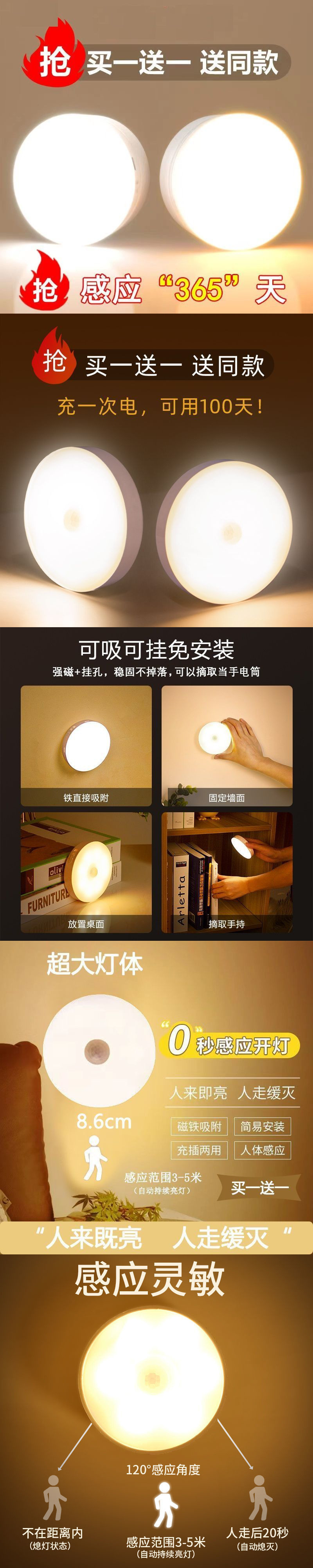 • 충전식 모델 [사람이 오면 불이 켜진다//사람이 가면 불이 꺼진다] 인덕션 따뜻한 빛
