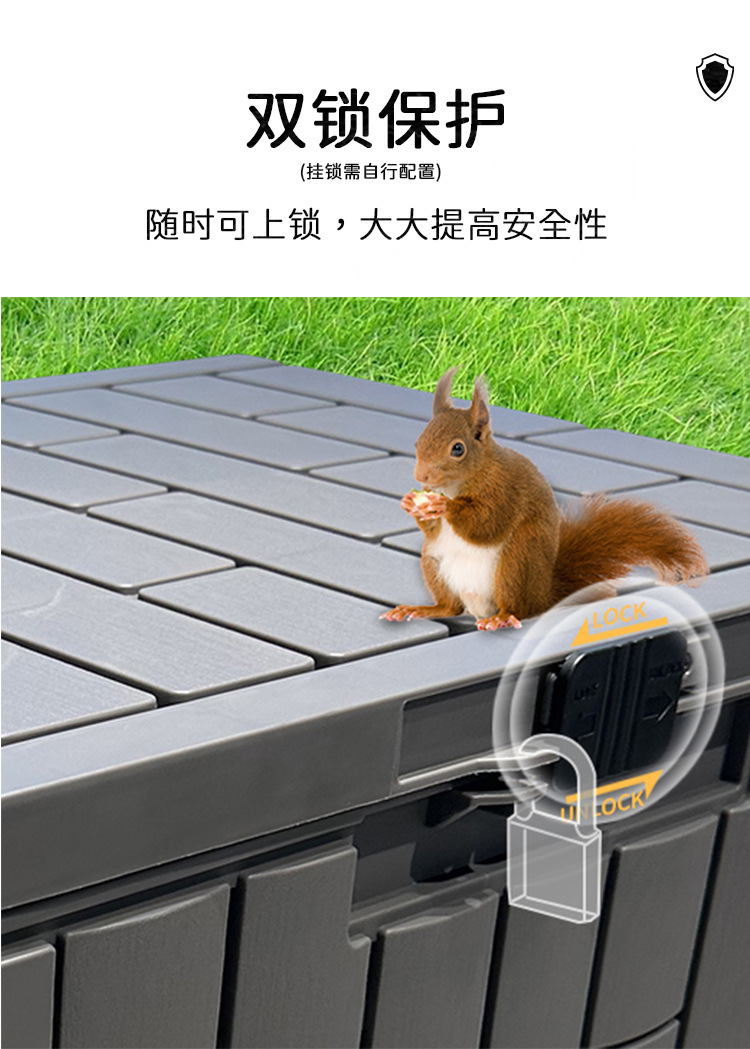 국경 간 야외 방진 보관 상자 수영장 데크 보관 상자 잠금 구멍이있는 안뜰 정원 캠핑 정리