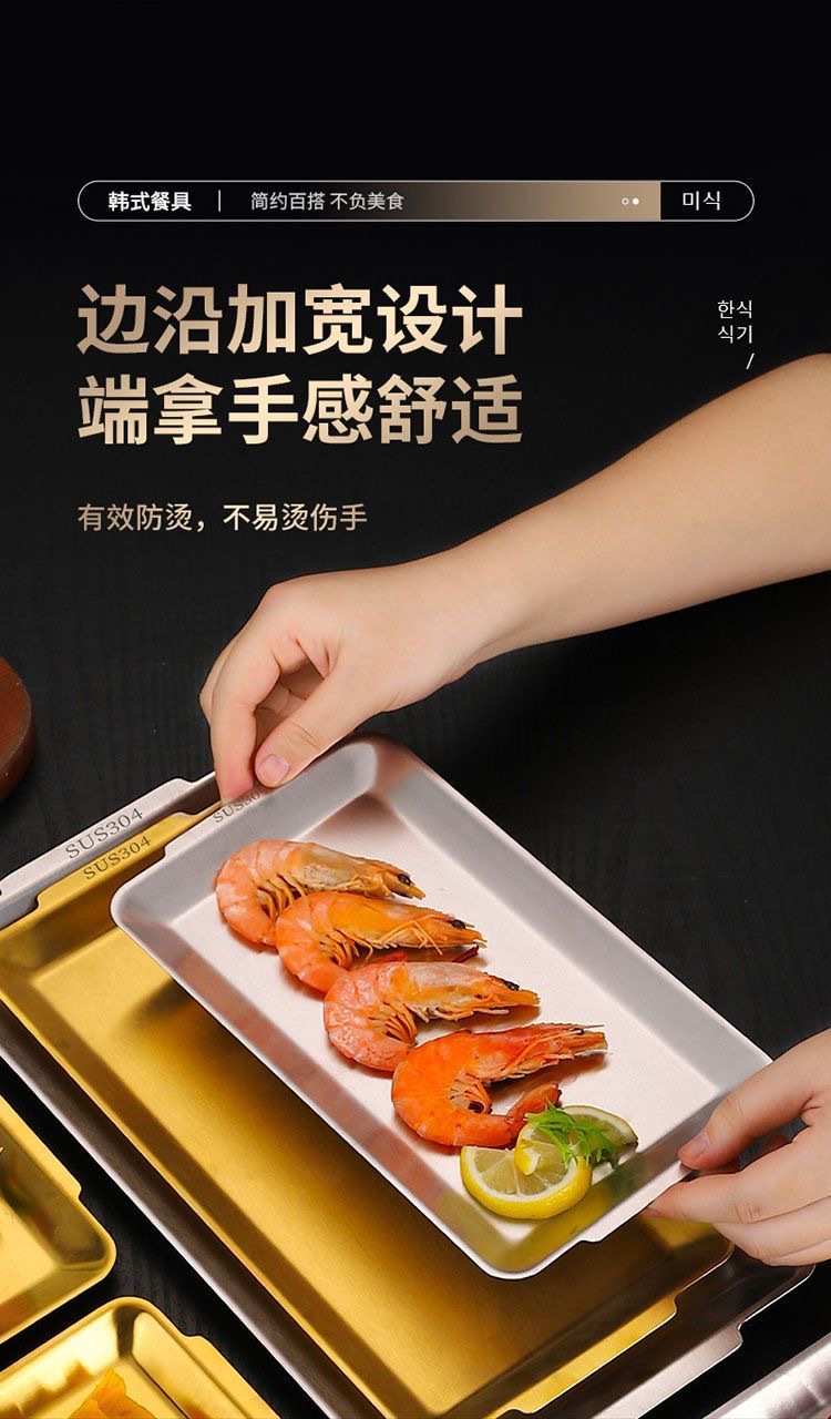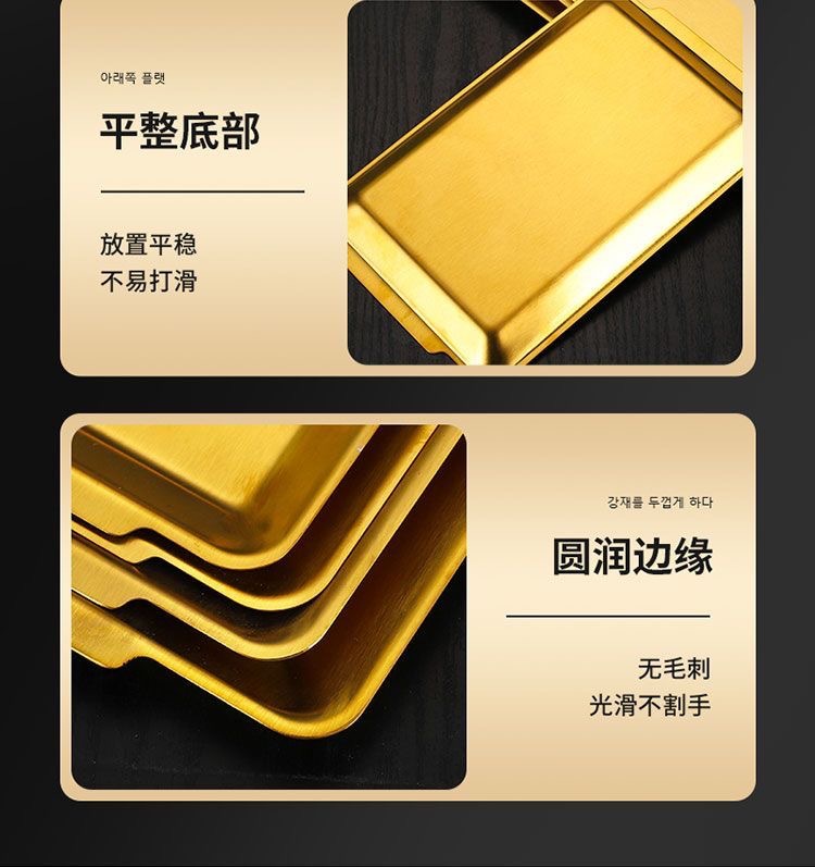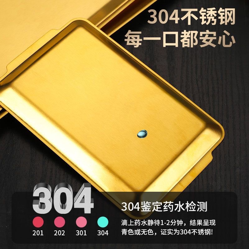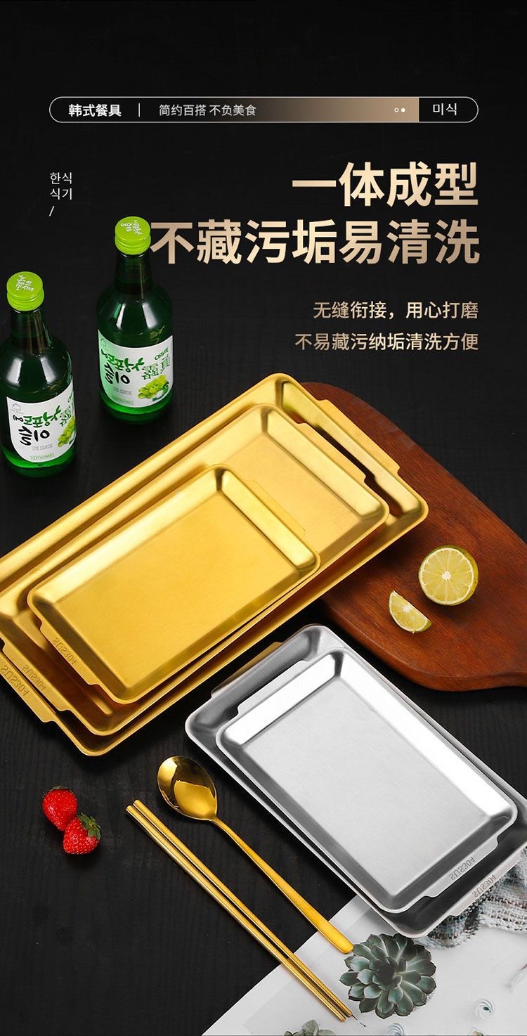 304 스테인레스 스틸 접시 황금 직사각형 접시 두꺼운 트레이 공예 장식품 바베큐 접시 서양 음식 스낵 접시 사각형 접시스토어 가기