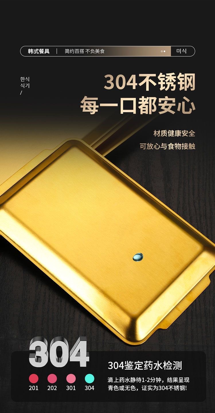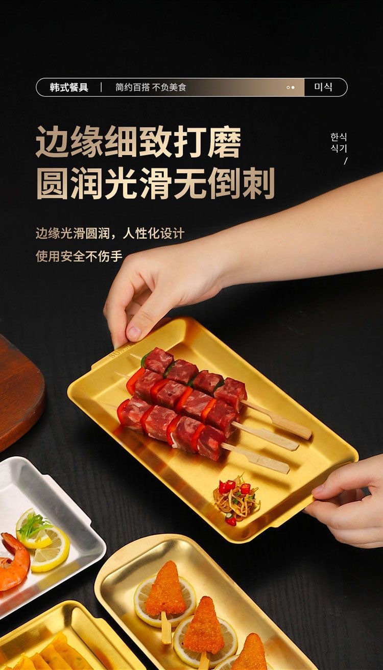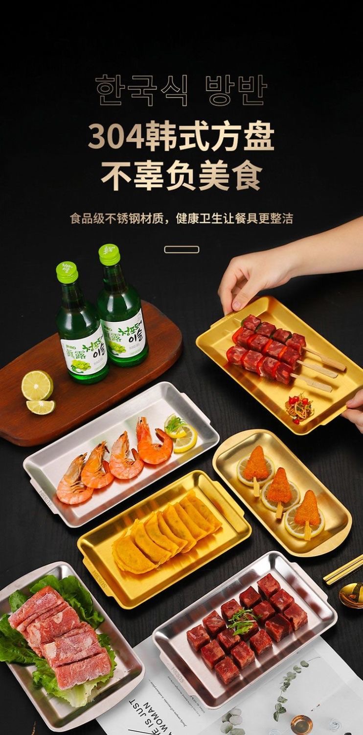 304 스테인레스 스틸 접시 황금 직사각형 접시 두꺼운 트레이 공예 장식품 바베큐 접시 서양 음식 스낵 접시 사각형 접시스토어 가기
